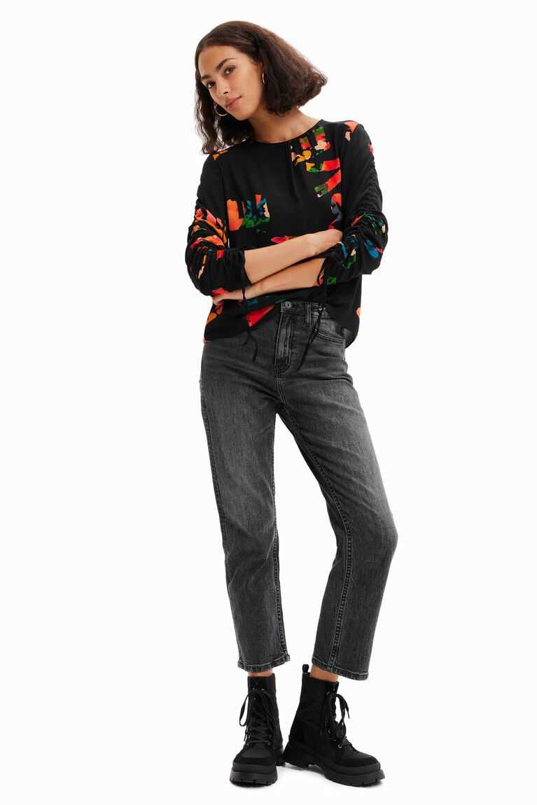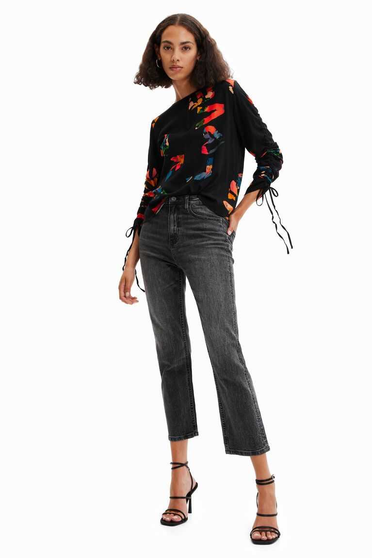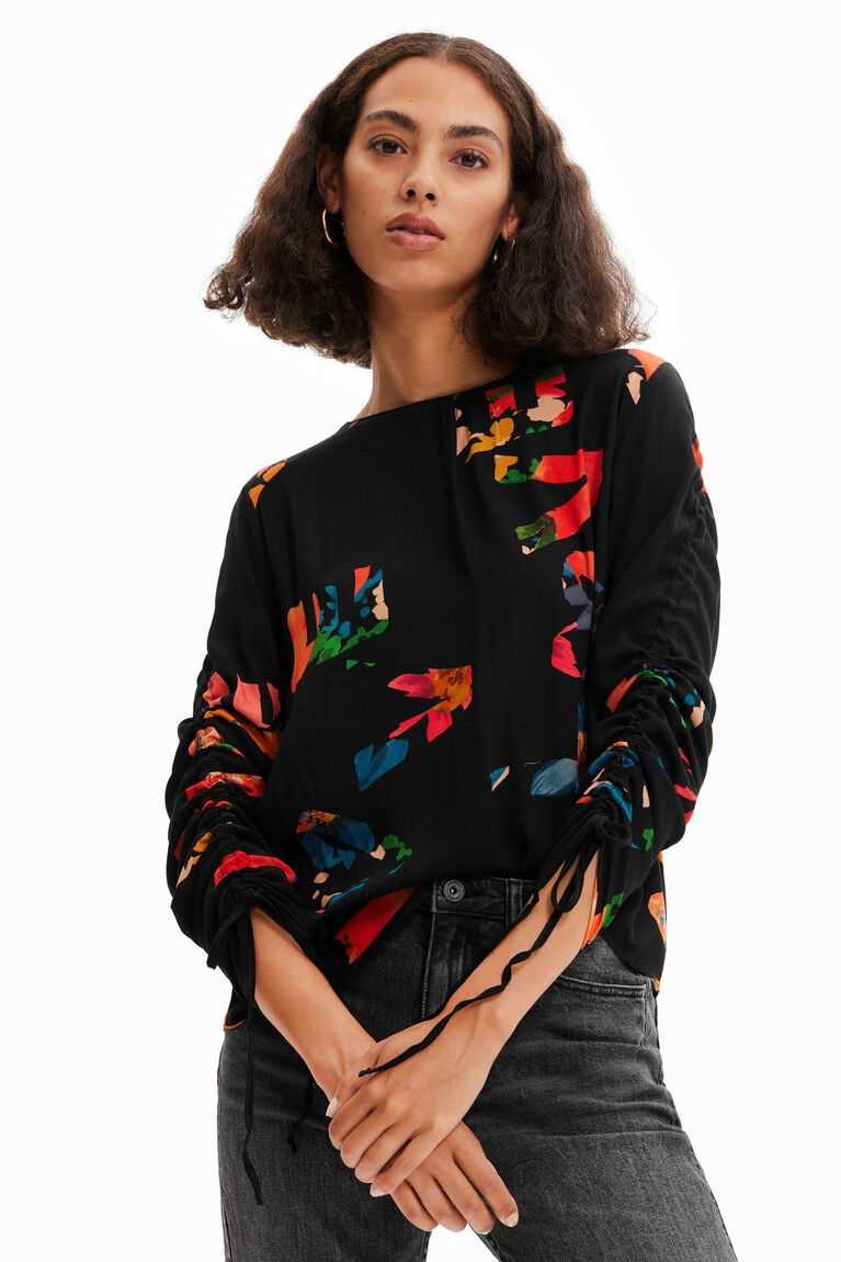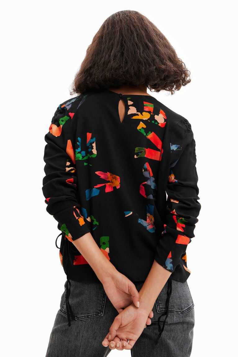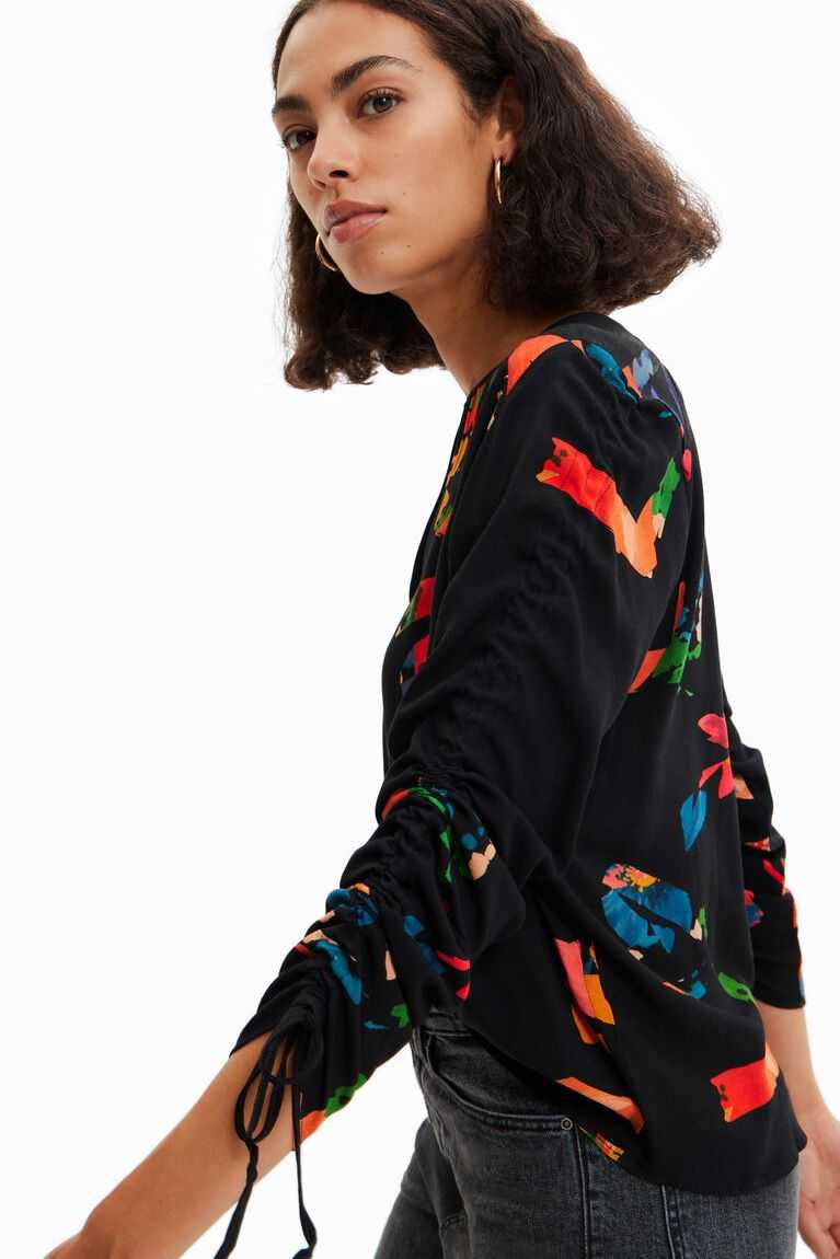 This "LOVE" print blouse is very versatile and the sleeve length can be adjusted with ties.