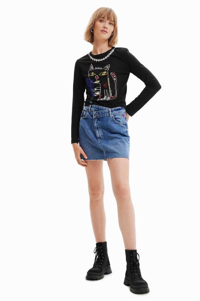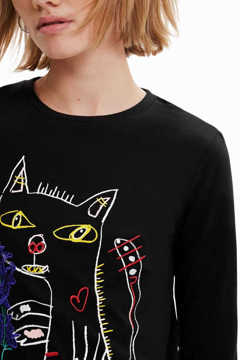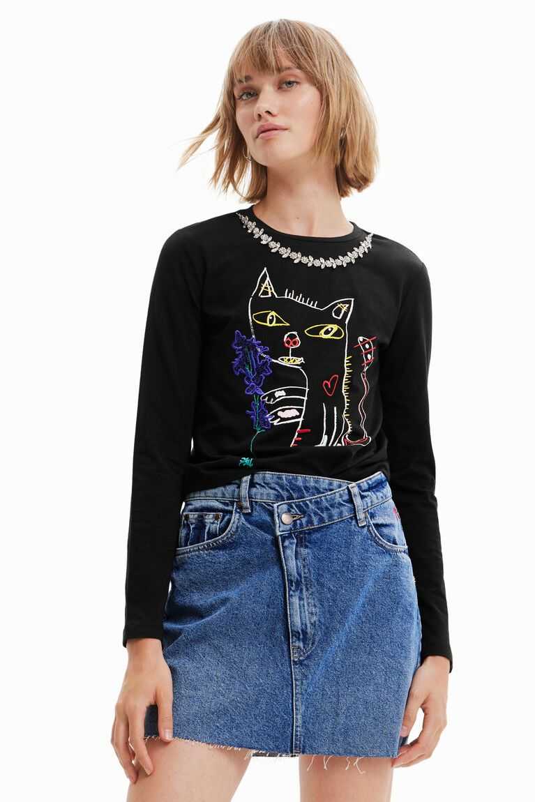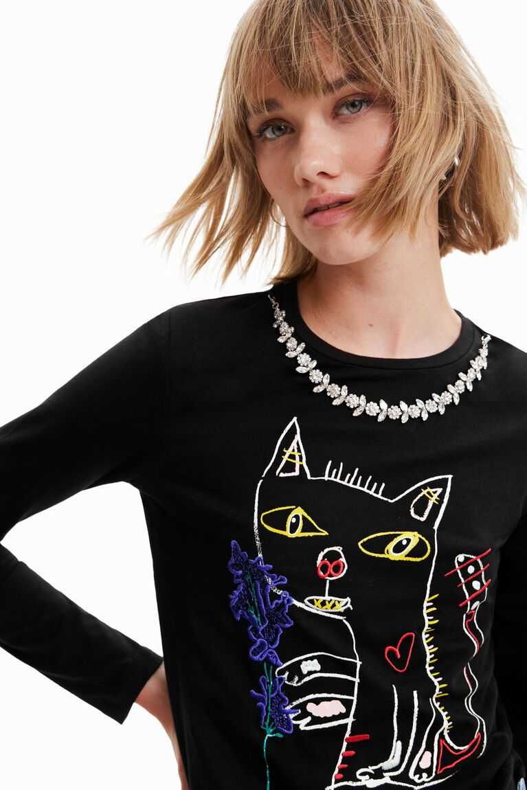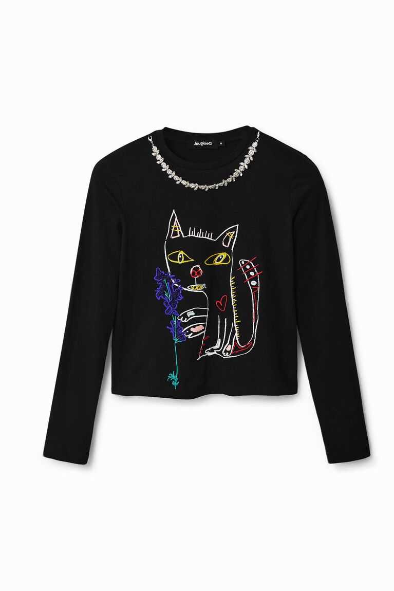 An arty kitten illustration decorates this T-shirt with incorporated sparkling collar. Comfortable and soft thanks to its cotton fabric.