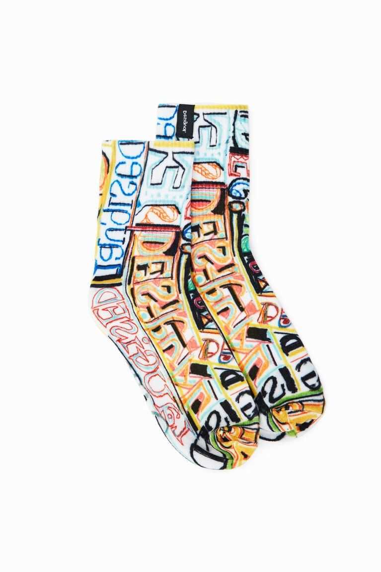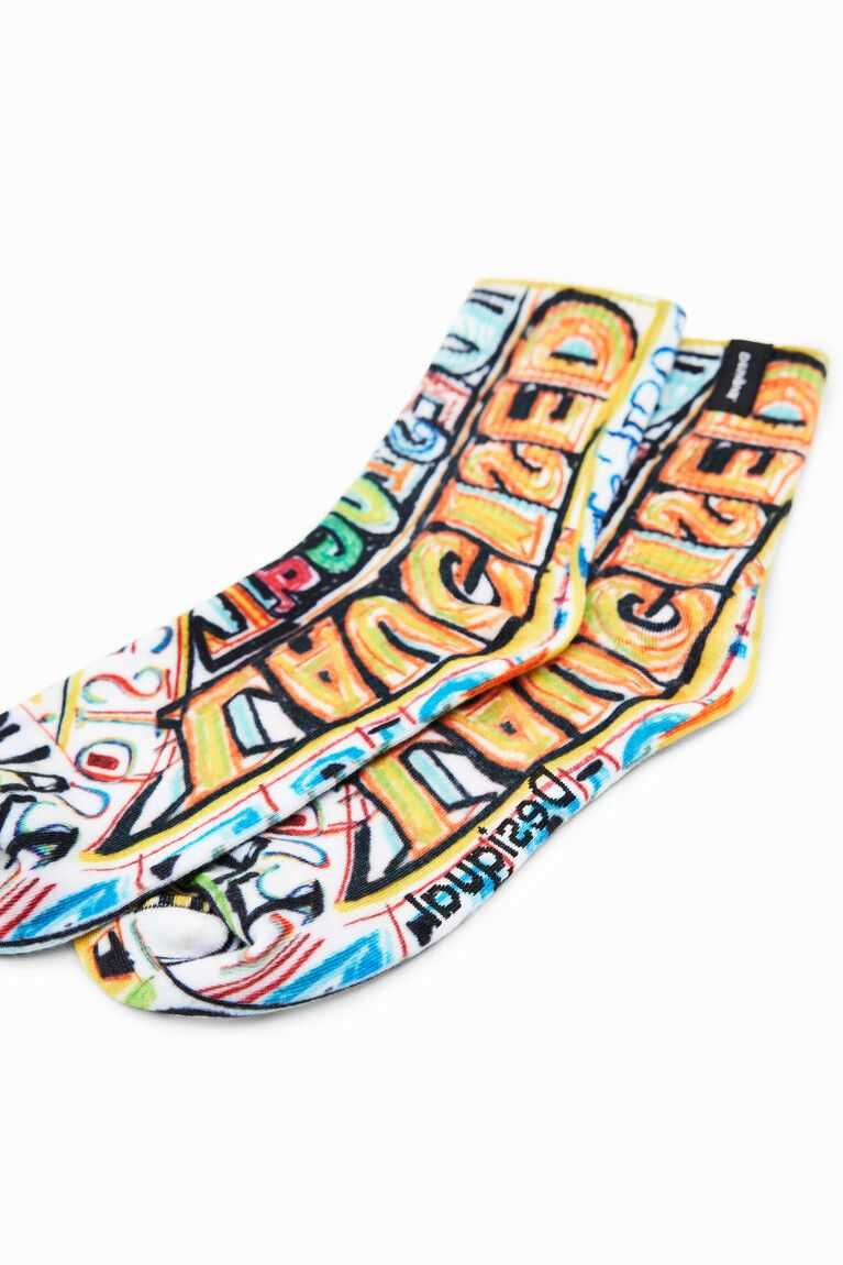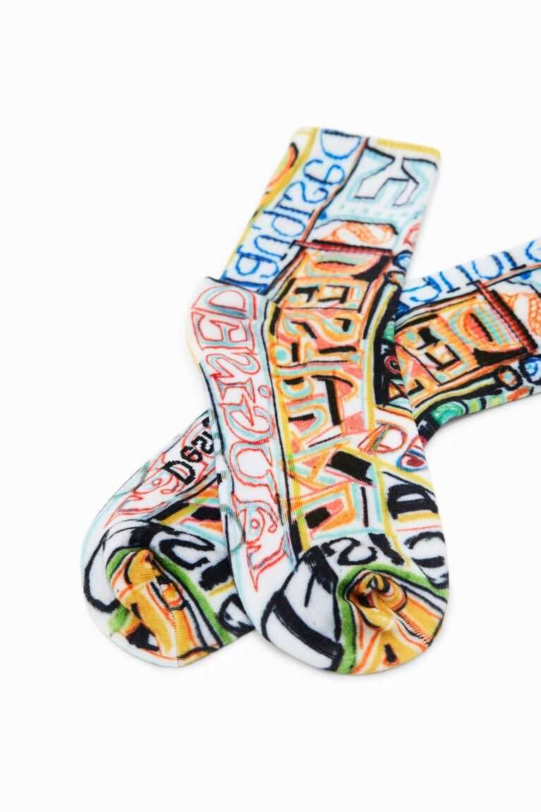 Socks with a very soft feel, featuring a ribbed upper part and a print by designer Javier Mariscal.