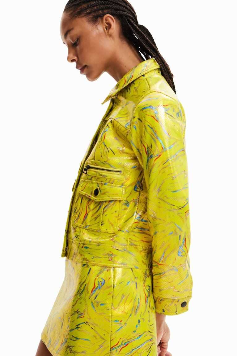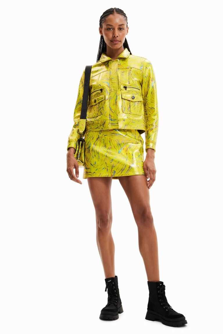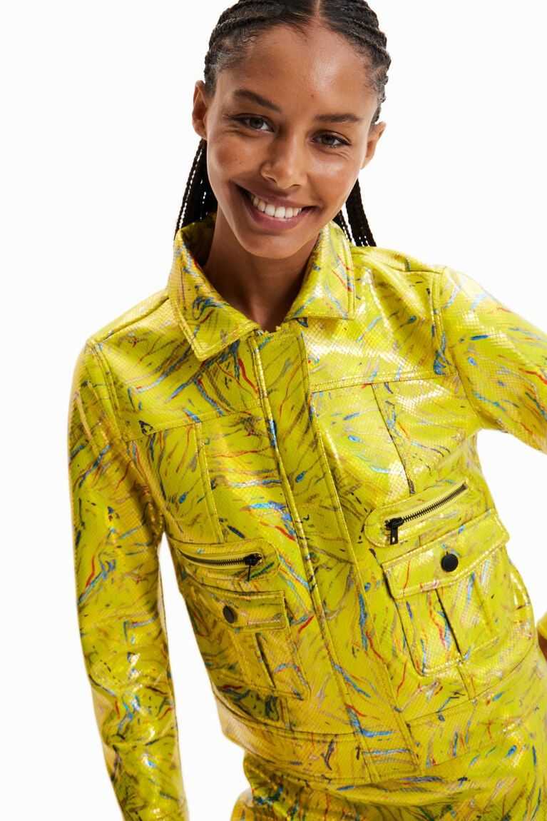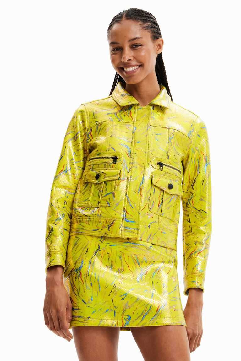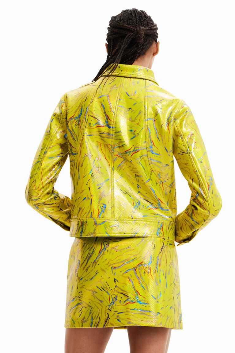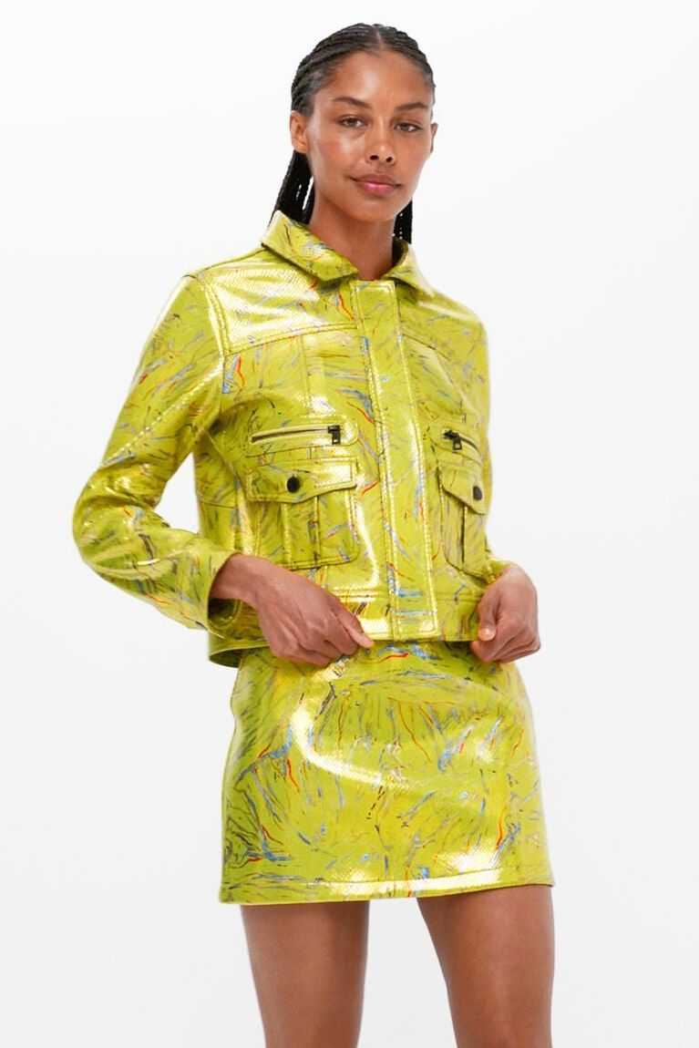 This straight-cut jacket is a very special garment that's sure to grab attention thanks to its iridescent scale-effect fabric with arty touches. Pair it with the matching skirt for a total look.
