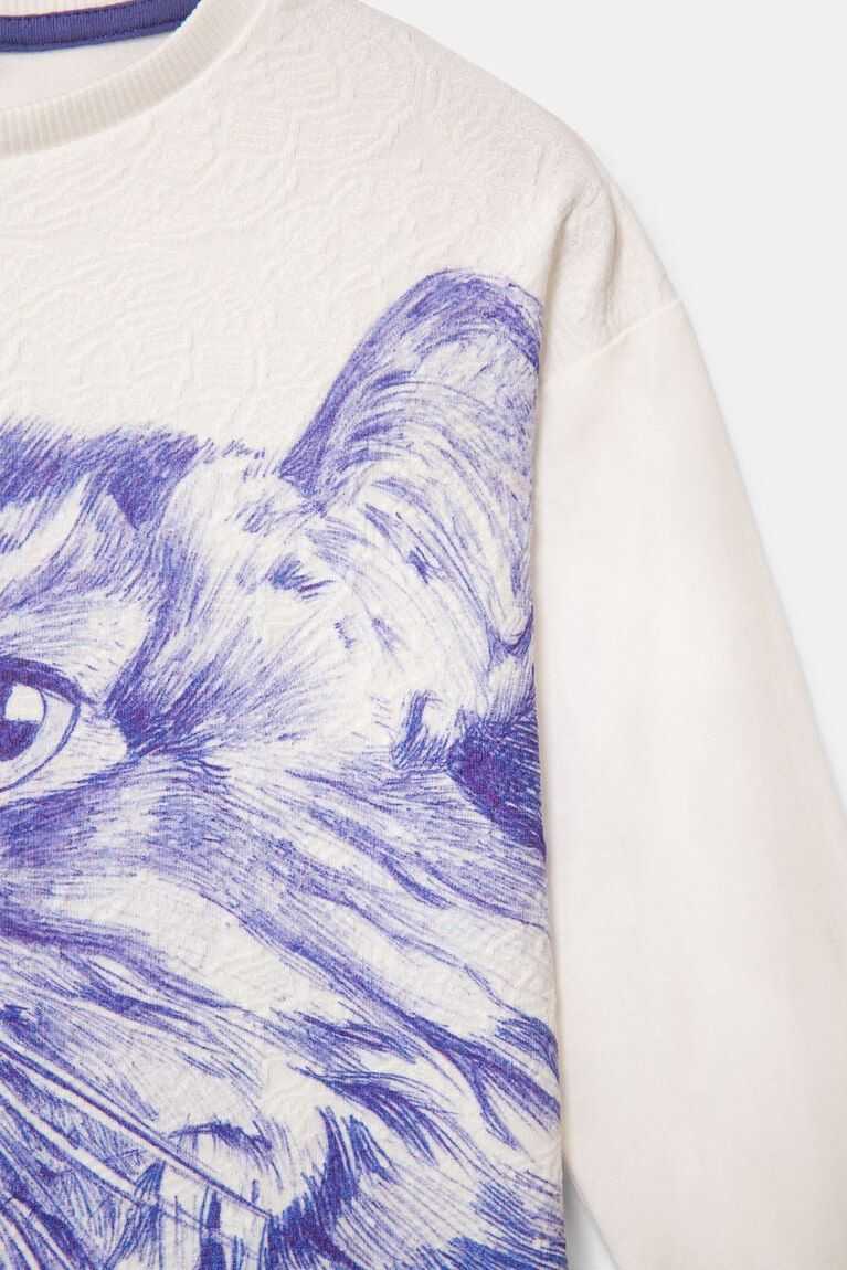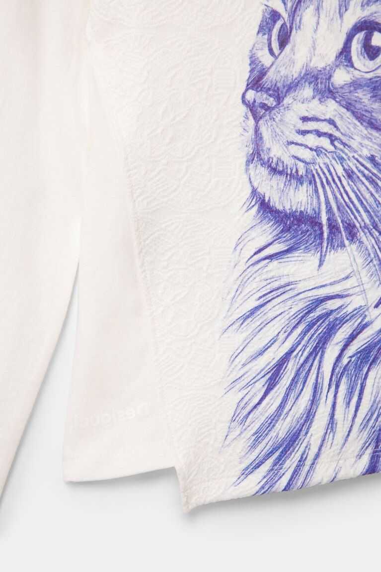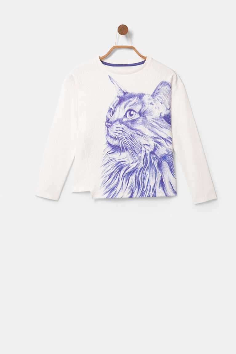 Want to take the Bolimania trend a step further? On this long-sleeved T-shirt, the pen has been used for much more than doodling, it's given shape to a lovely cat printed on a self-colour jacquard fabric with a double front layer that drapes asymmetrically over the waist.