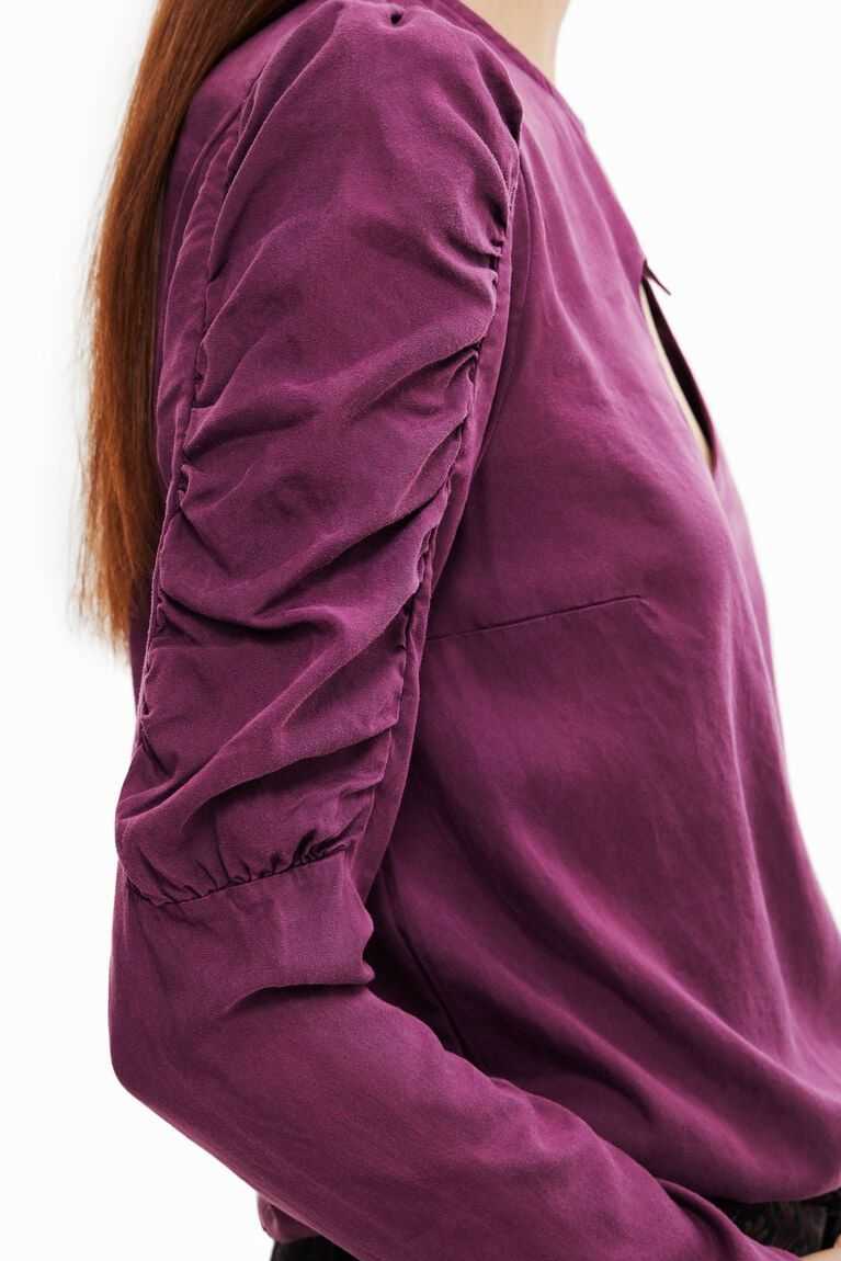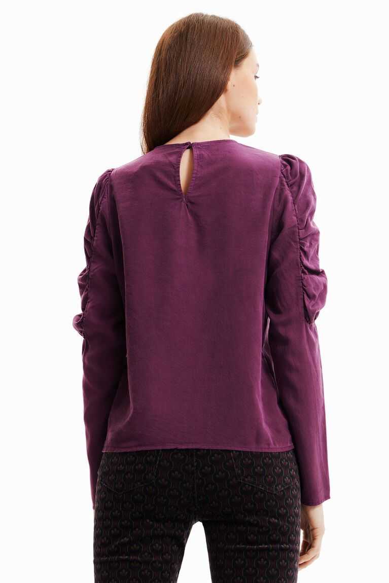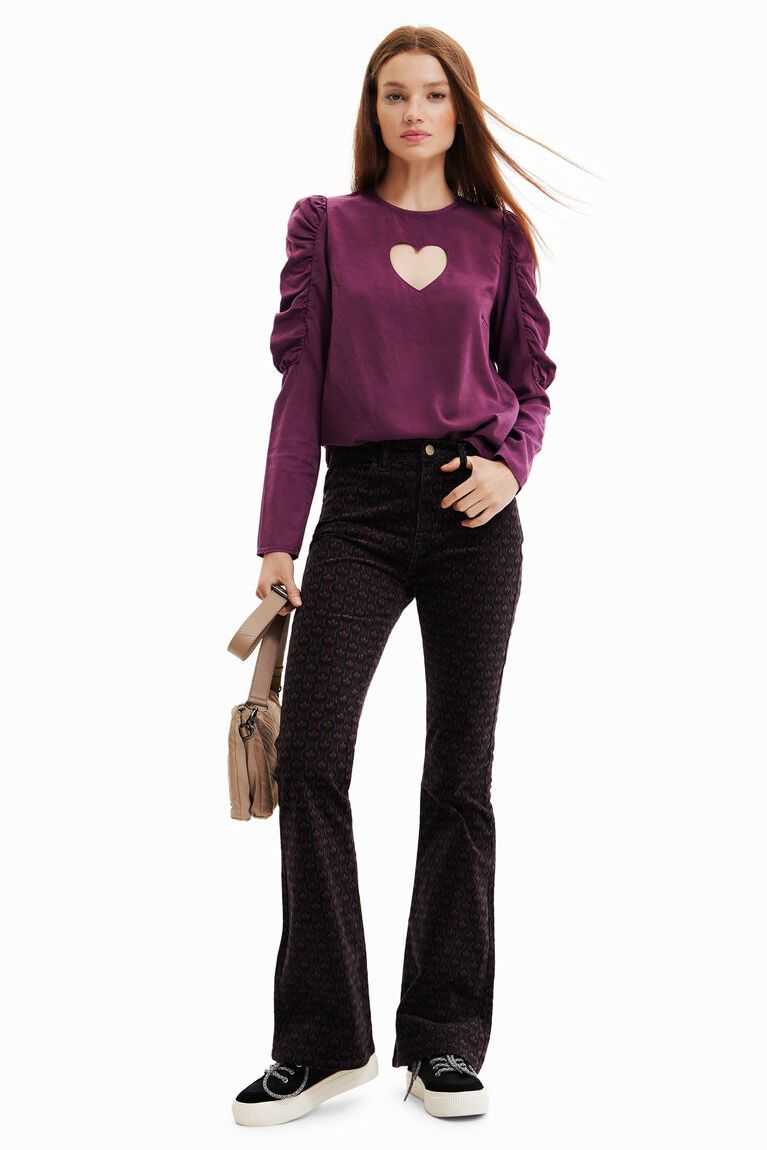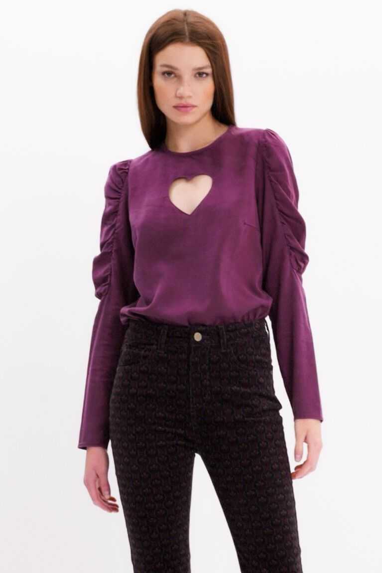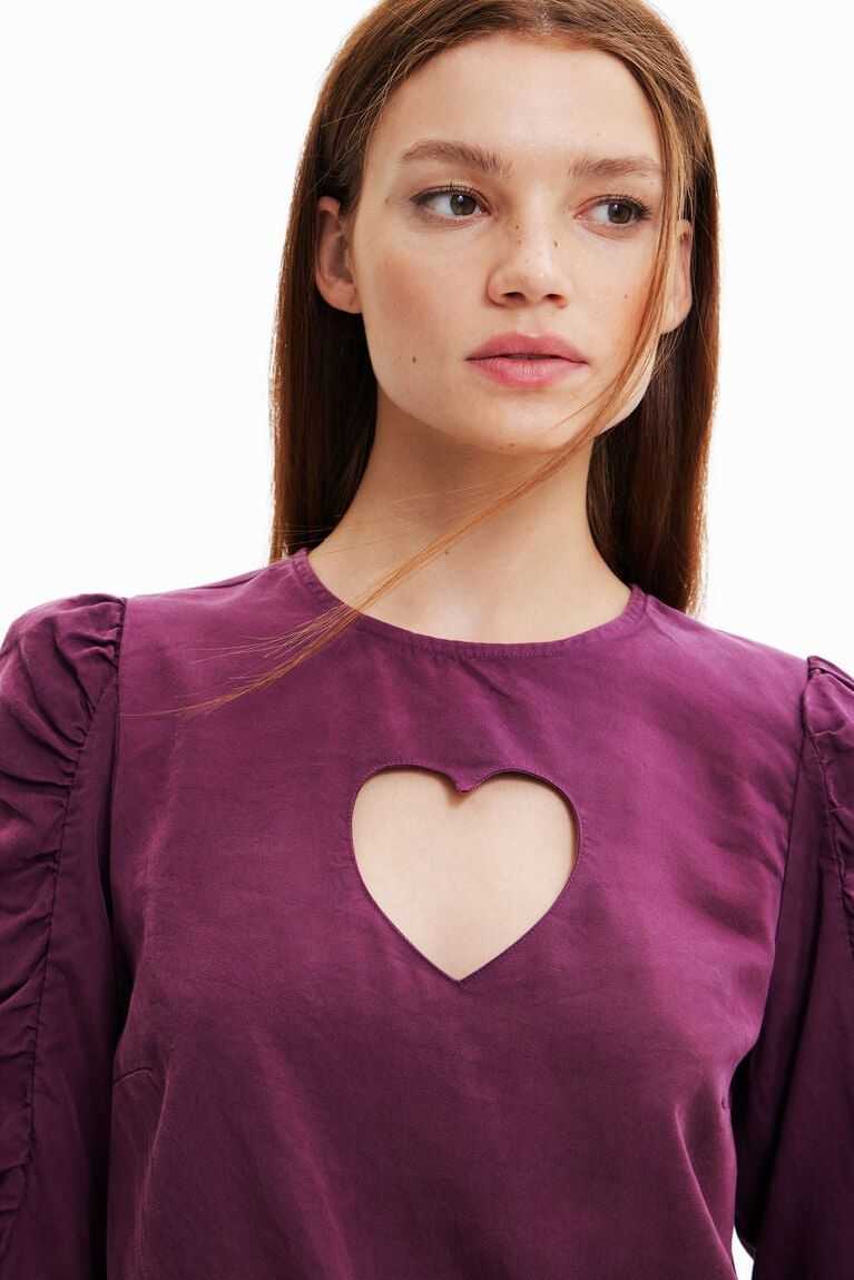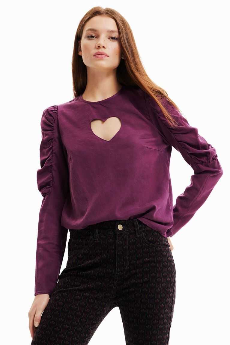 This versatile blouse features balloon upper sleeves and an original floral cut-out heart. Made with eco-friendly fibres.