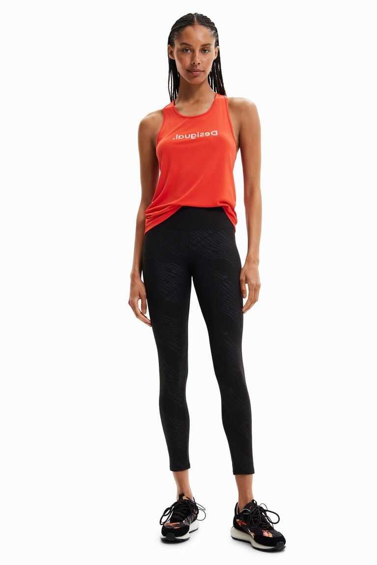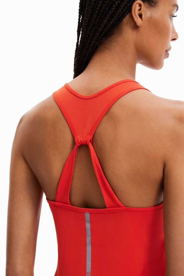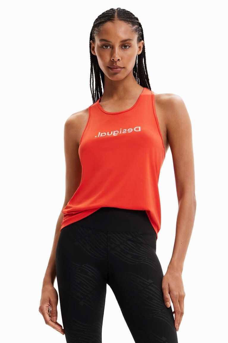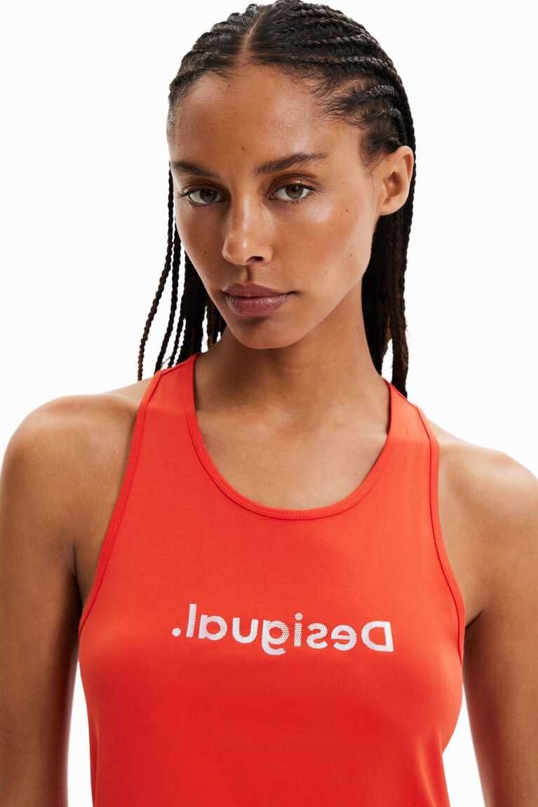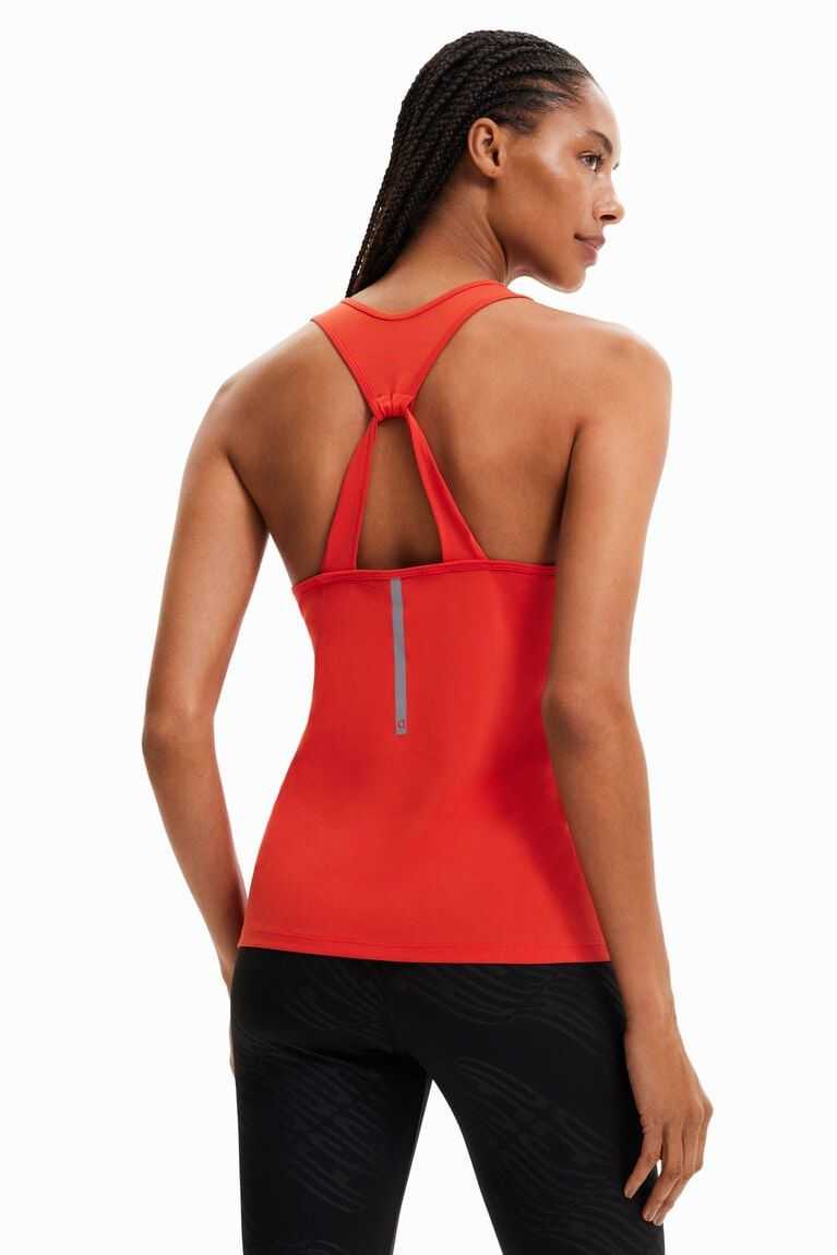 A must-have basic for your sporty or casual wardrobe. This sleeveless T-shirt features a crossing racer back in the same material.
