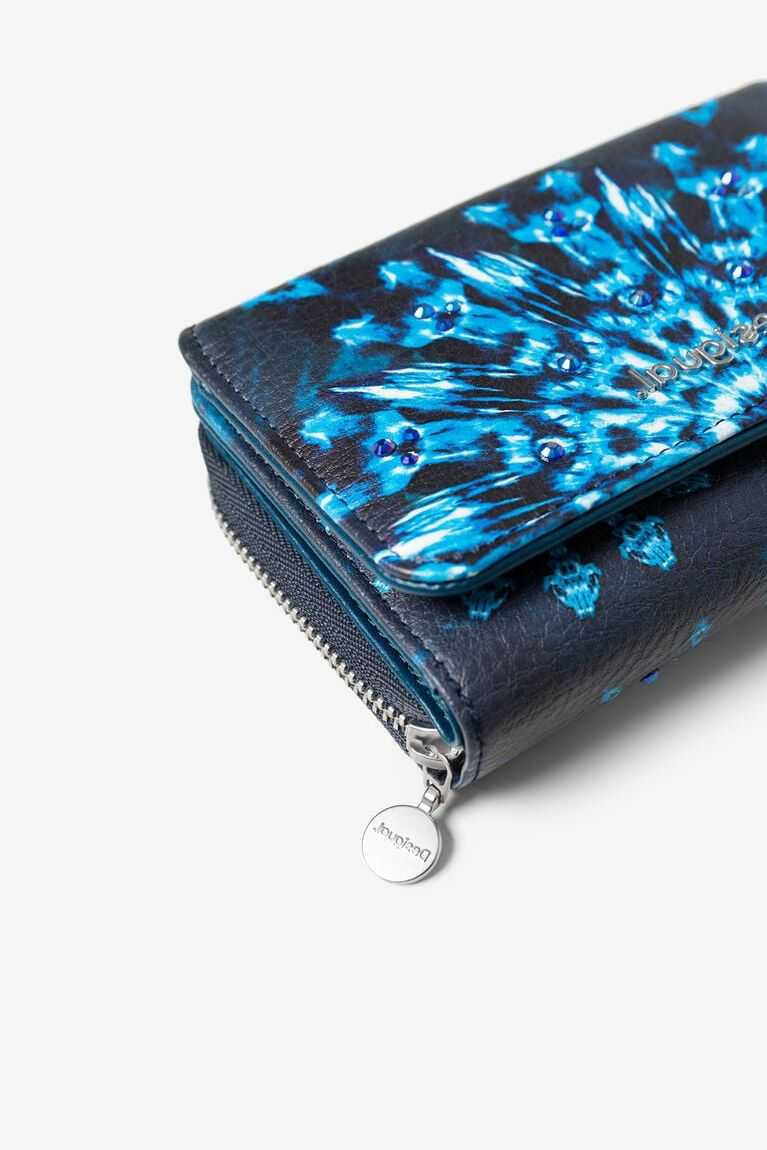 If you want a coin purse that expresses itself for you, this is what you're looking for. In navy blue vegan leather, and an artistic explosion of light blue mandalas, it's an accessory full of personality. Create your own universe with this coin purse full of harmony and balance.