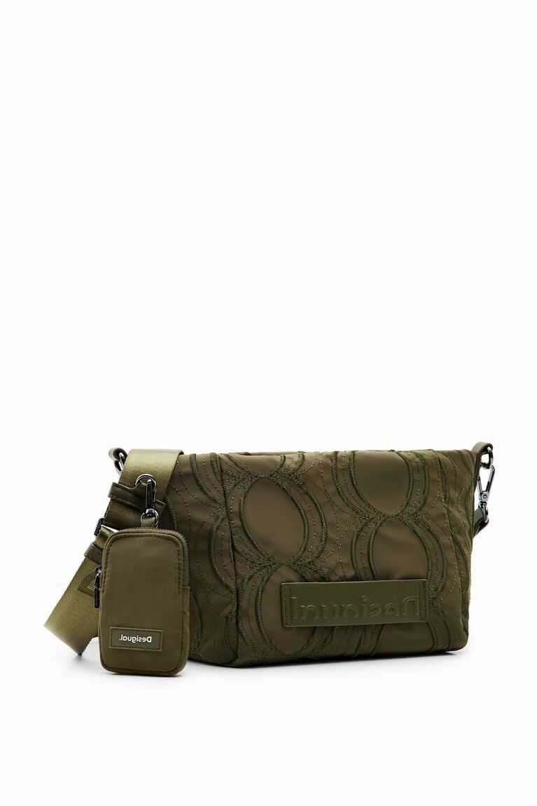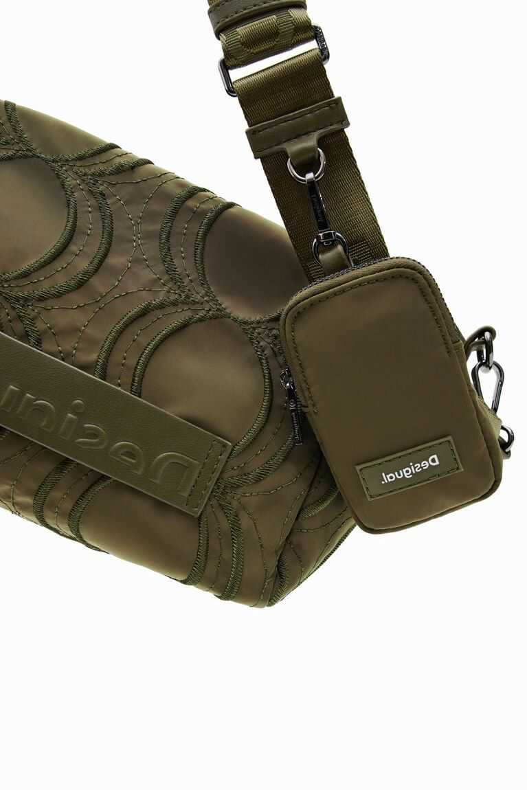 A highly versatile crossbody bag, made from sustainable fibres that create a plain-colour fabric embossed with circles. Features multiple pockets.