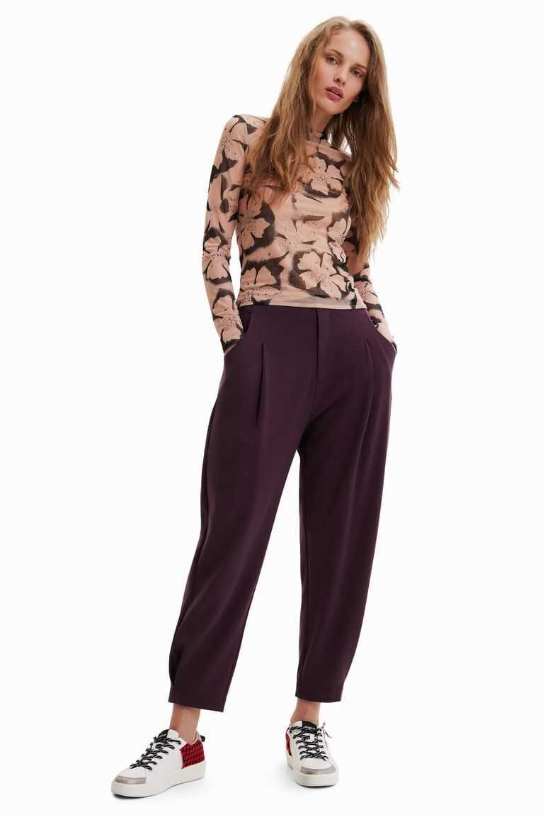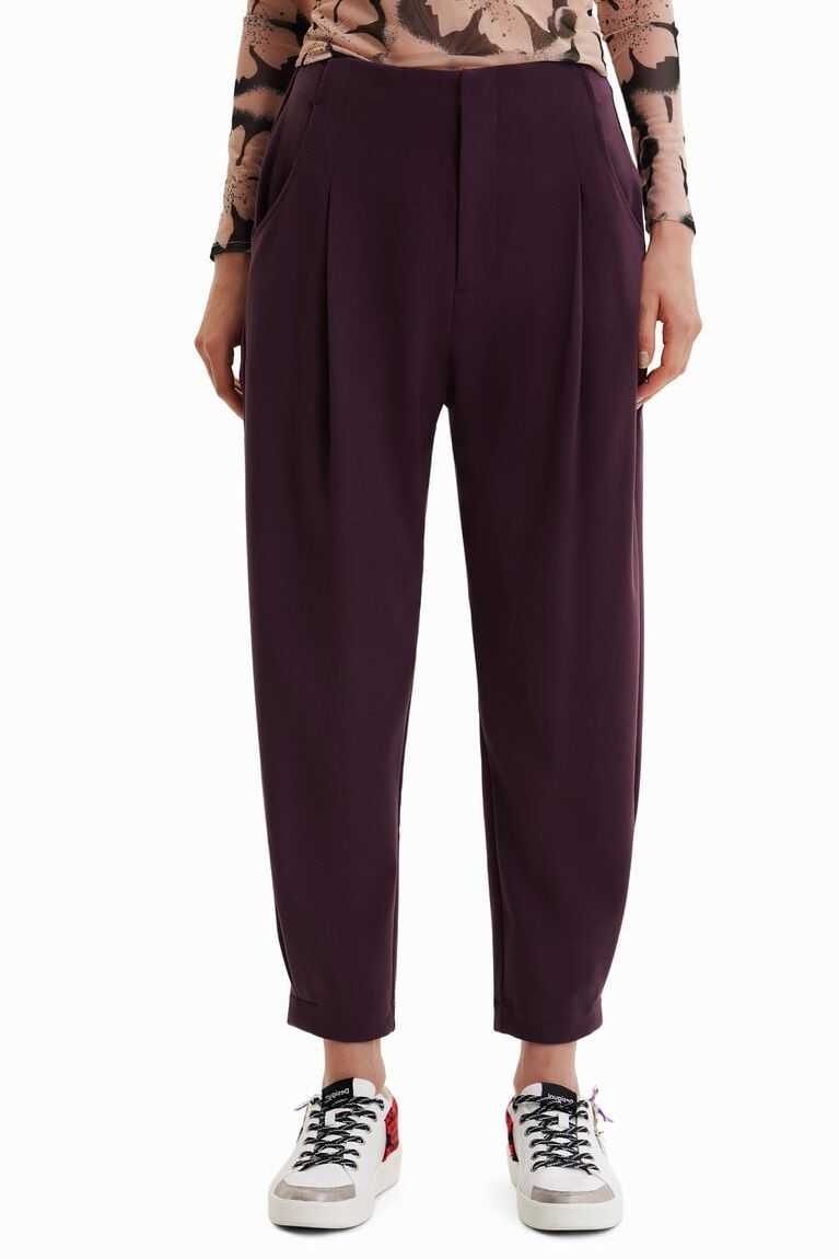 Crafted in an eco-friendly fabric, these slouchy cropped trousers feature front pleats and convenient side pockets.