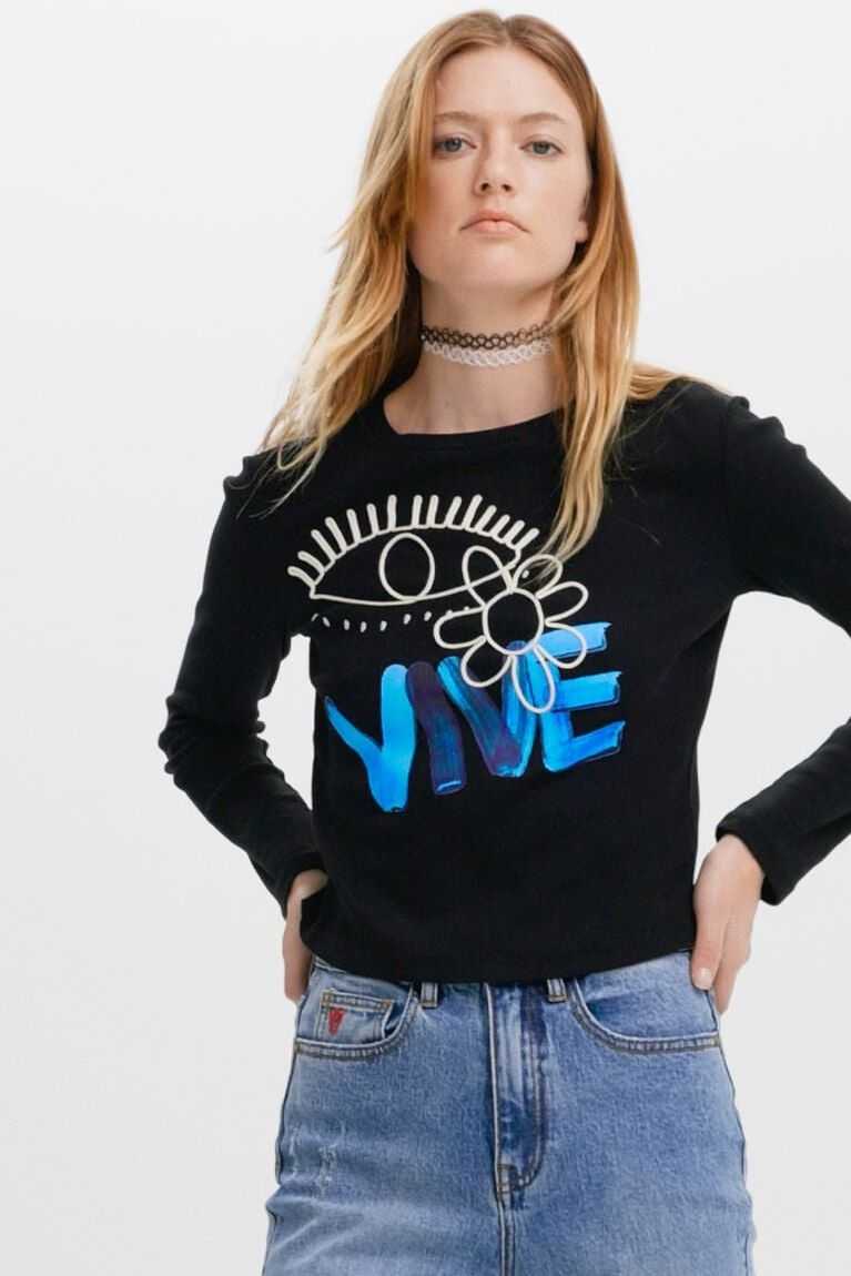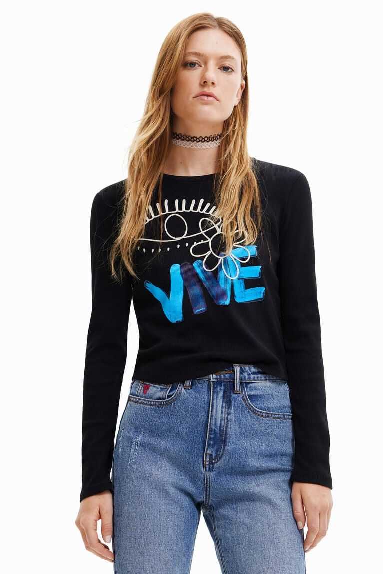 This playful cropped cotton T-shirt features a "Vive" message in a hand-painted effect. A flower and eye also decorate the front.