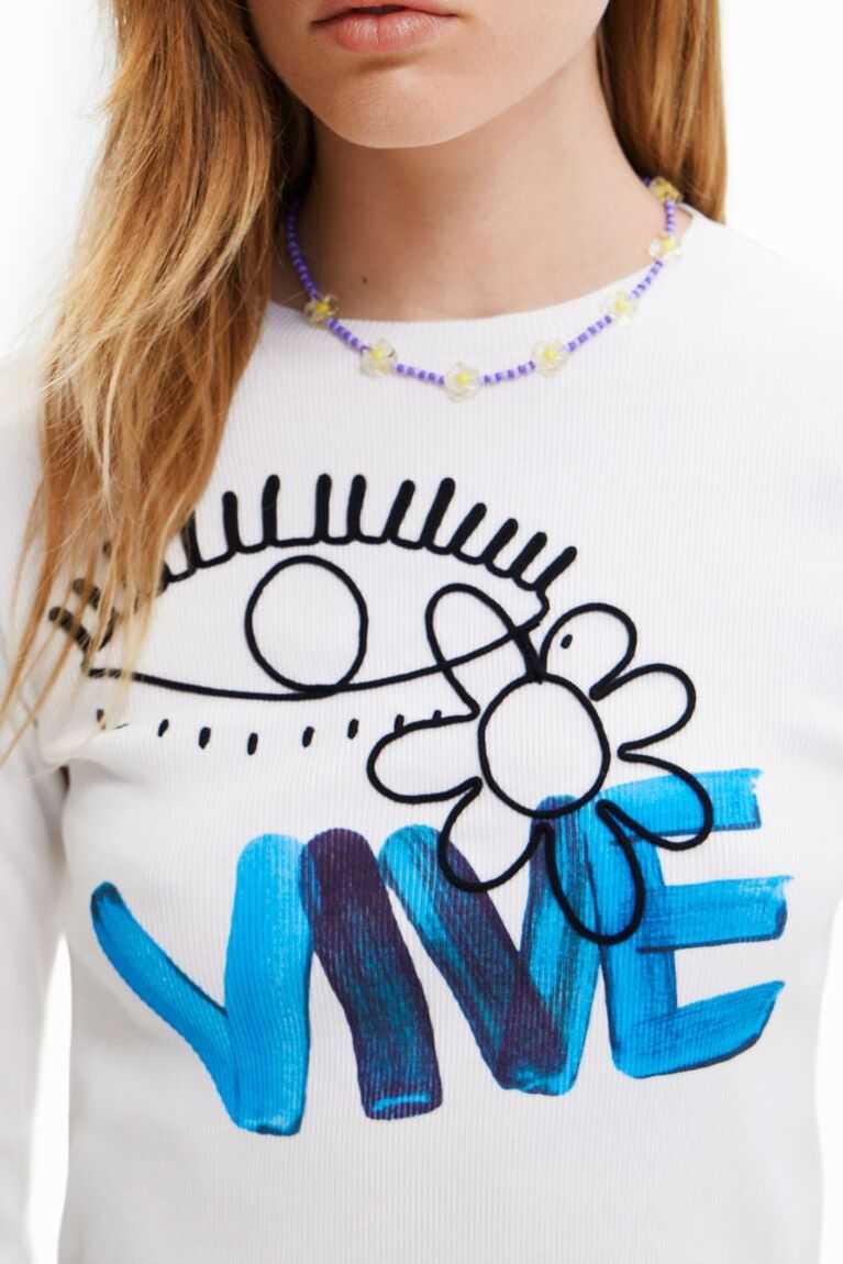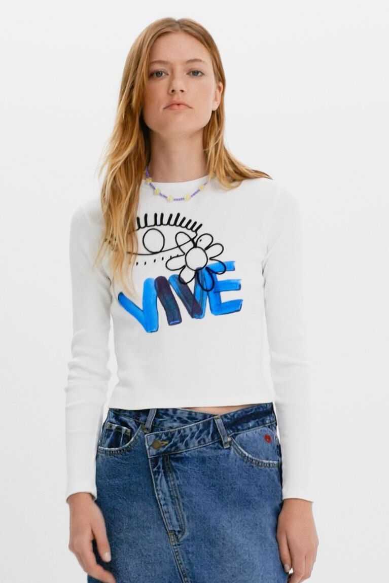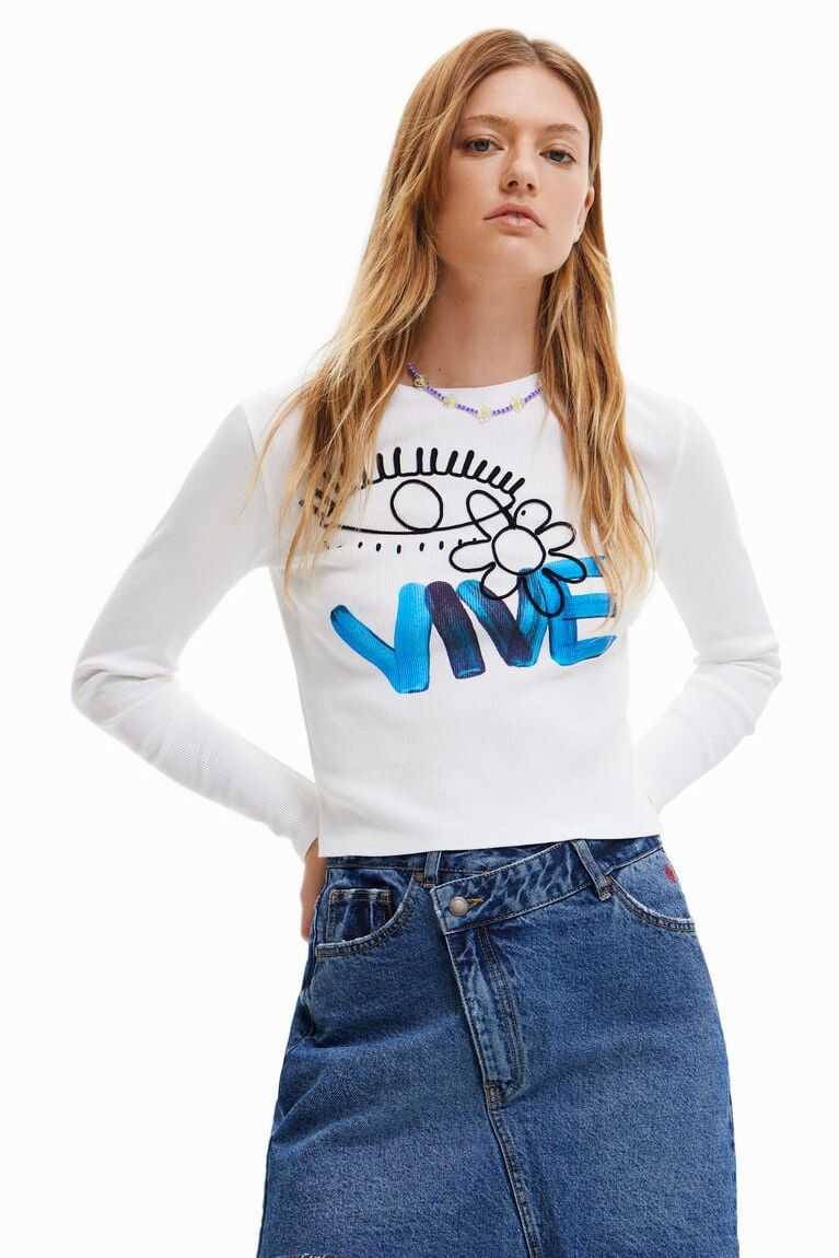 This playful cropped cotton T-shirt features a "Vive" message in a hand-painted effect. A flower and eye also decorate the front.