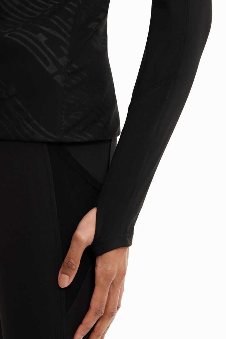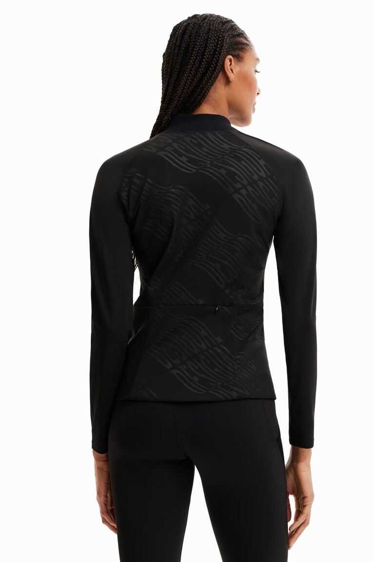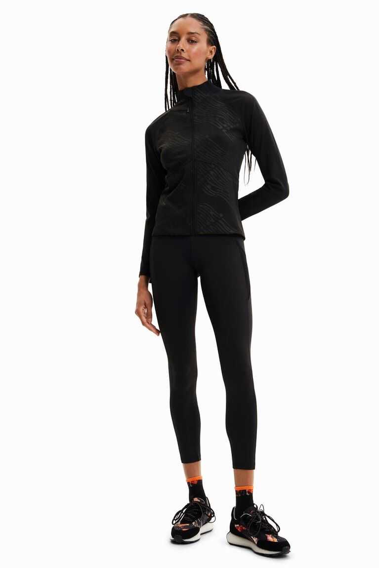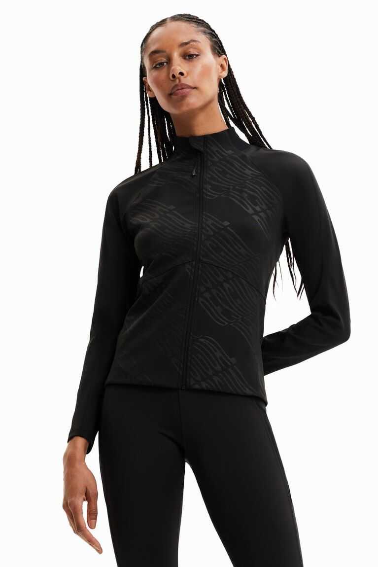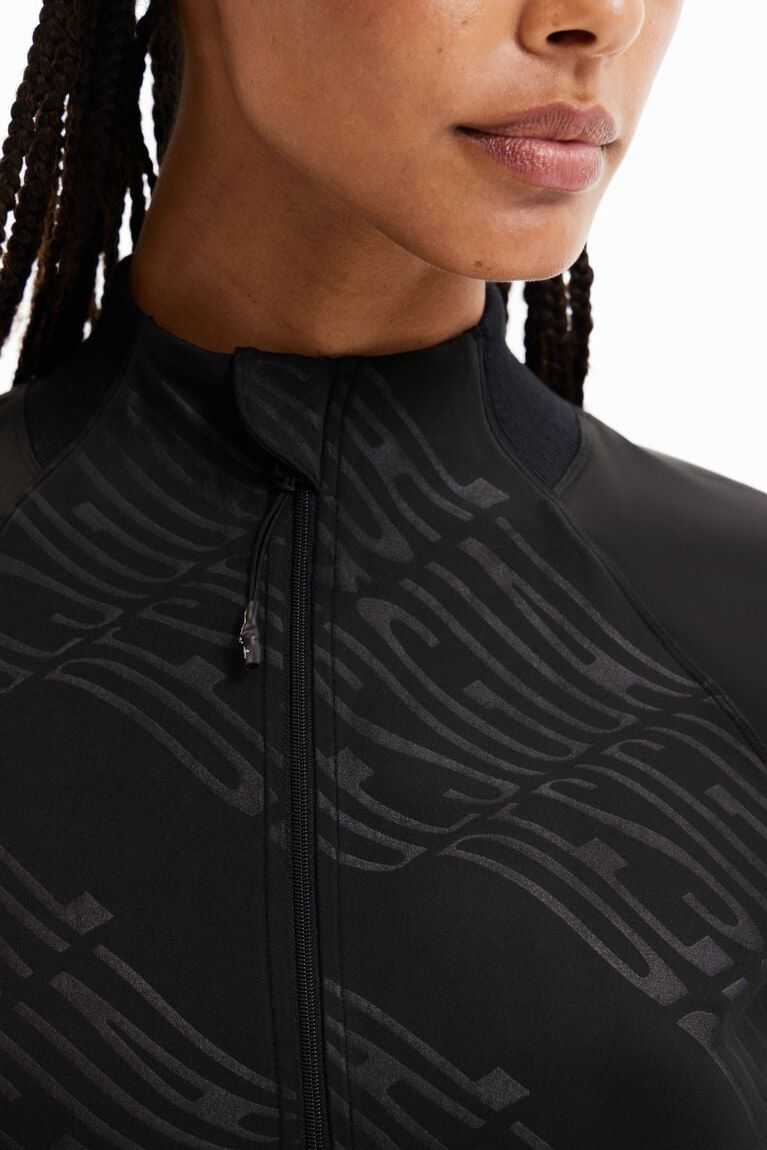 This running-style zip-up sweatshirt is made from technical fabric. Featuring a tone-on-tone Desigual logo print, roll neck and front zip. Pair it with the matching leggings for a total look.