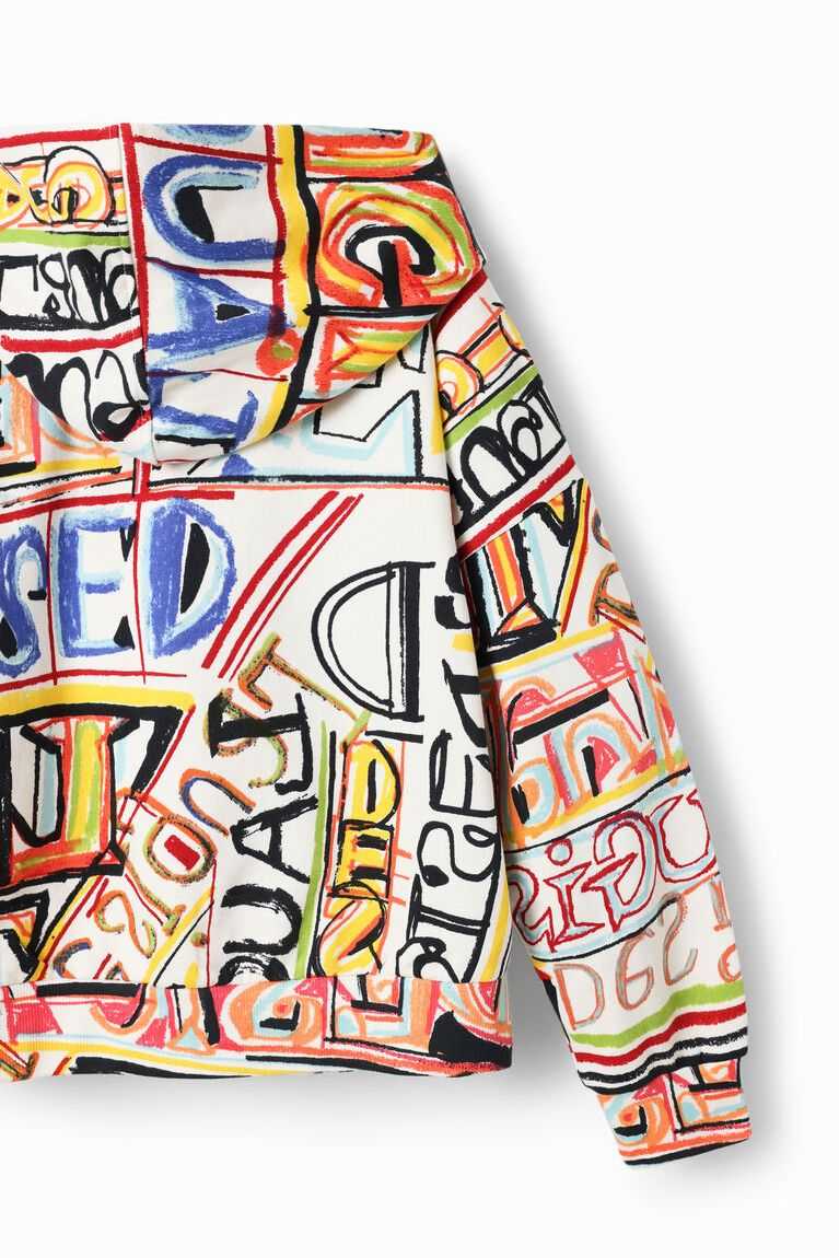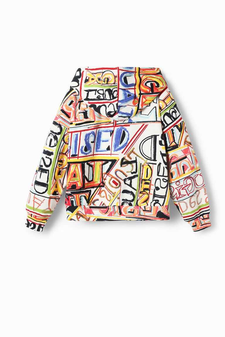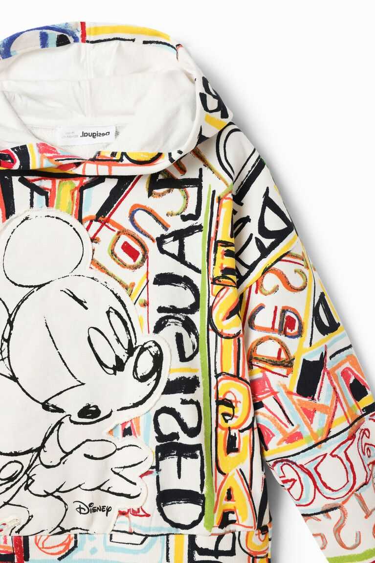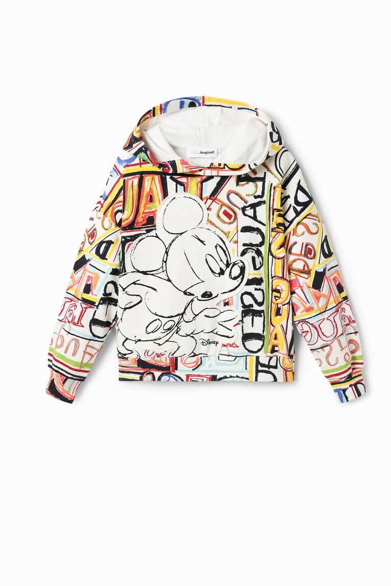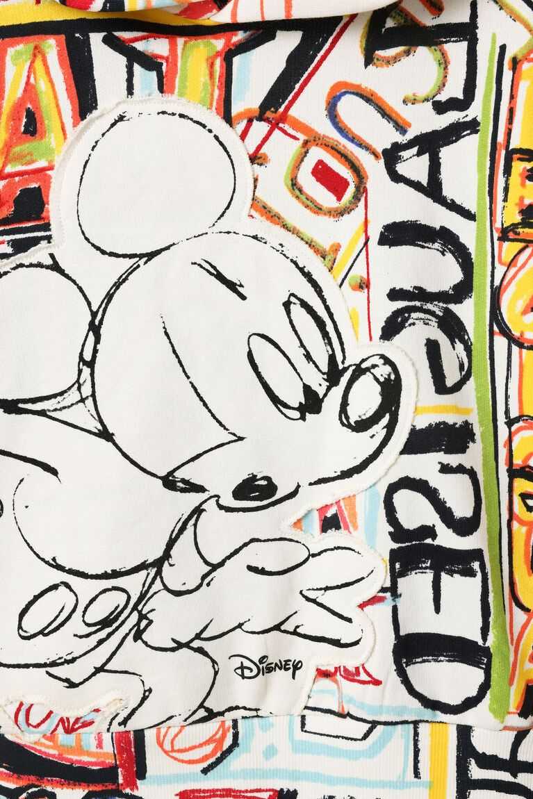 A loose-fitting hoodie printed with illustrations by designer Javier Mariscal and featuring a Disney's Mickey Mouse patch.
