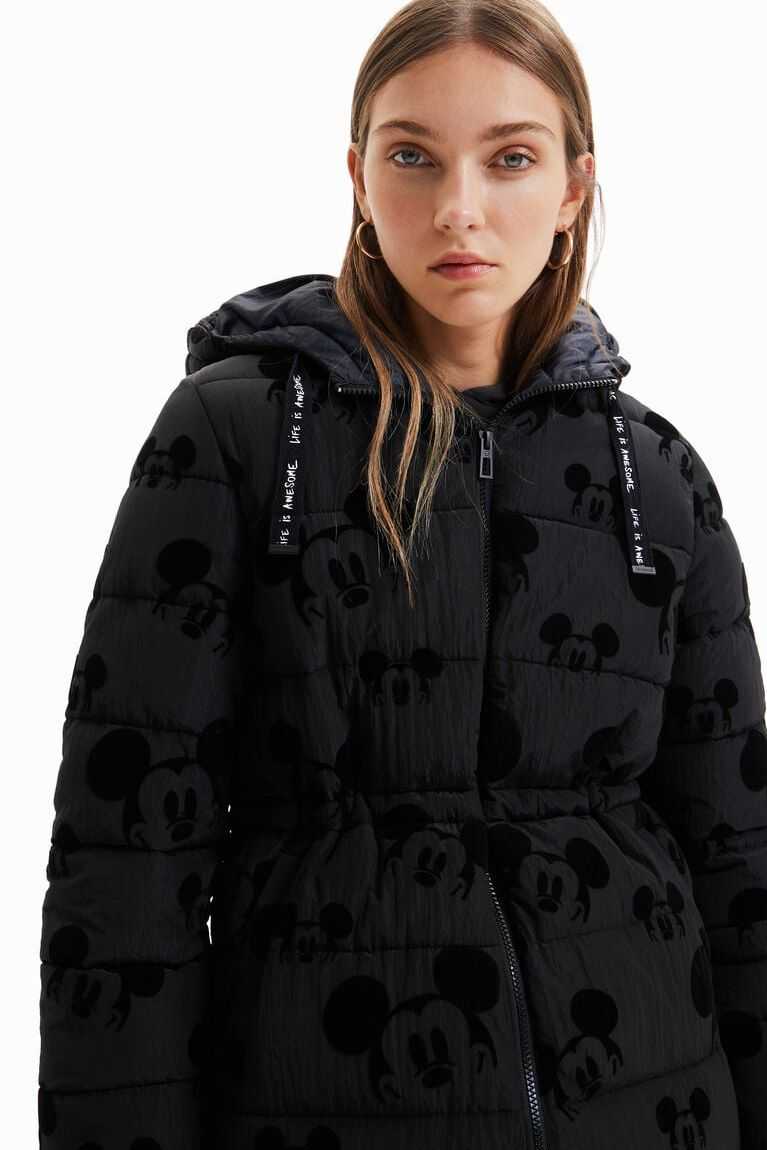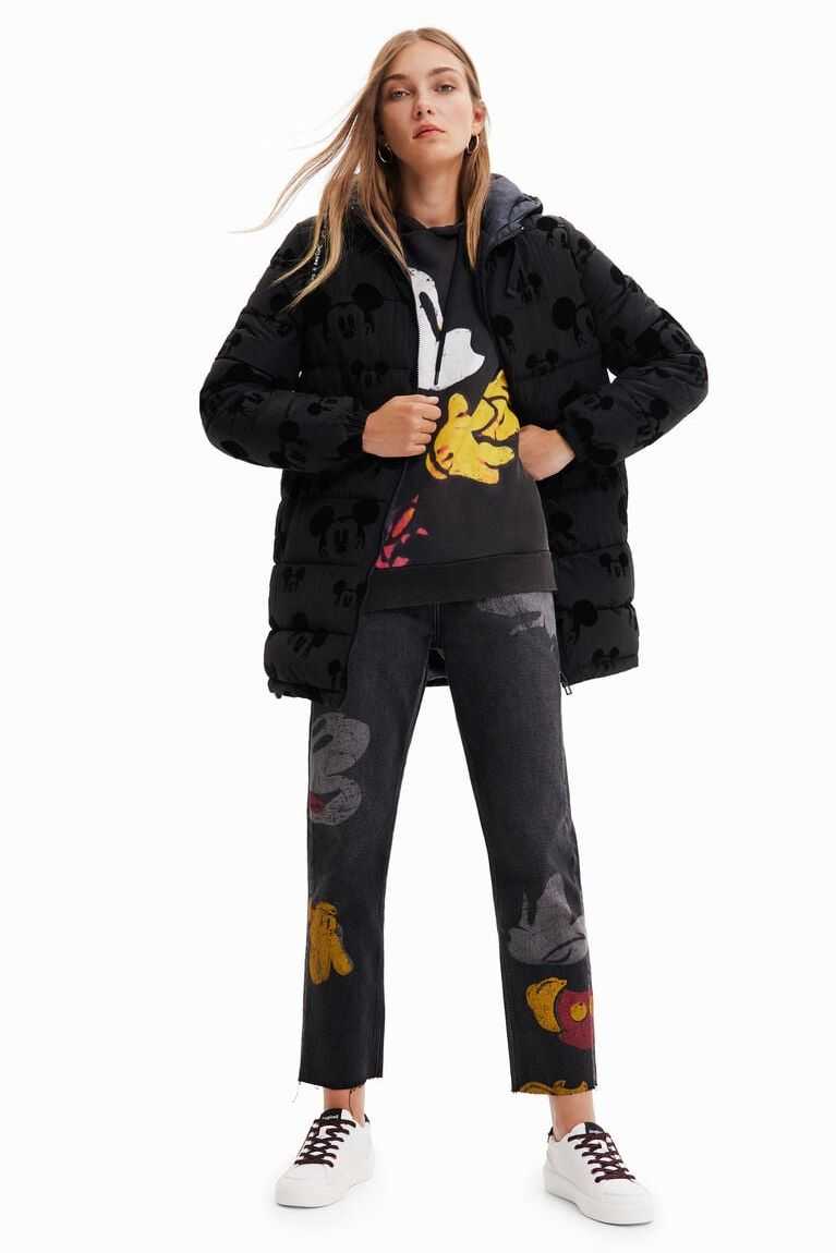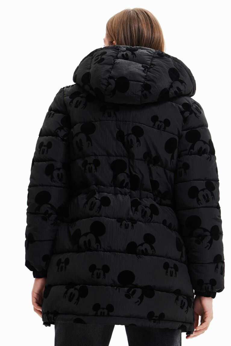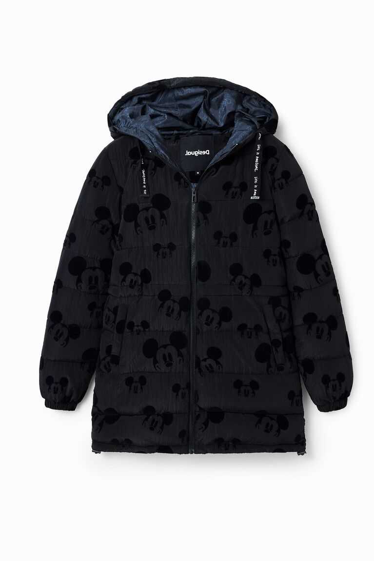 The allure of this quilted coat lies in its print of Disney's Mickey Mouse with a tone-on-tone velvet effect. Thanks to its hooded collar and warm fabric it's as functional as it is special.