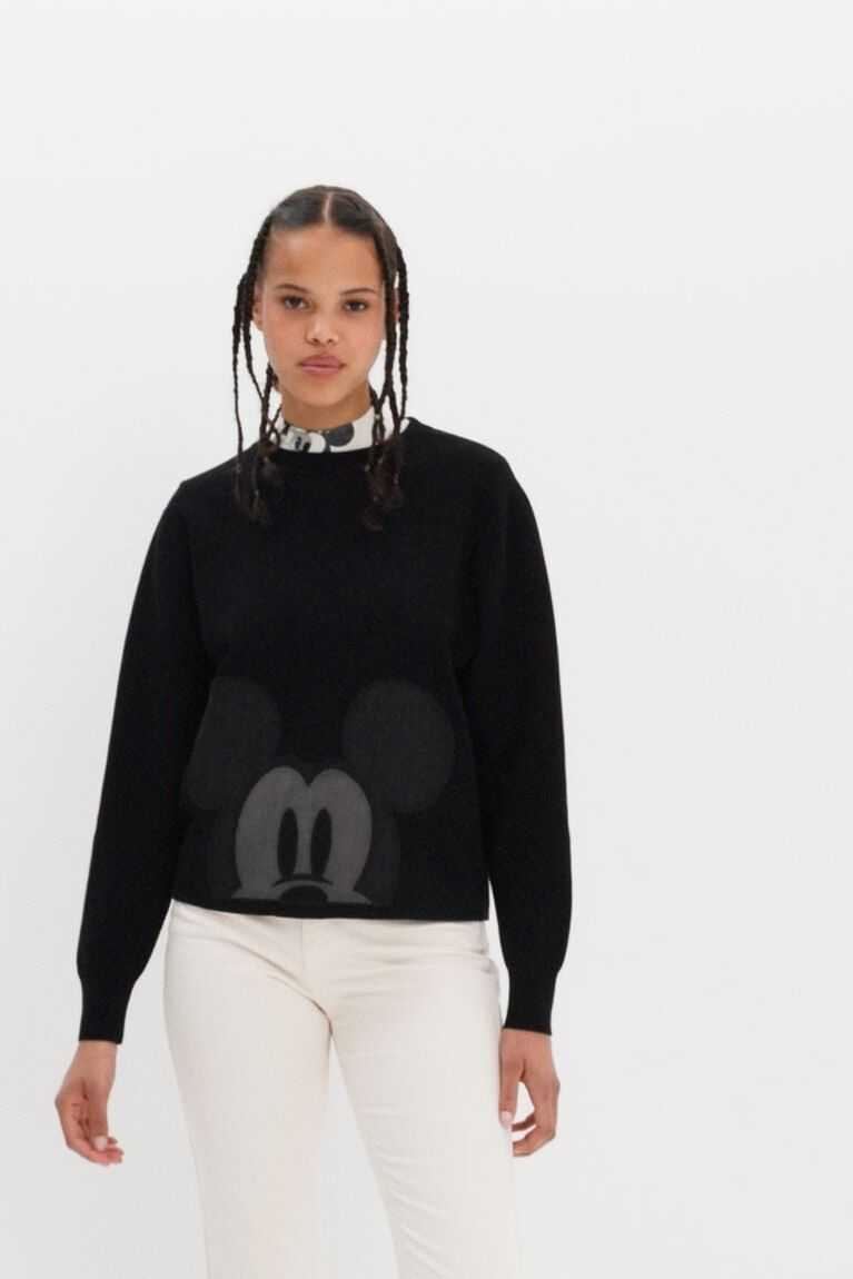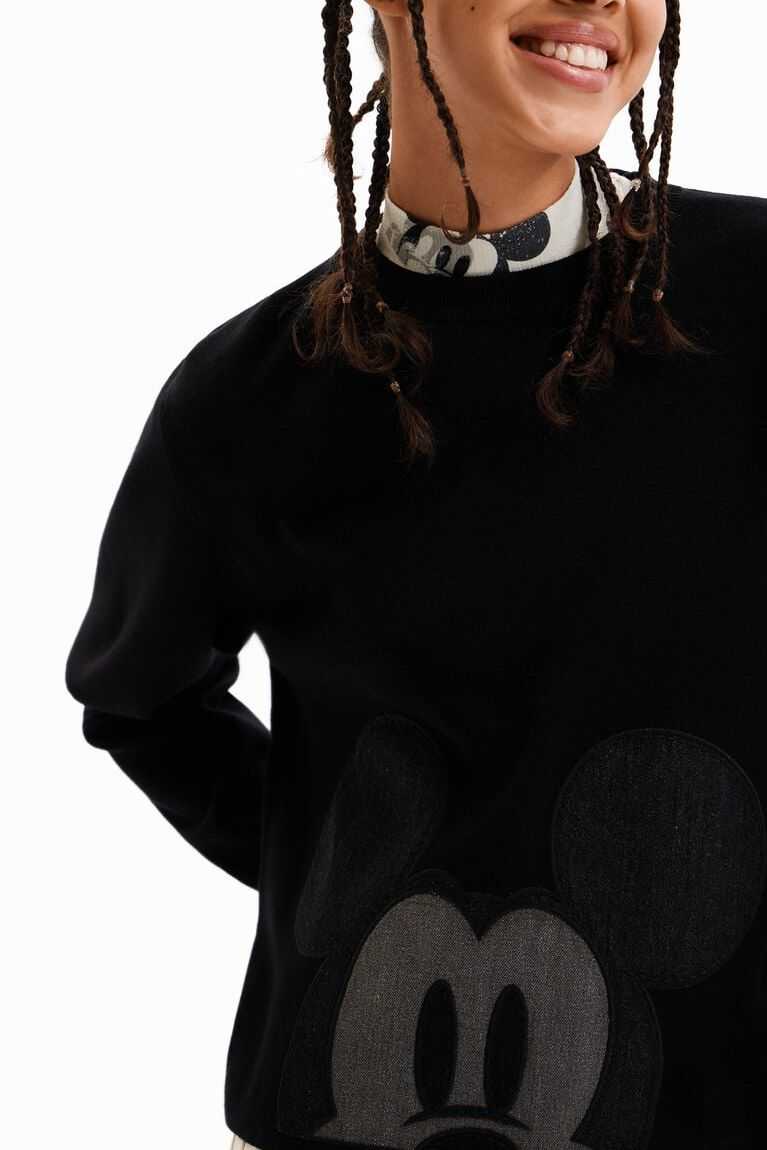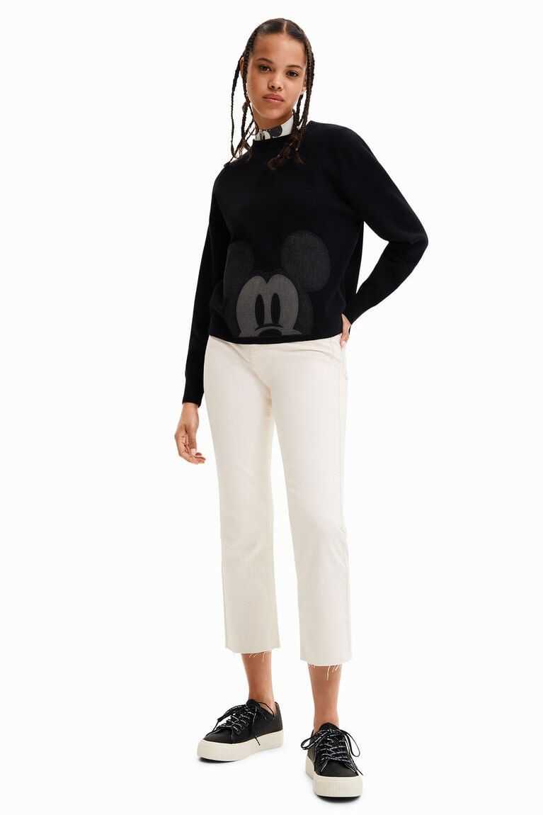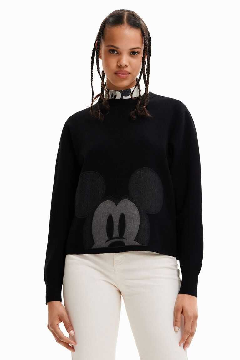A large patch of Disney's Mickey Mouse in masculine fabrics with tone-on-tone backstitching adorns this light fine-knit jumper in understated shades. Made with eco-friendly fibres.