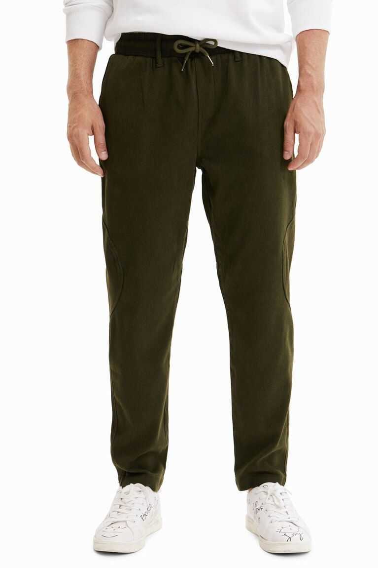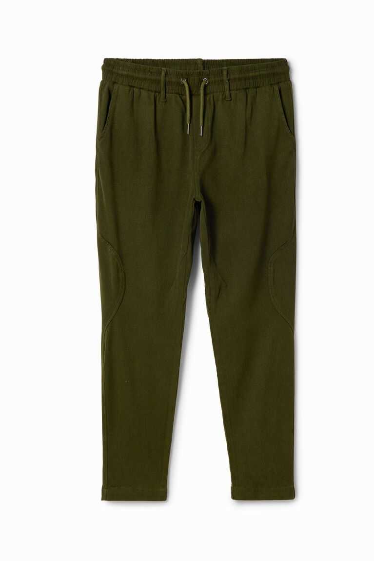 Jogger trousers with an elasticated waistband and hems, drawstring adjustment and decorative stitching on the leg.