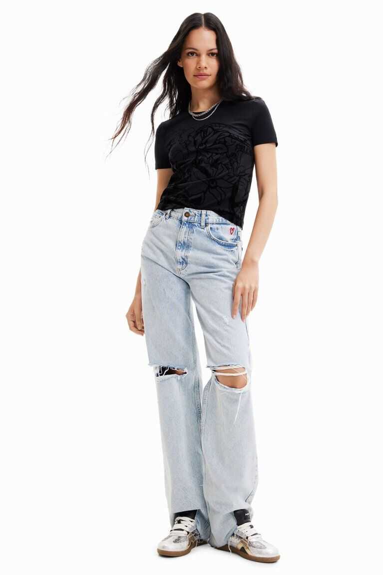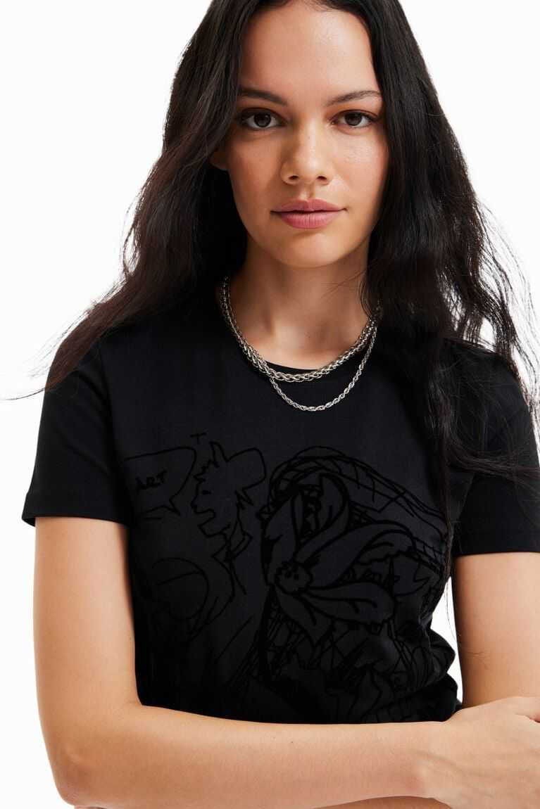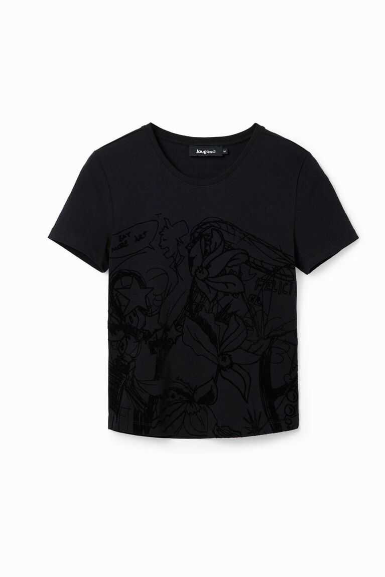 This basic short-sleeve T-shirt features an embossed velvety tone-on-tone illustration in a hand-drawn effect. With a hint of stretch for improved comfort.