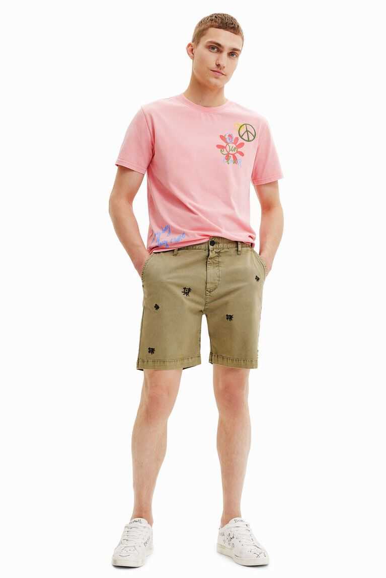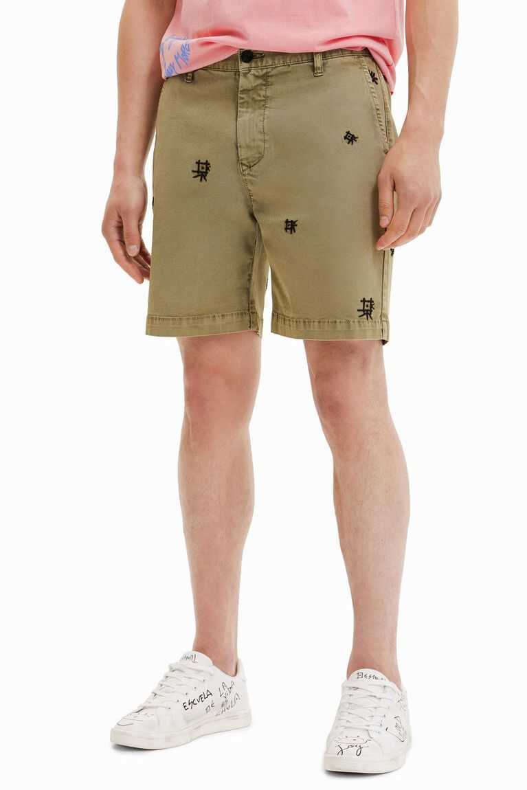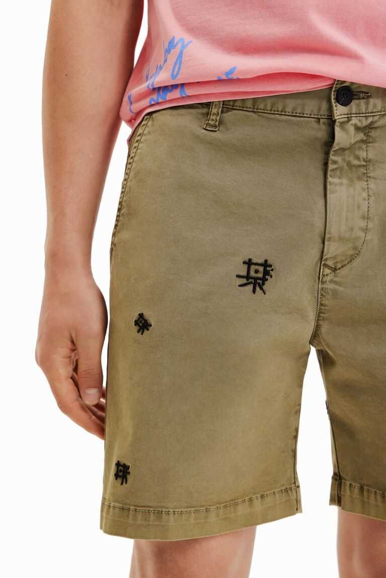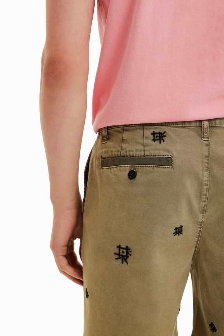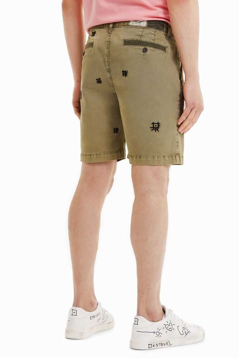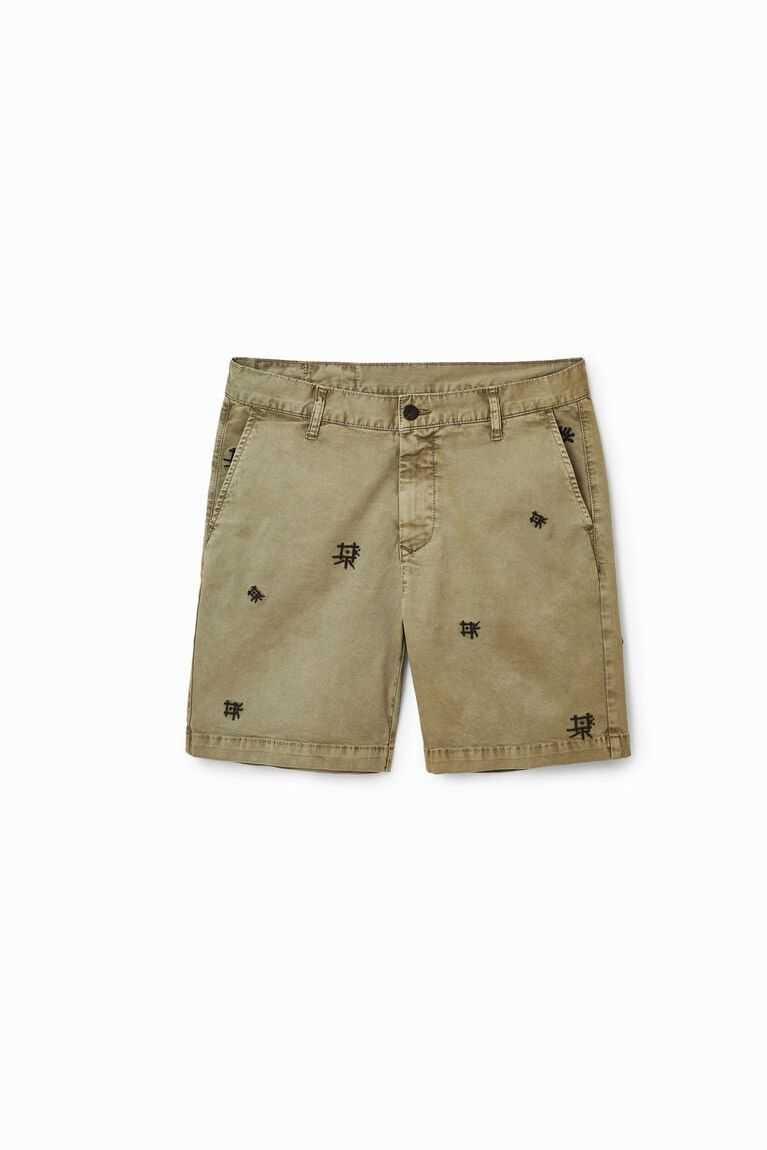Classic Bermuda shorts made from a non-denim cotton fabric with a hint of elastane, dyed in a vivid colour with an all-over camera embroidery.