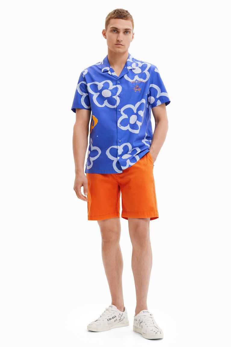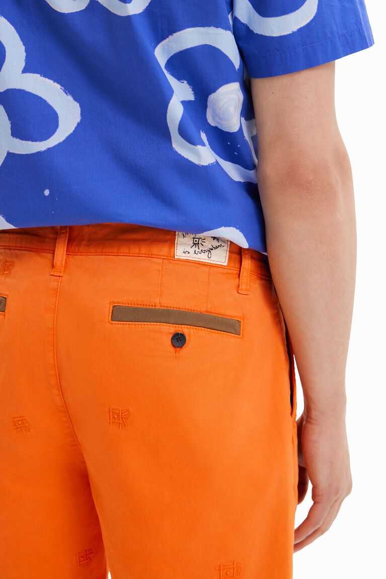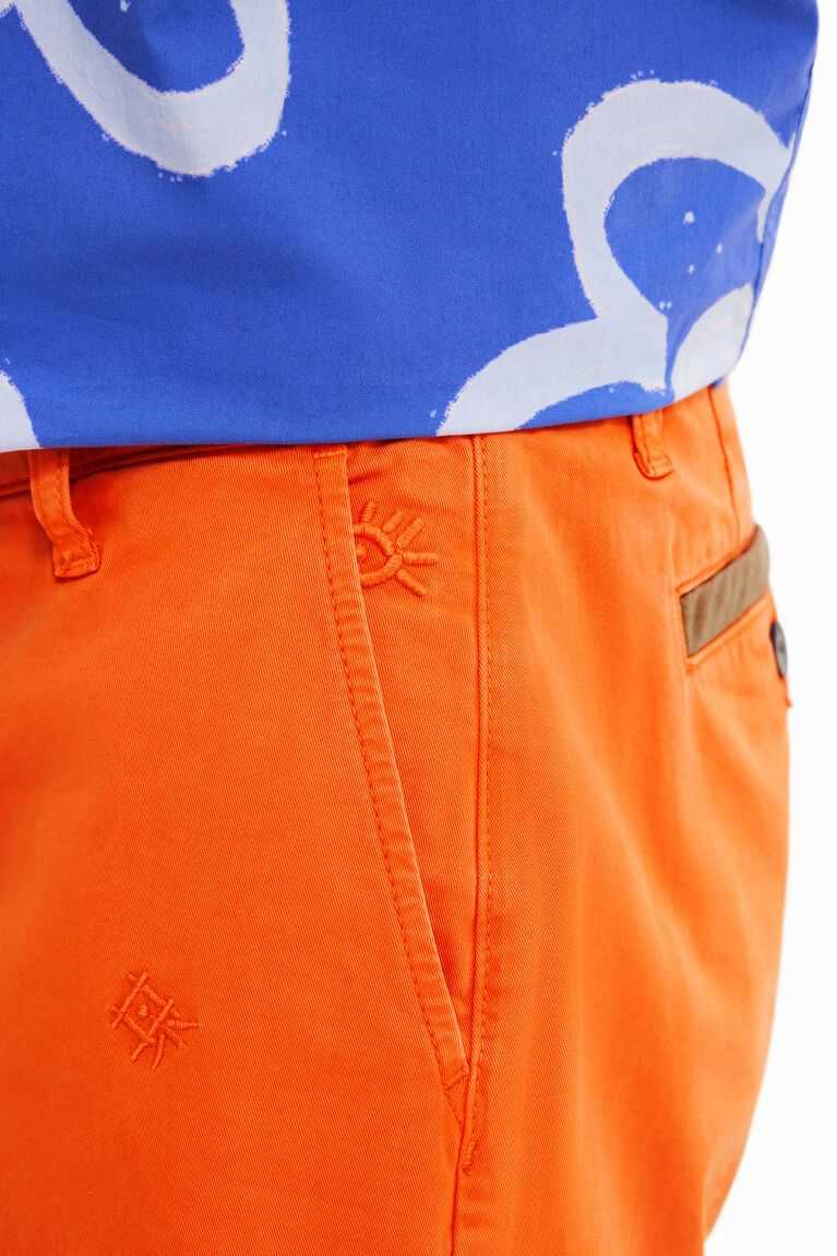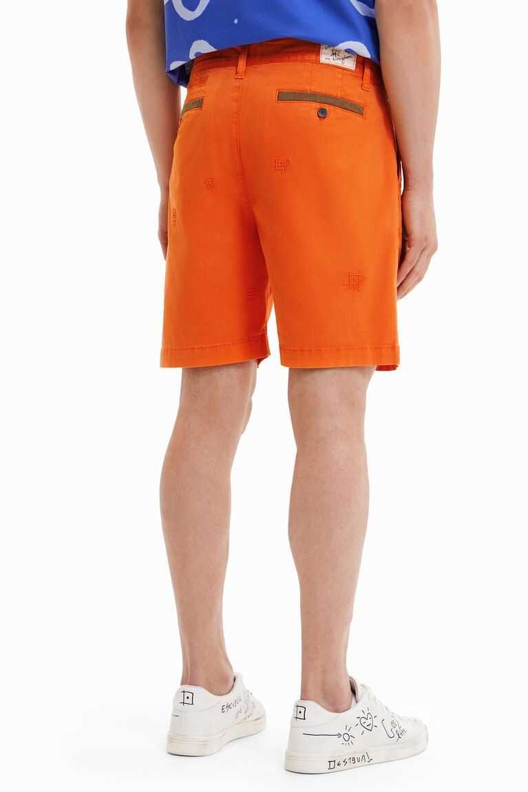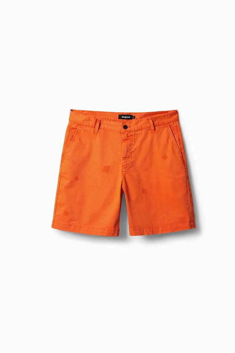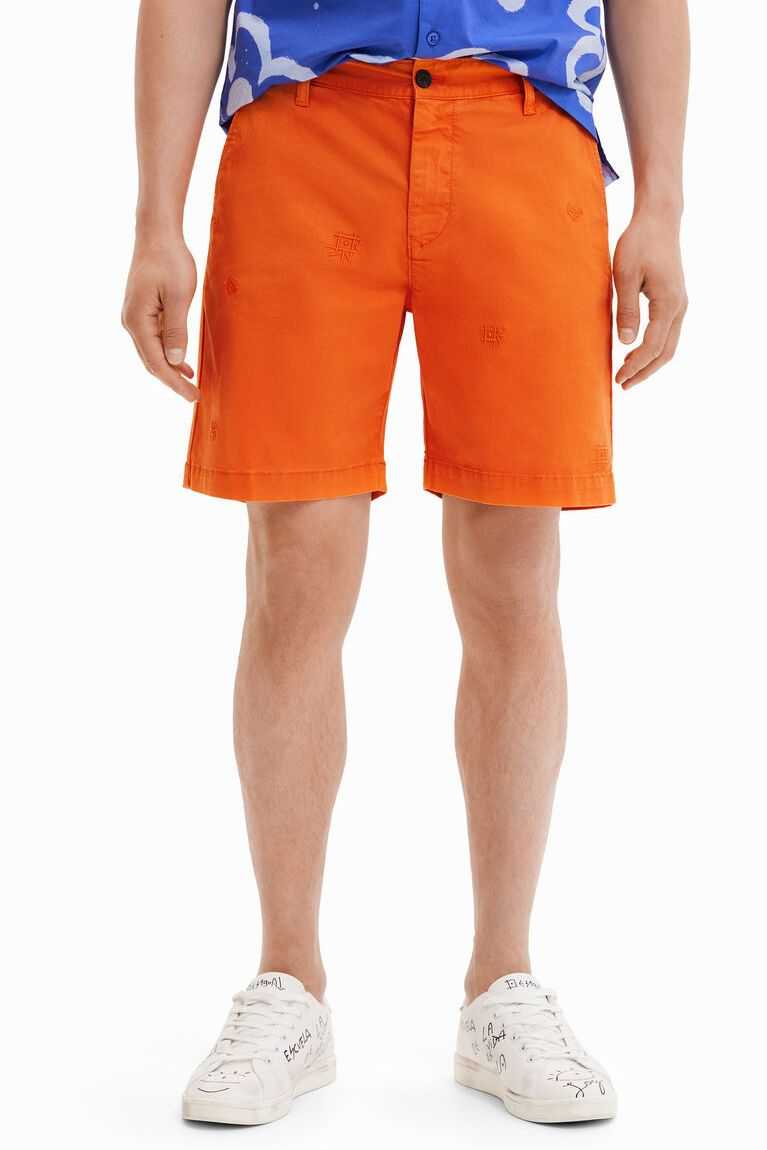 Classic Bermuda shorts made from a non-denim cotton fabric with a hint of elastane, dyed in a vivid colour with an all-over camera embroidery.