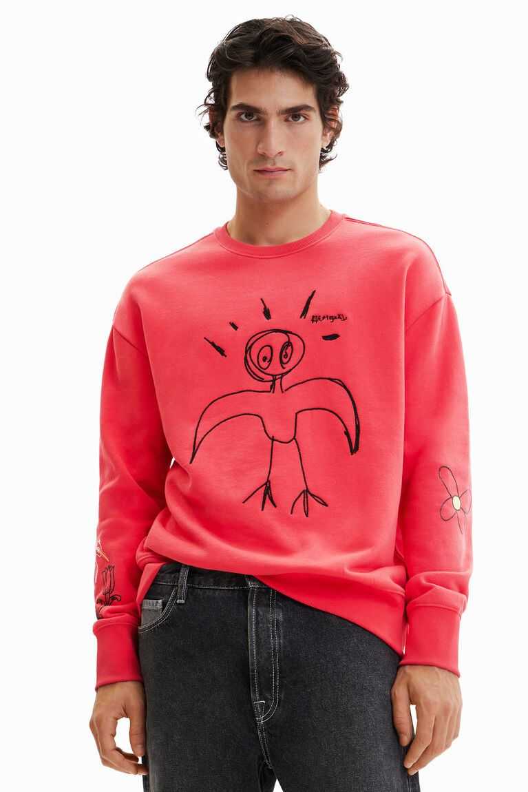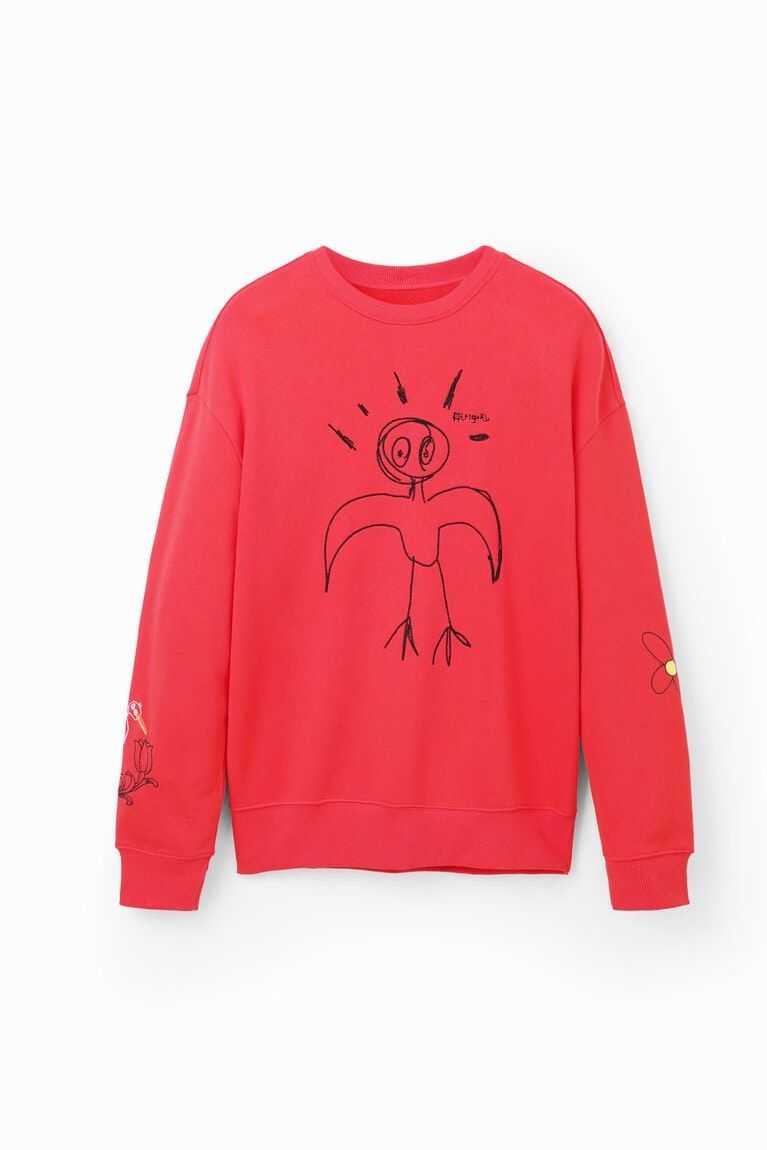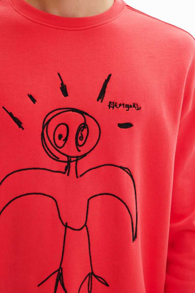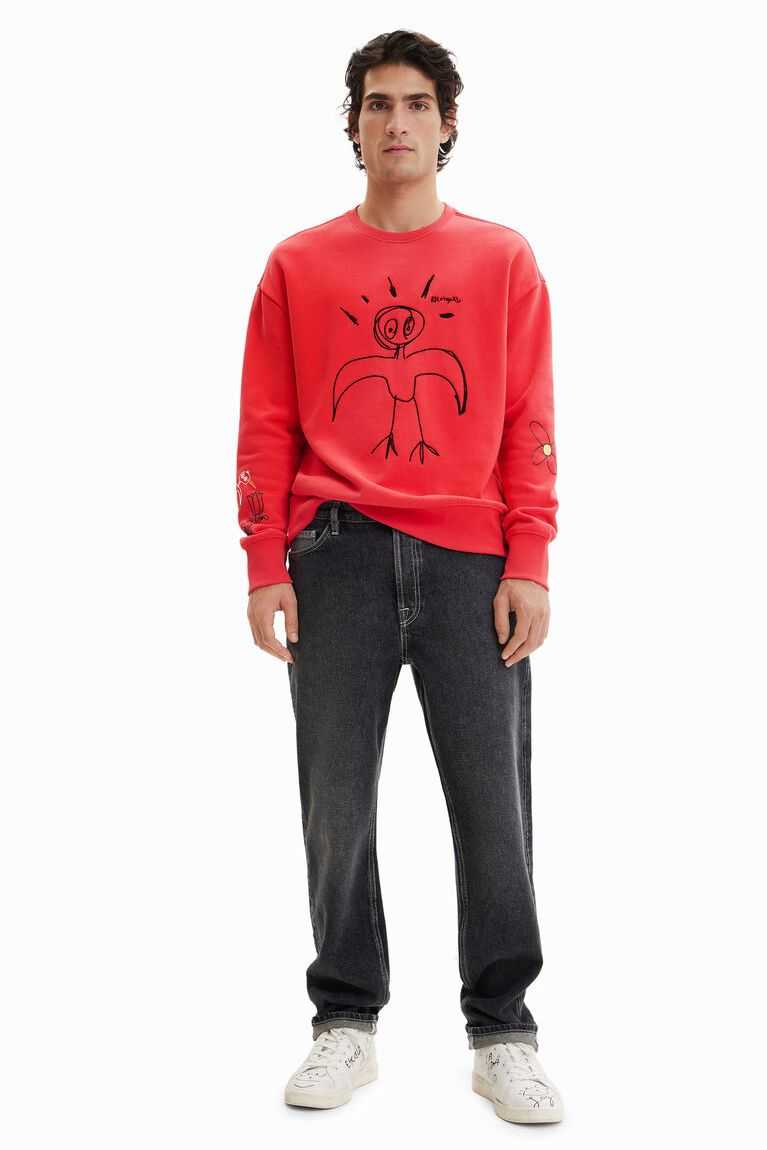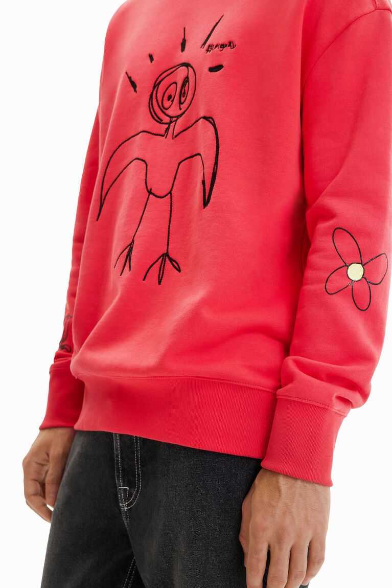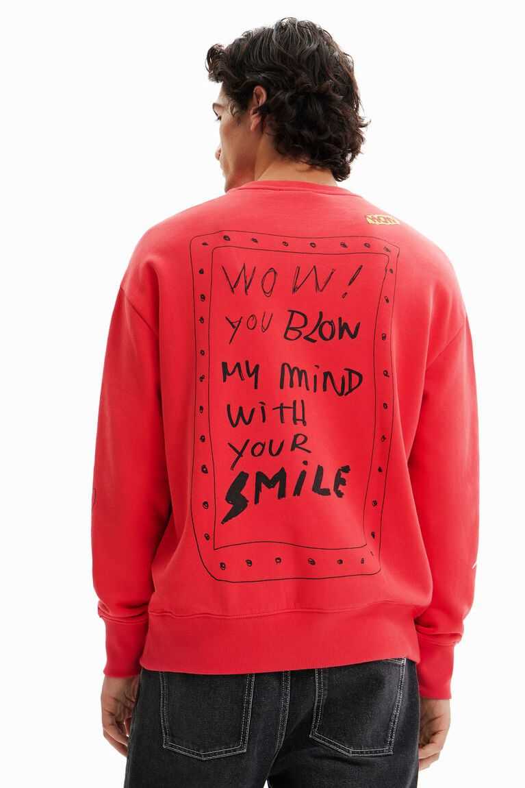 A relaxed fit sweatshirt with front embroidery, sleeve details and message print on the back.