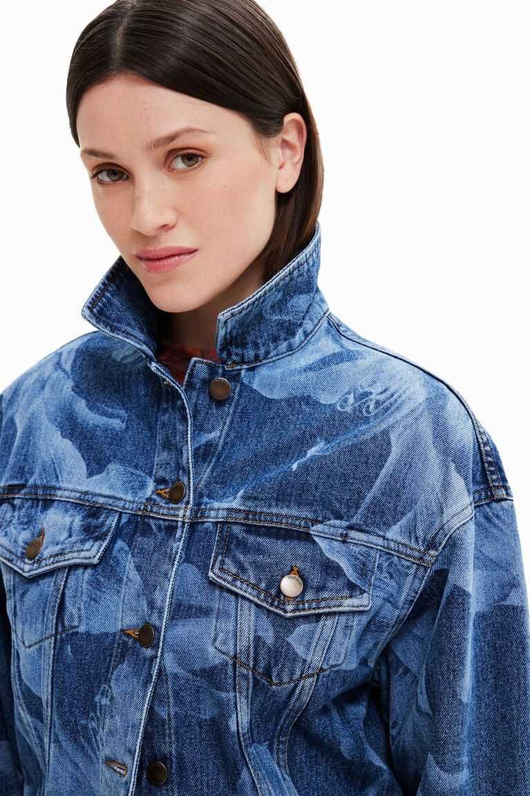The contrasting floral laser print gives this denim trucker jacket a lot of character. Made with cotton. Combine it with the matching jeans.