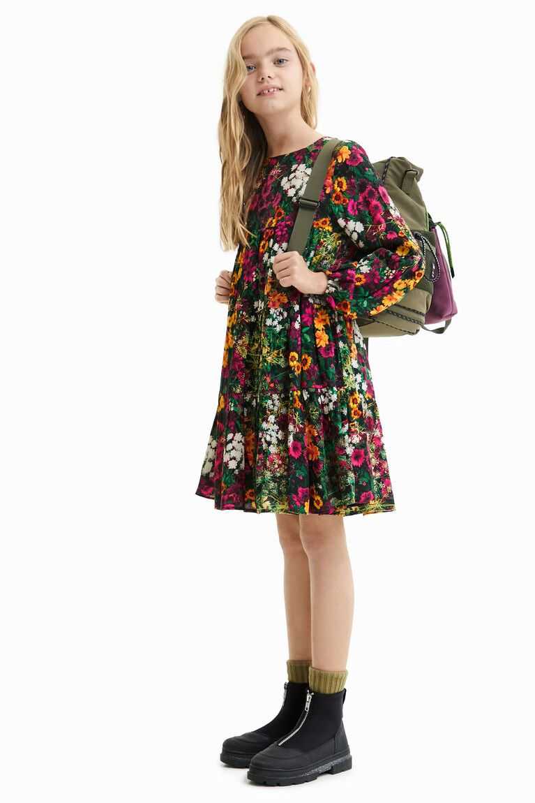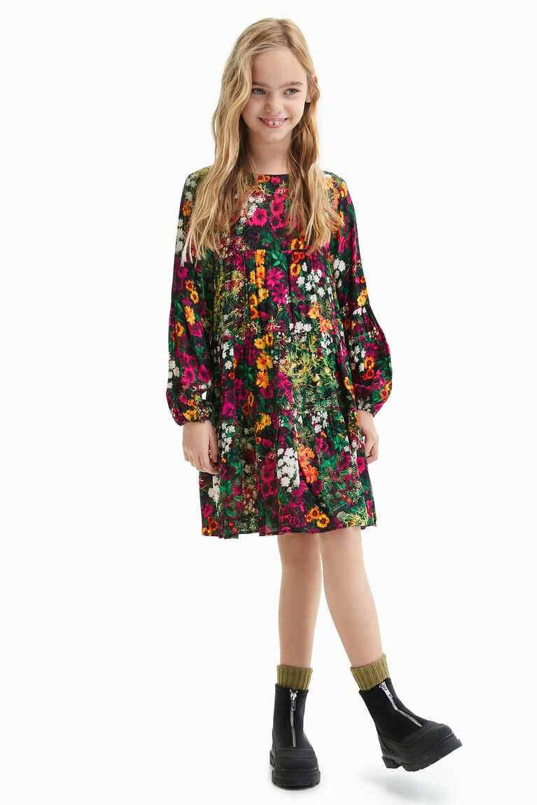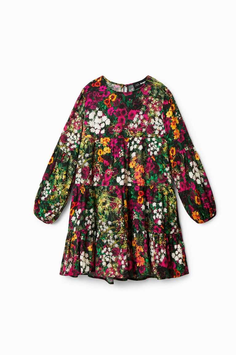This relaxed-fit tulle dress with balloon sleeves features panels in the same floral print. Made from eco-friendly fibres.
