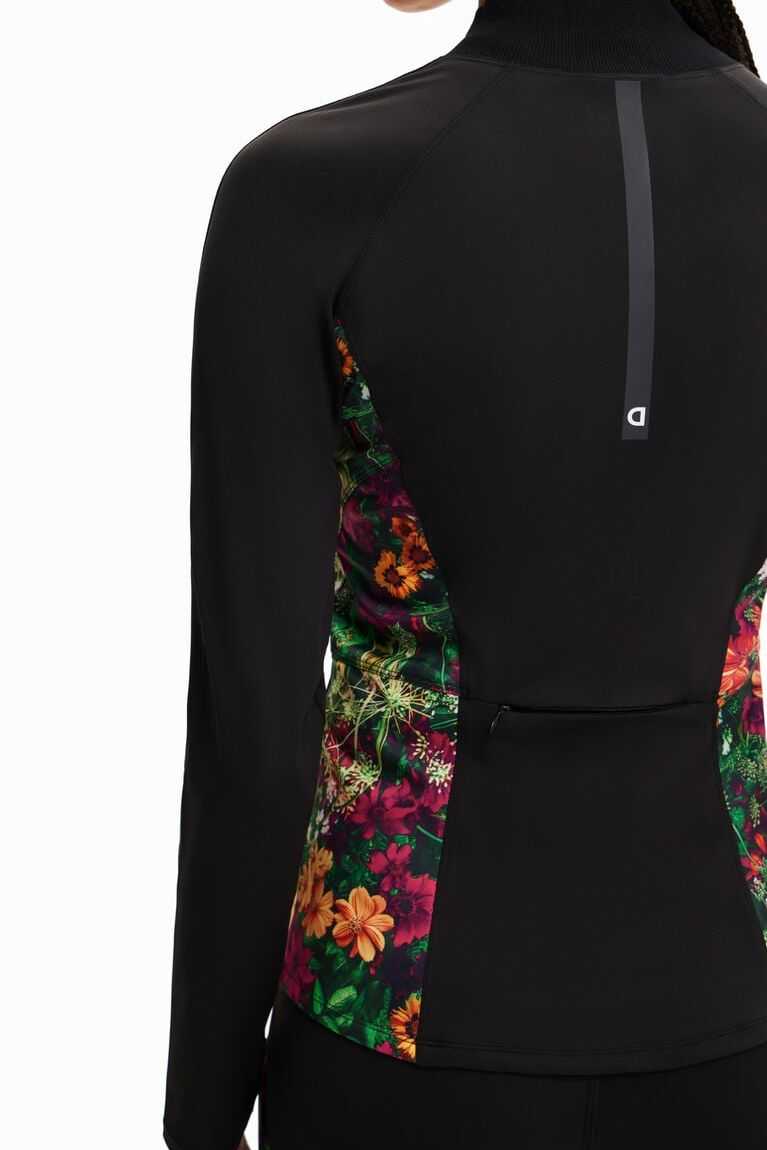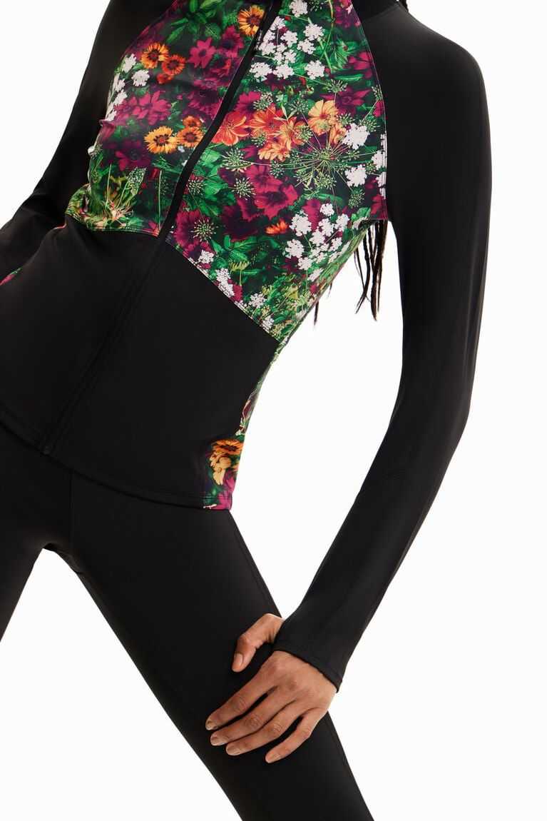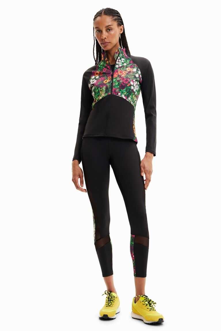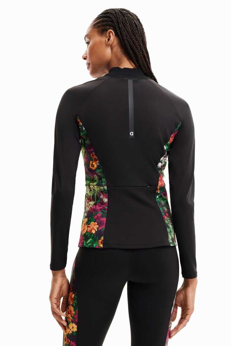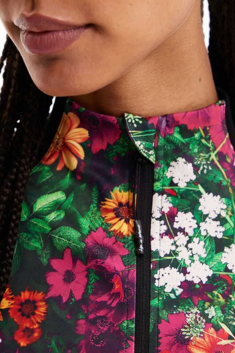 Fitted sport jacket in slightly stretchy fabric, with a Perkins collar, printed body and front zip.