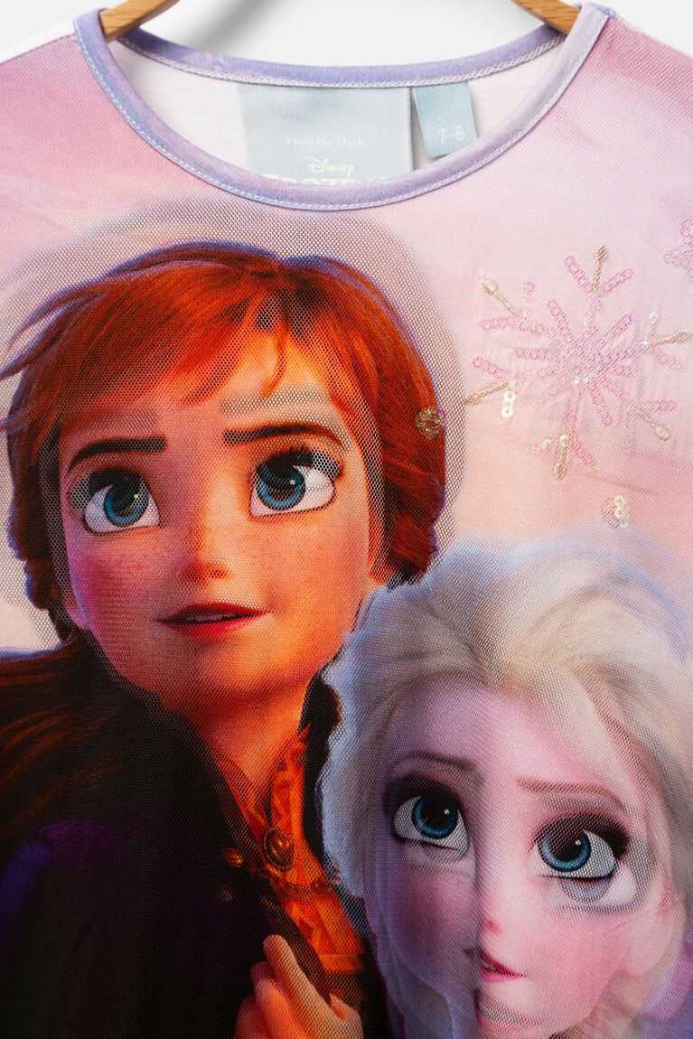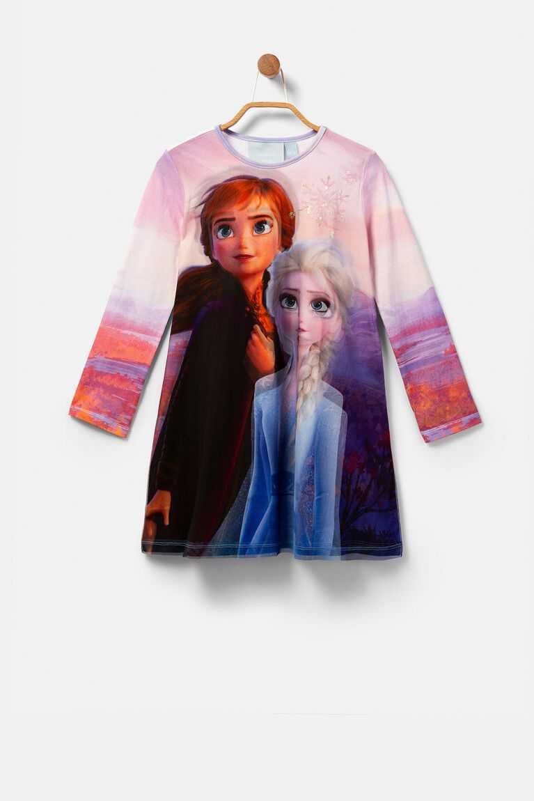 If anyone knows how to capture the attention of the youngest, that's Disney .And with Frozen this was also the case. With this long sleeve short flared dress with oversize print of Elsa and Anna they'll let their imagination soar. They're sure to want to become ice princesses.