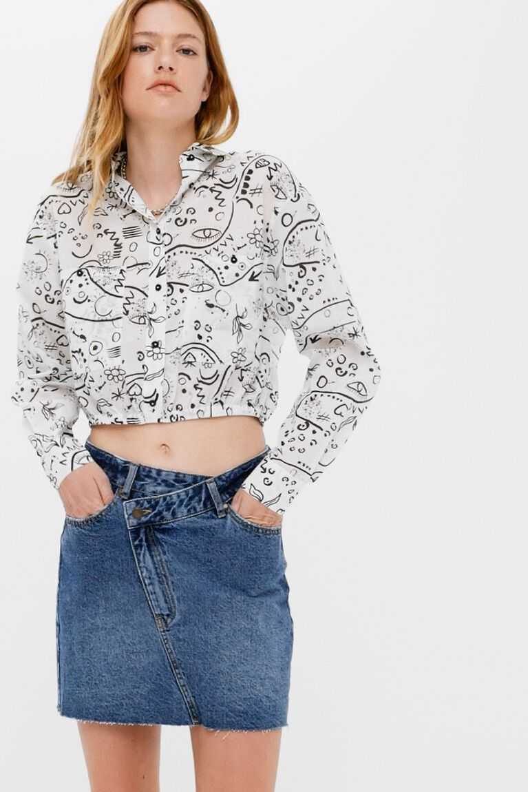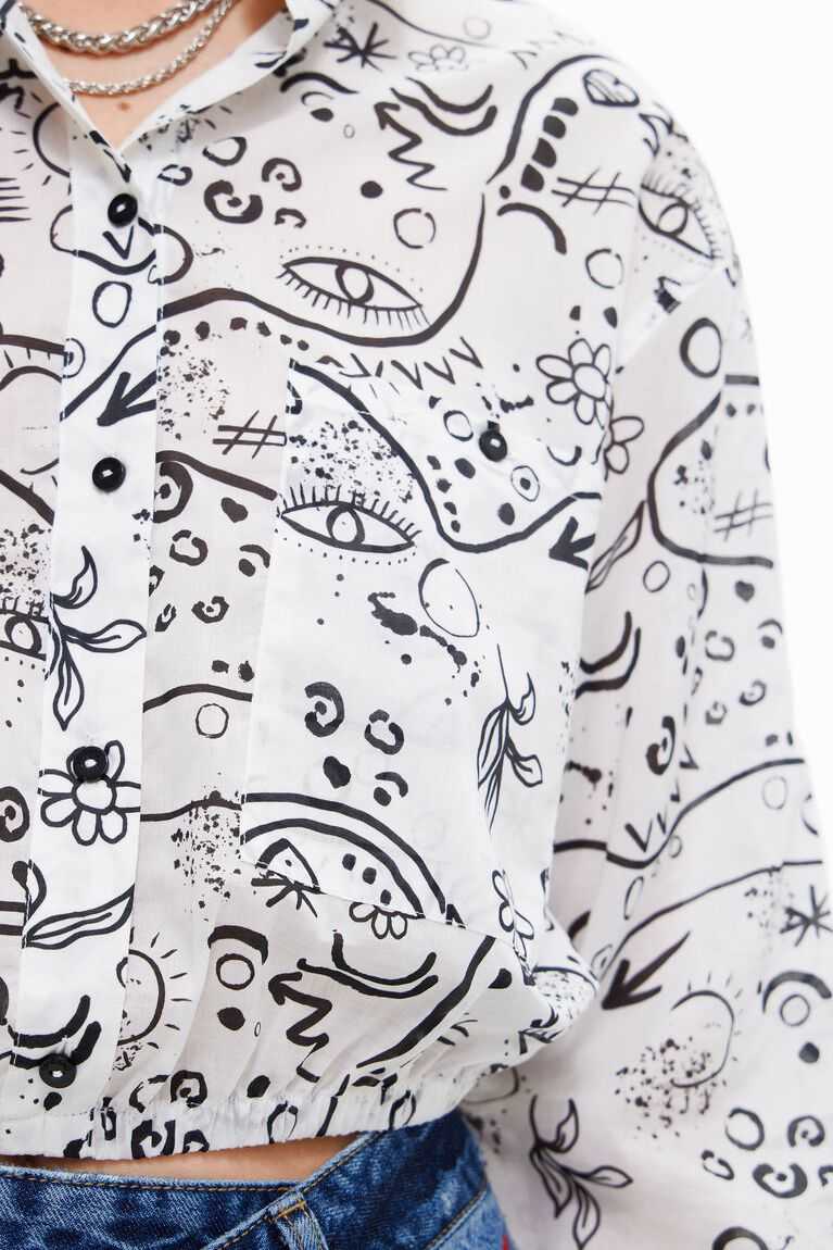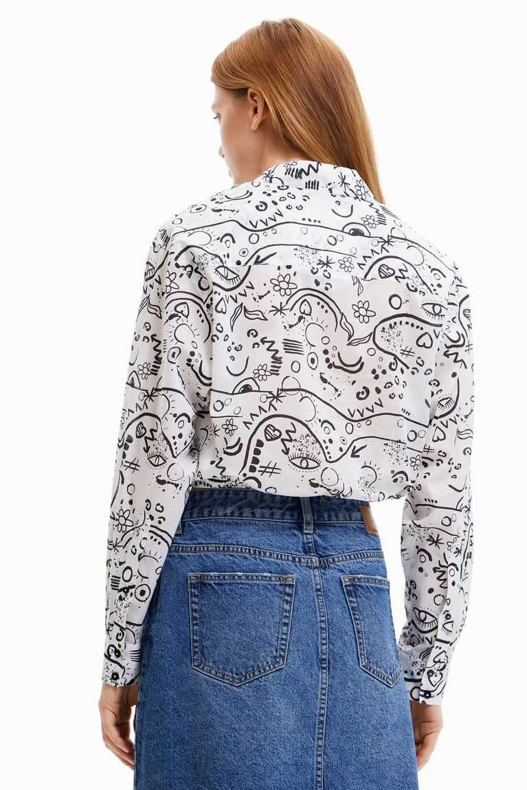 This short, long-sleeve shirt is printed with a hand-painted illustration effect. The elasticated waist and loose fit make it super comfortable and easy to wear.
