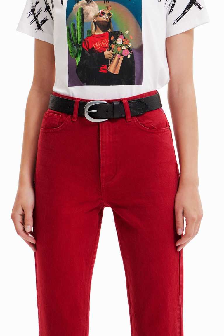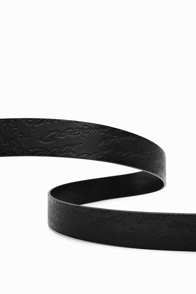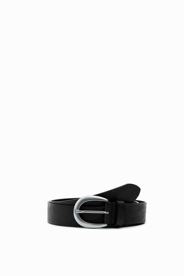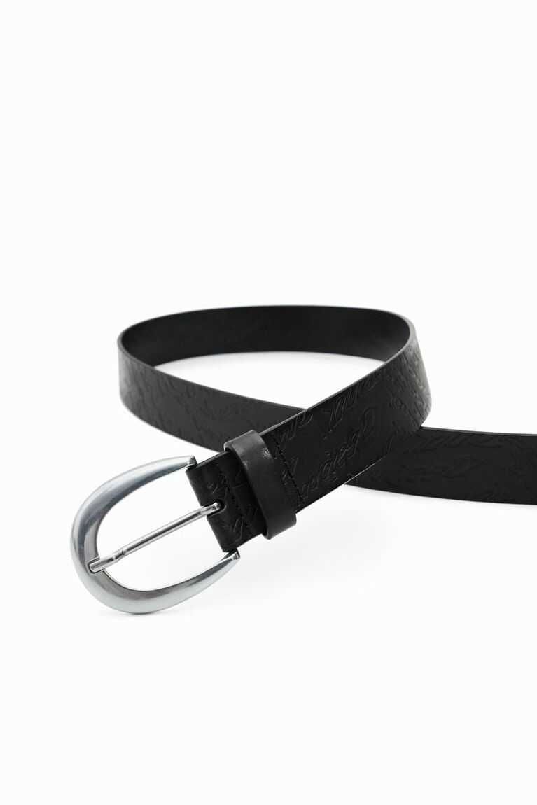 Leather belt with an irregular silver-coloured buckle and psychedelic Desigual logos engraved all over the outer side.