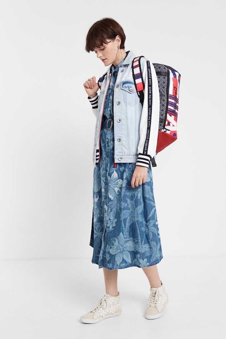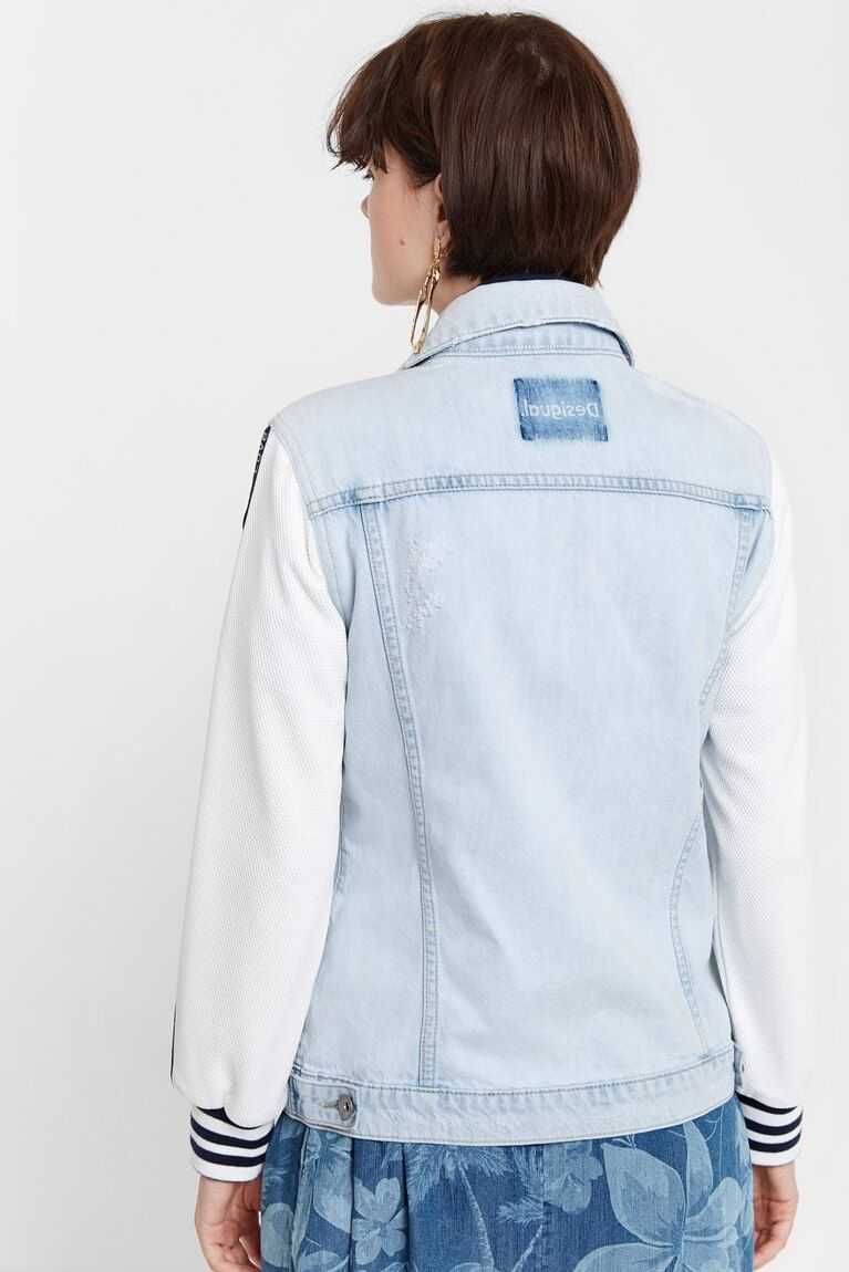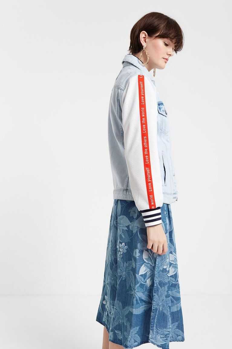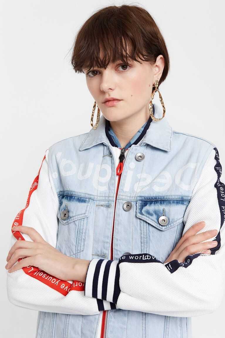 When something combines well, the results will always be amazing. Like the results achieve by the design of this patch jacket that combines the jean fabric aesthetic with sporty plush sleeves with bands of LOVE messages and the Desigual logo on the chest. Wear it in your everyday life.