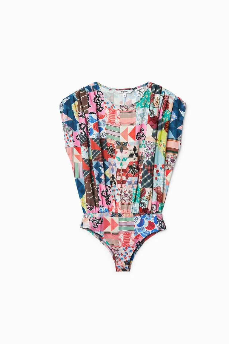 This bodysuit with an oversized top from the Johnson Hartig collection features a hypnotic mosaic of prints. Made from a pleasing eco-friendly fabric.