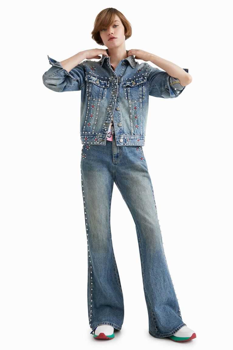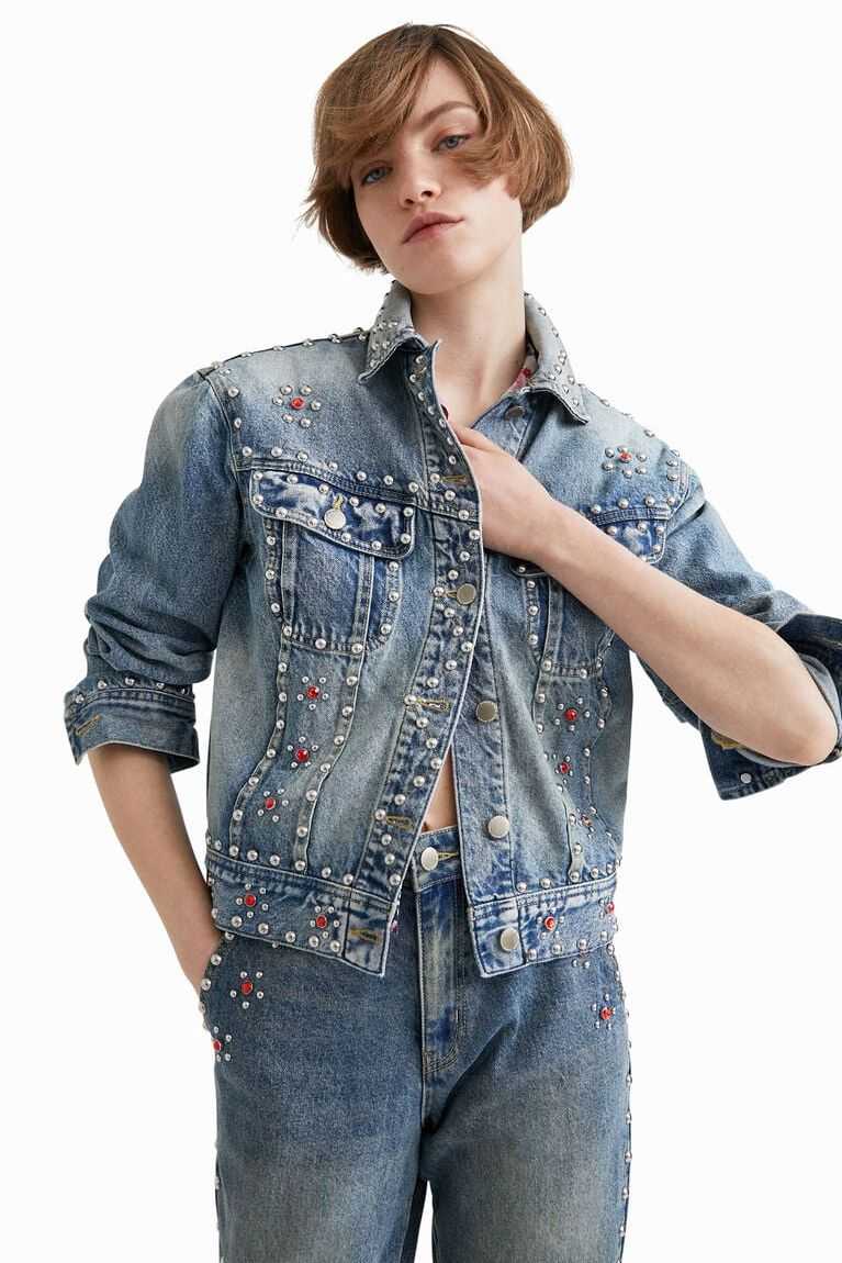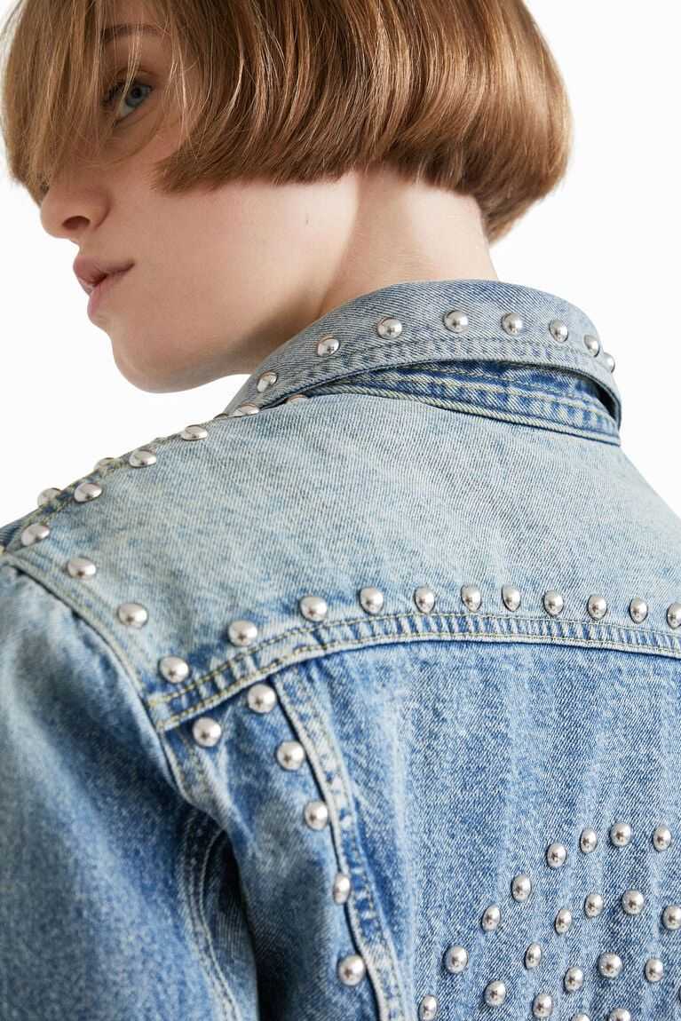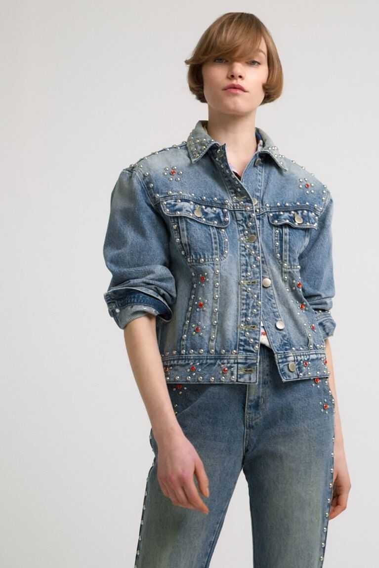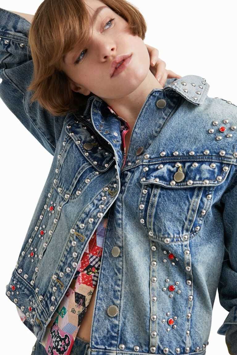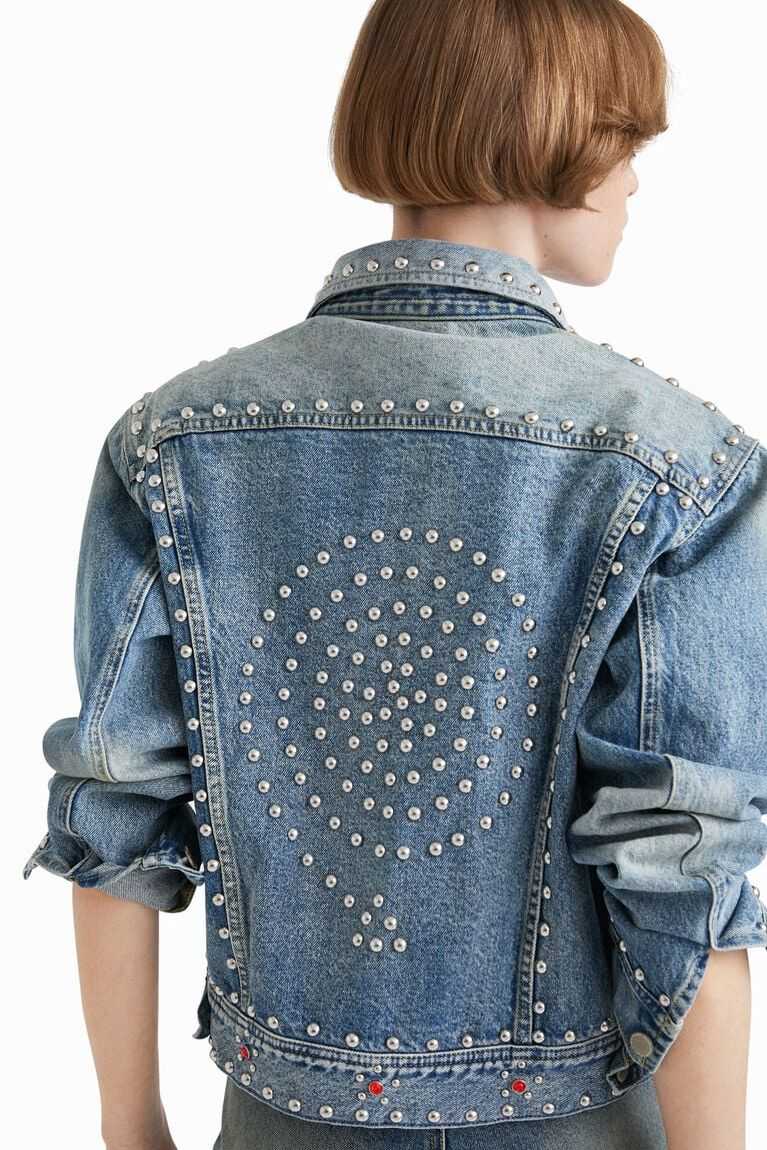 This vintage-style denim jacket with silver and red studs and a washed effect is designed by Johnson Hartig and made from more sustainable cotton. Pair it with the matching jeans or miniskirt.