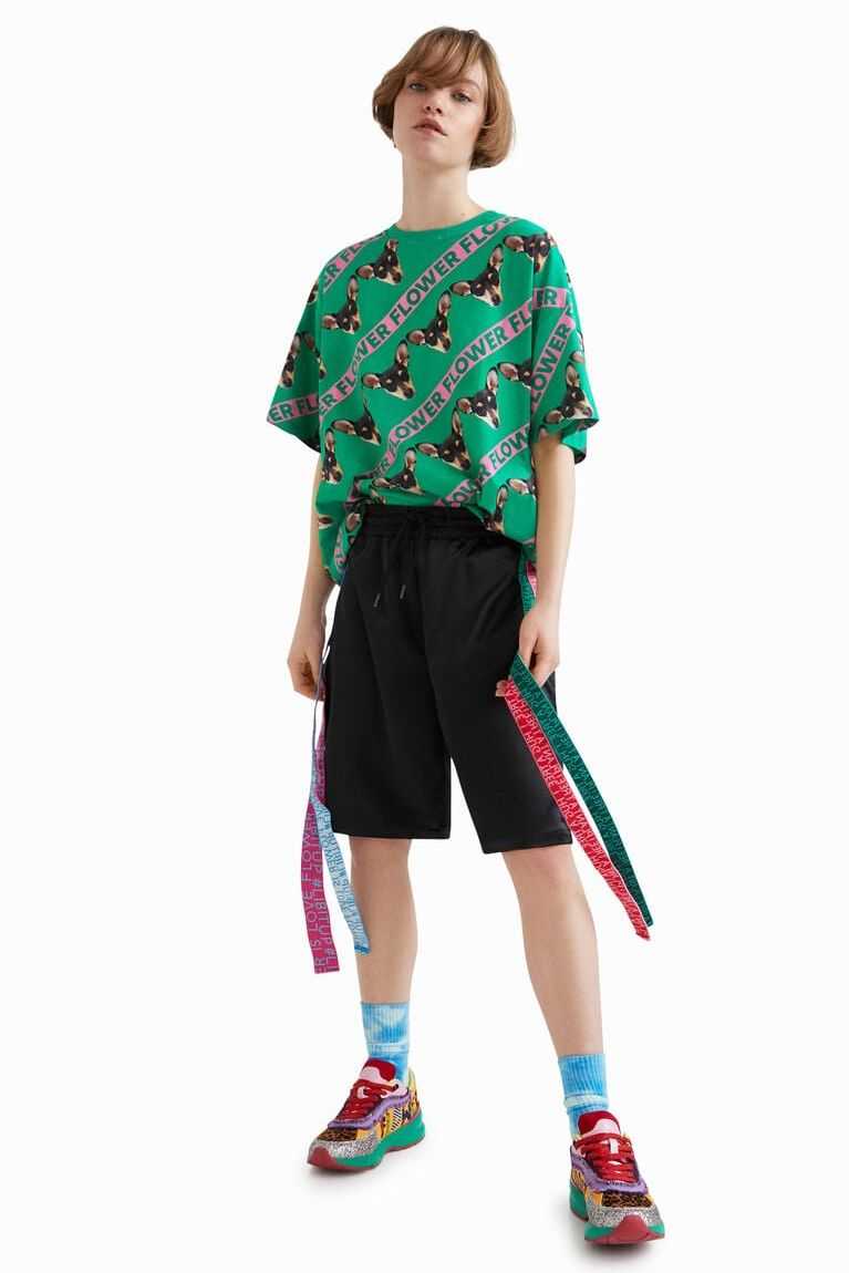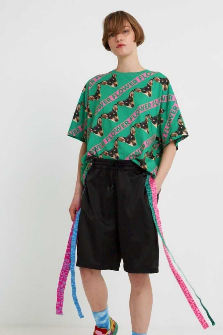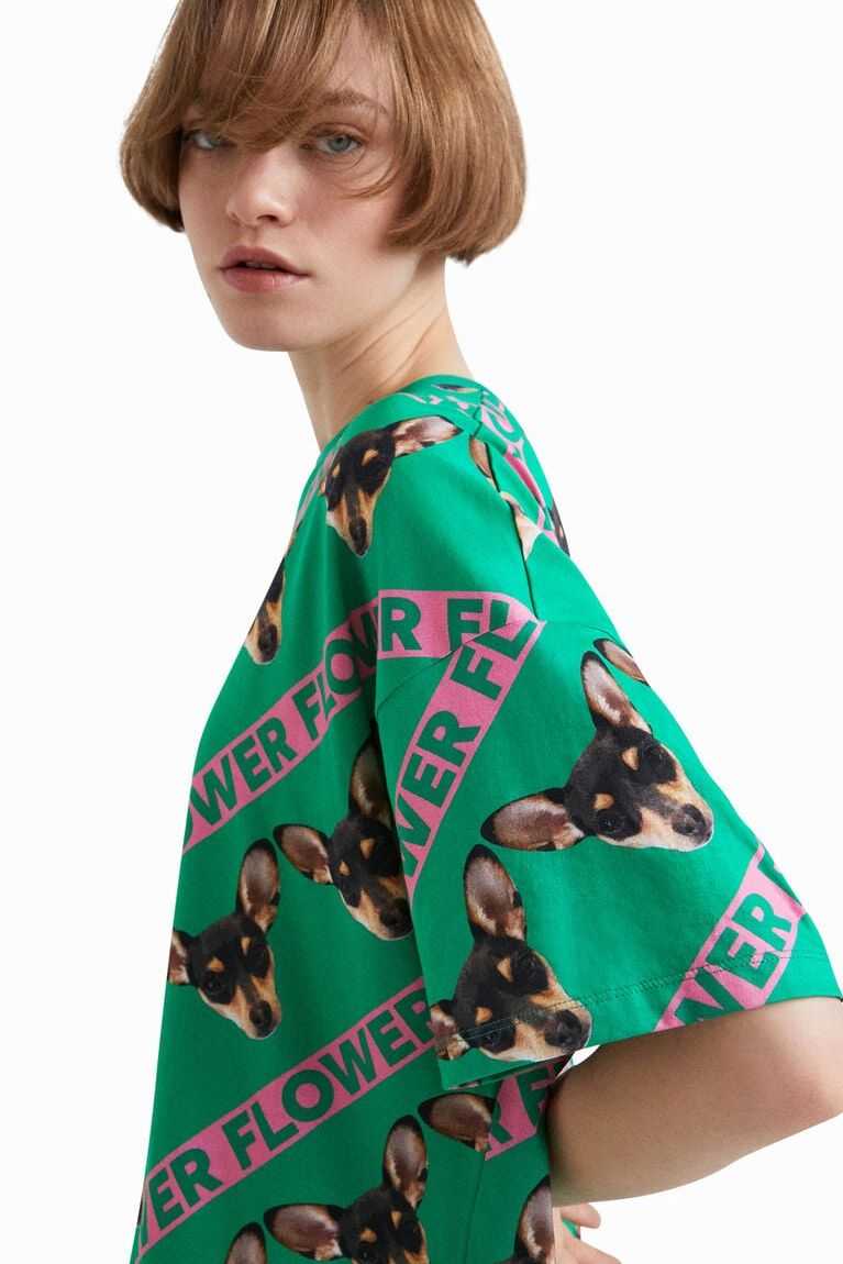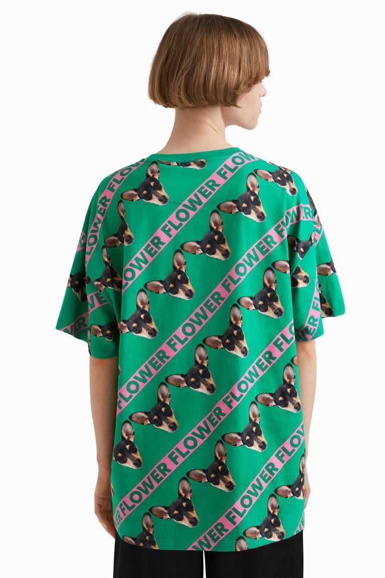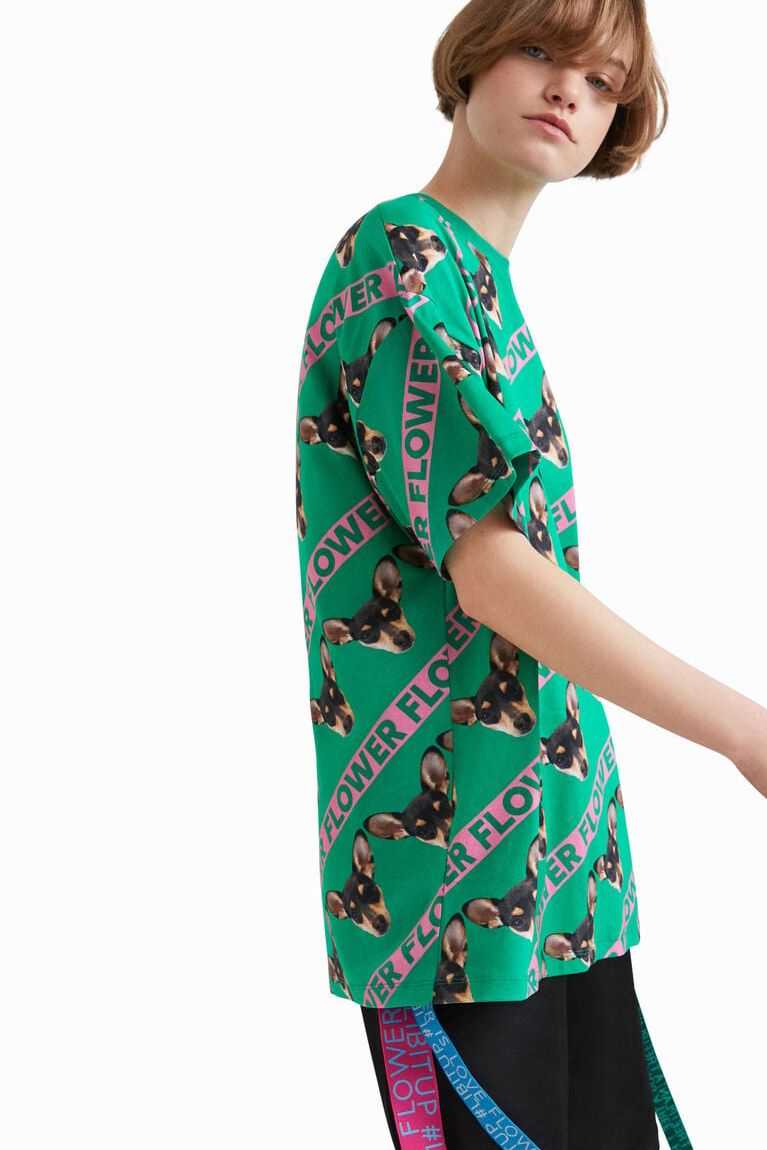 This unisex, long, oversize T-shirt is dedicated to Flower, the little dog of designer Johnson Hartig, the creator of this collection. Made from more sustainable cotton.