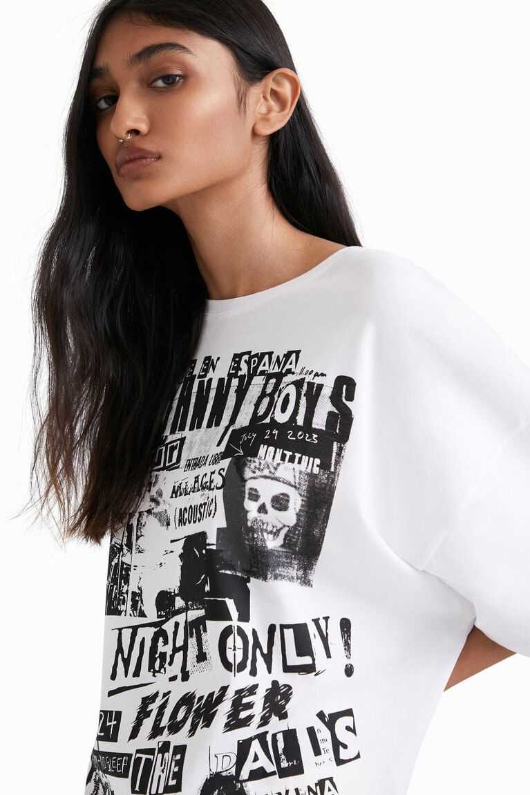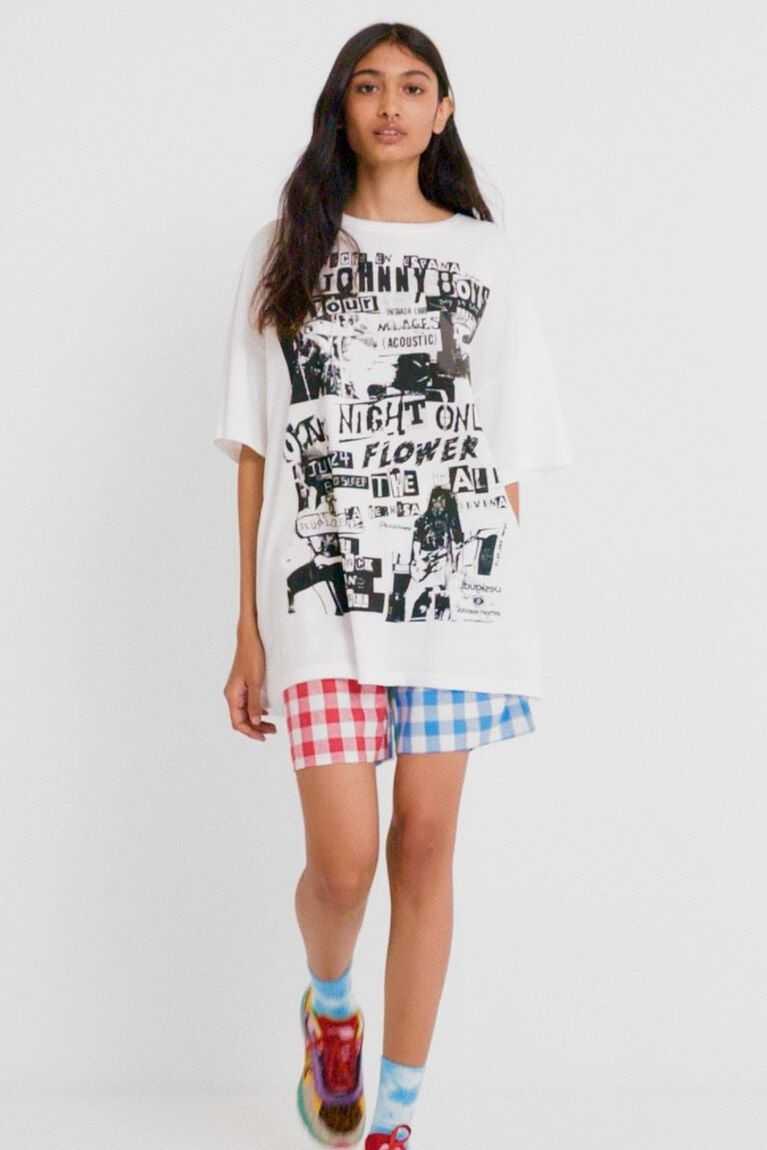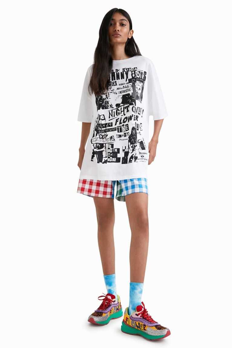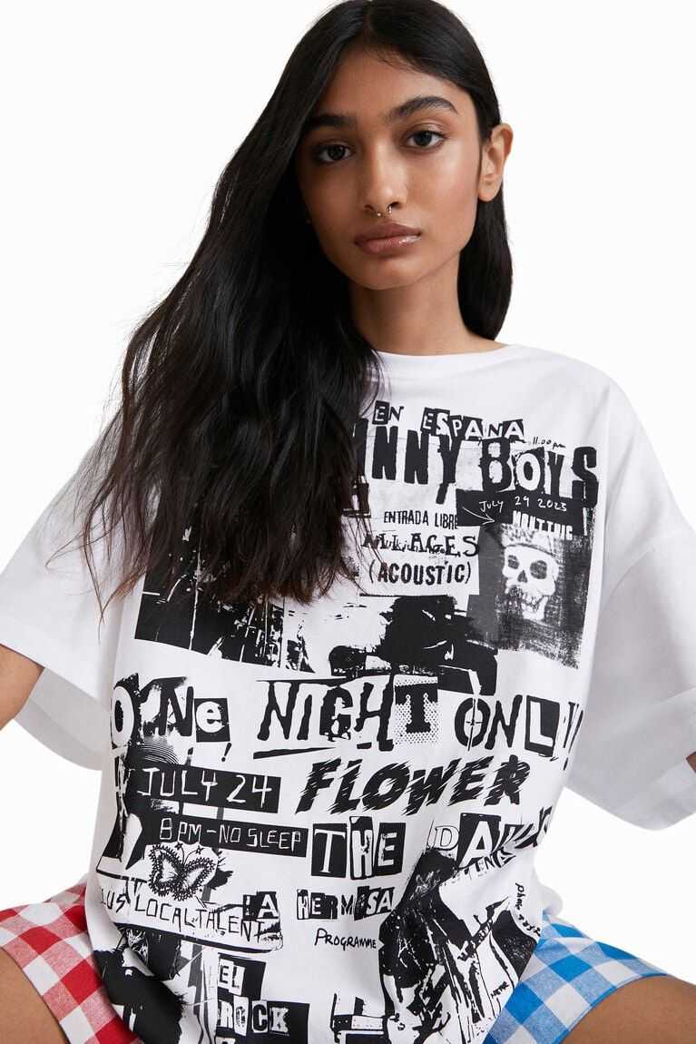 This unisex, long, oversized T-shirt features a front print with punk rock-inspired newspaper clippings and is part of the collection designed by Johnson Hartig. Made from more sustainable cotton.