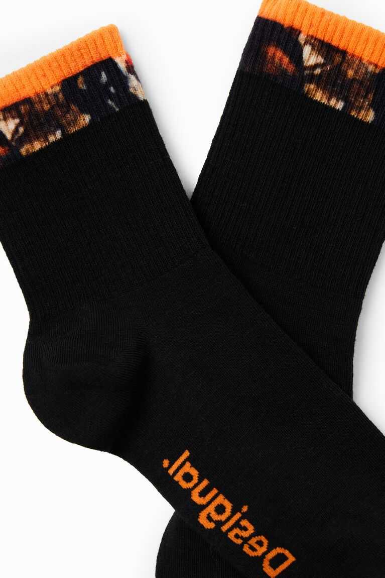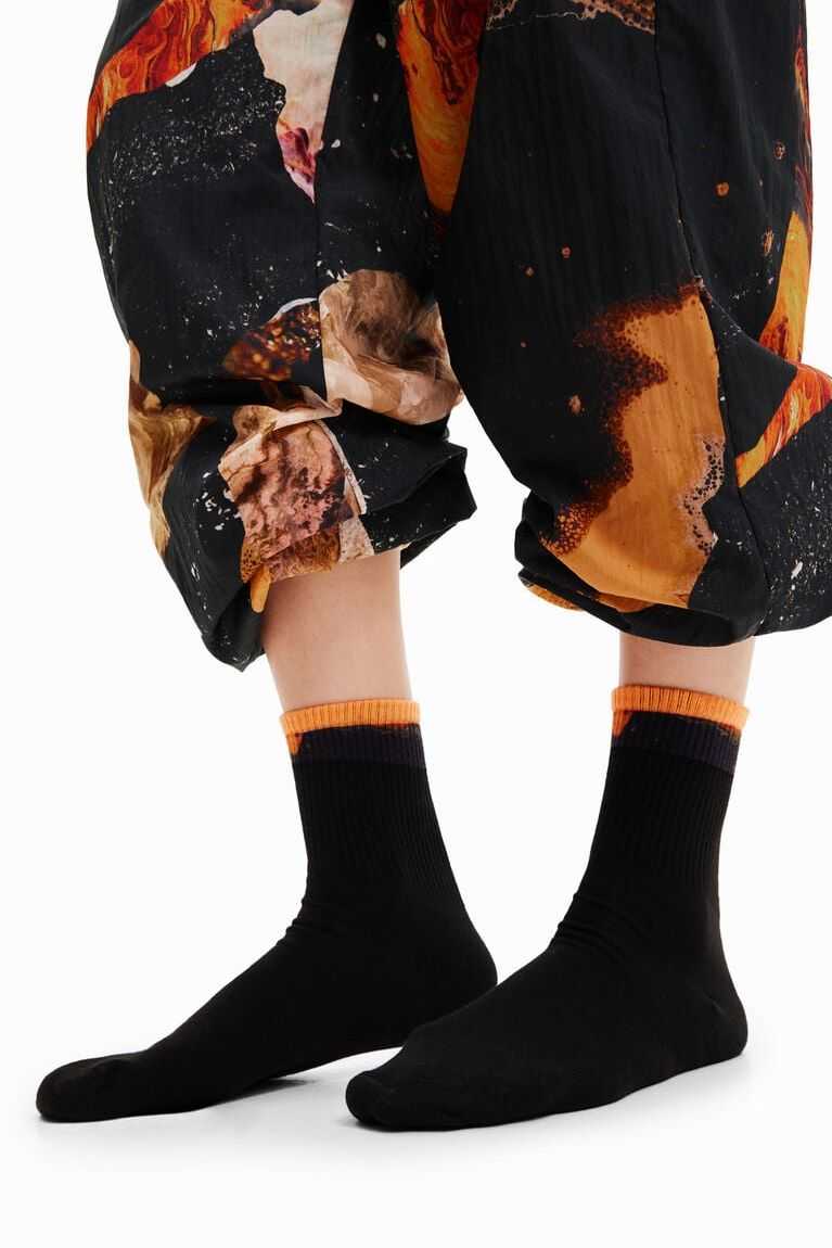 Short single-colour socks with a mineral print detail and contrasting line at the top.