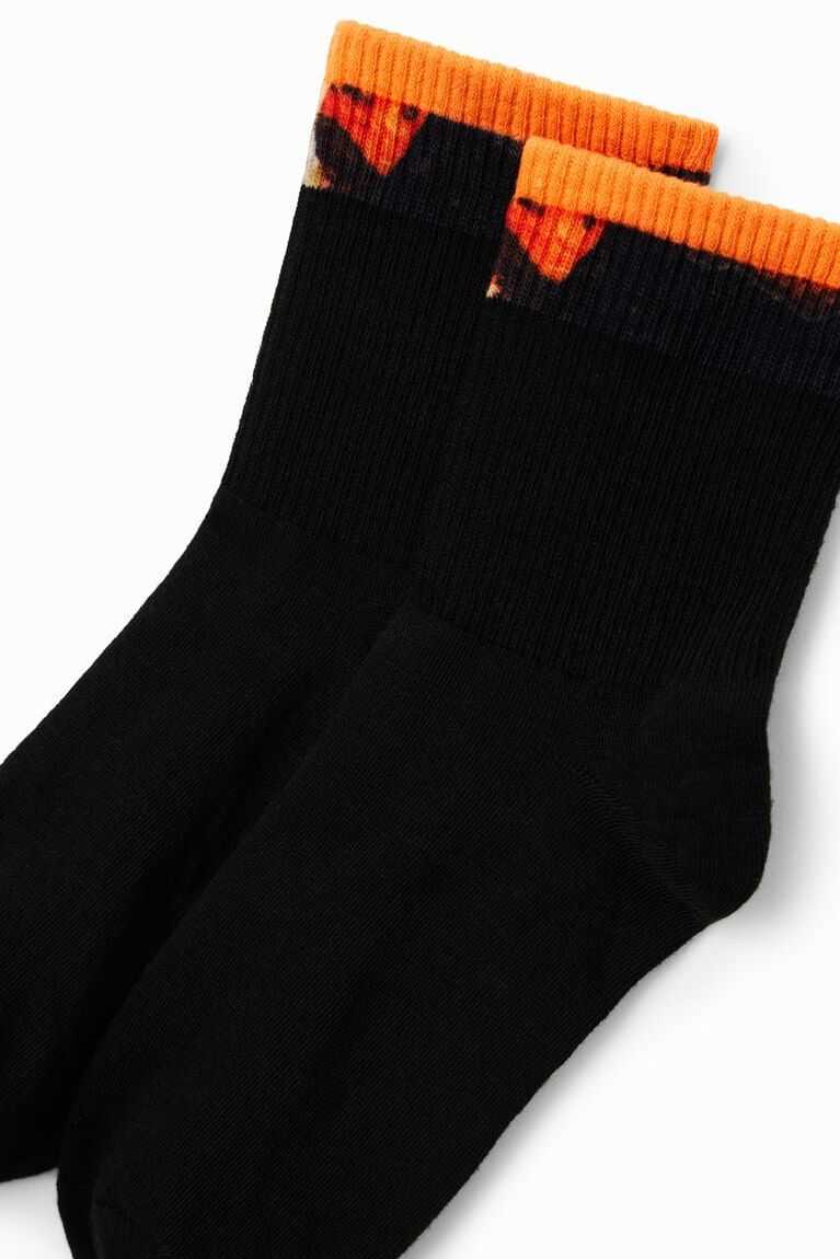 Short single-colour socks with a mineral print detail and contrasting line at the top.