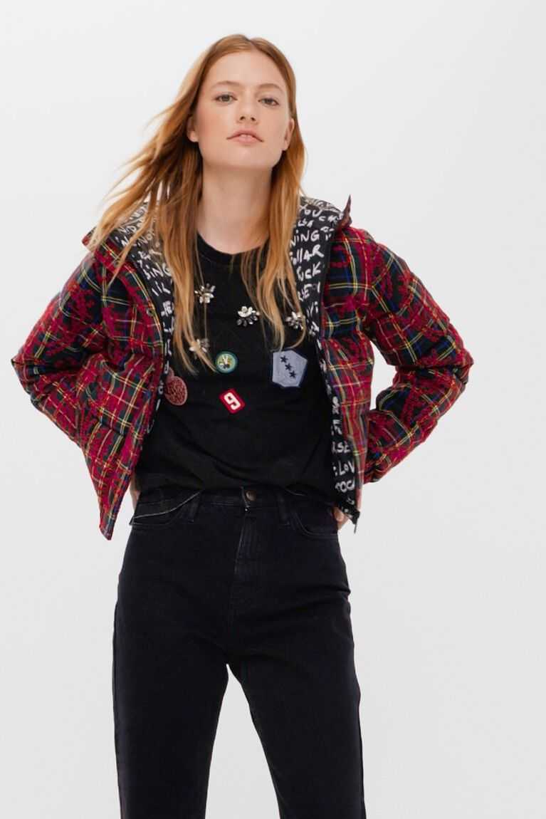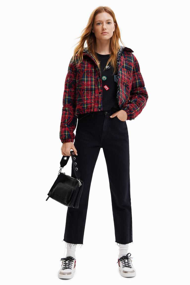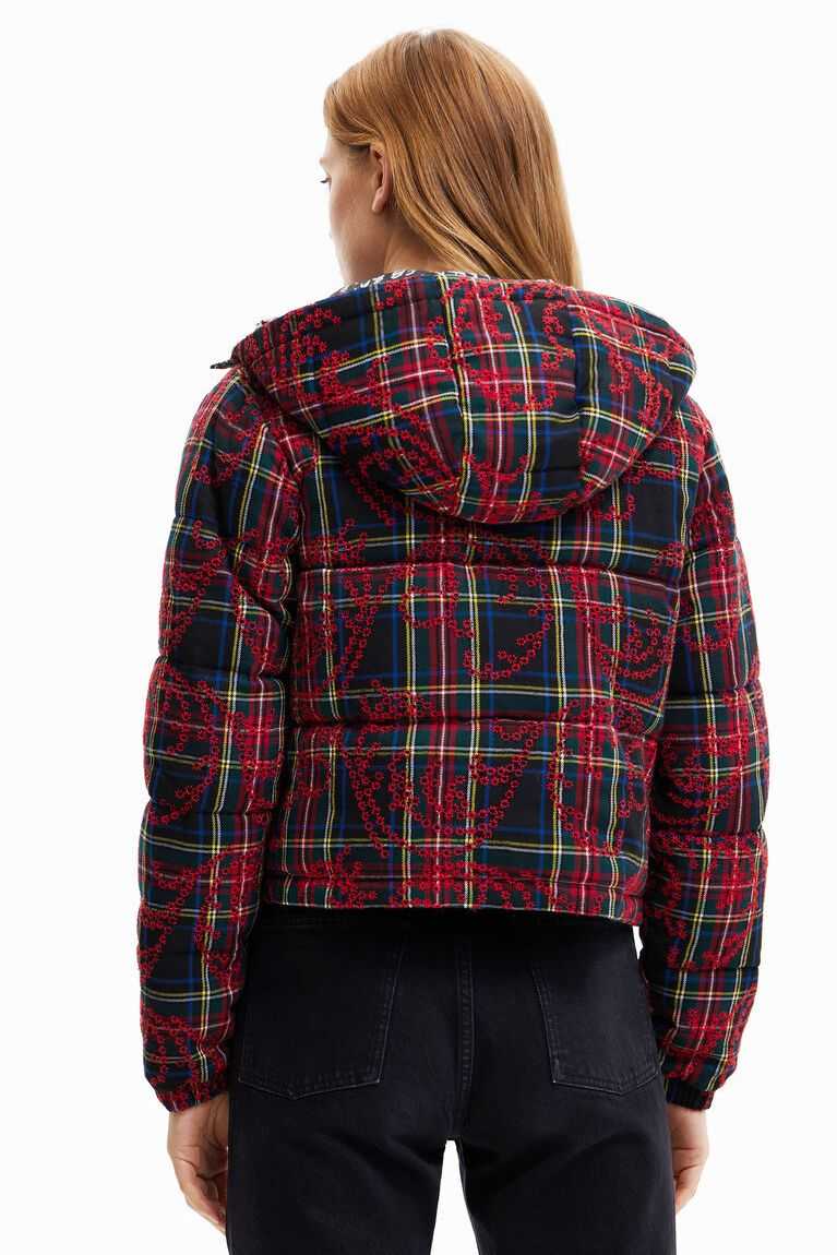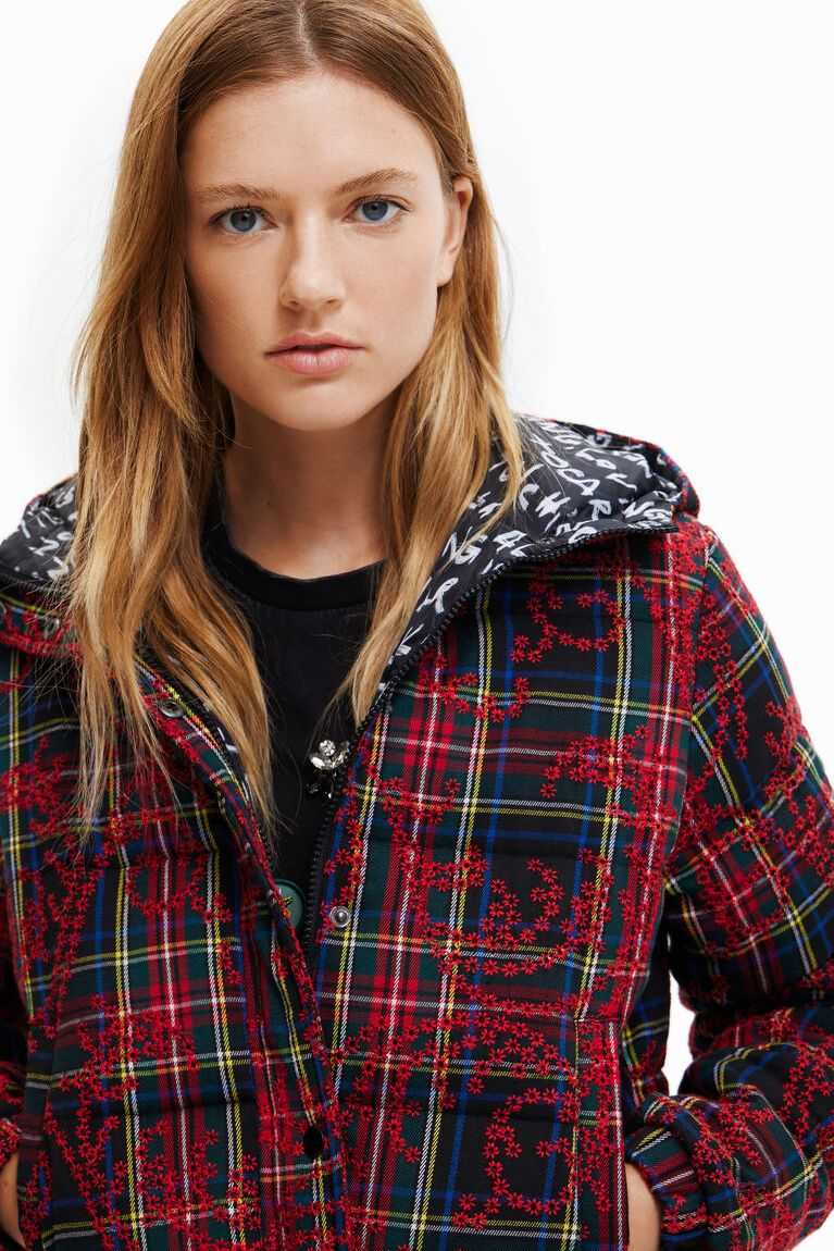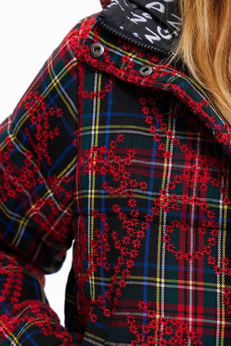 The tartan print takes centre stage on this short quilted jacket with delicate flowers in Swiss embroidery that create an embossed effect. With a hood and elasticated cuffs.