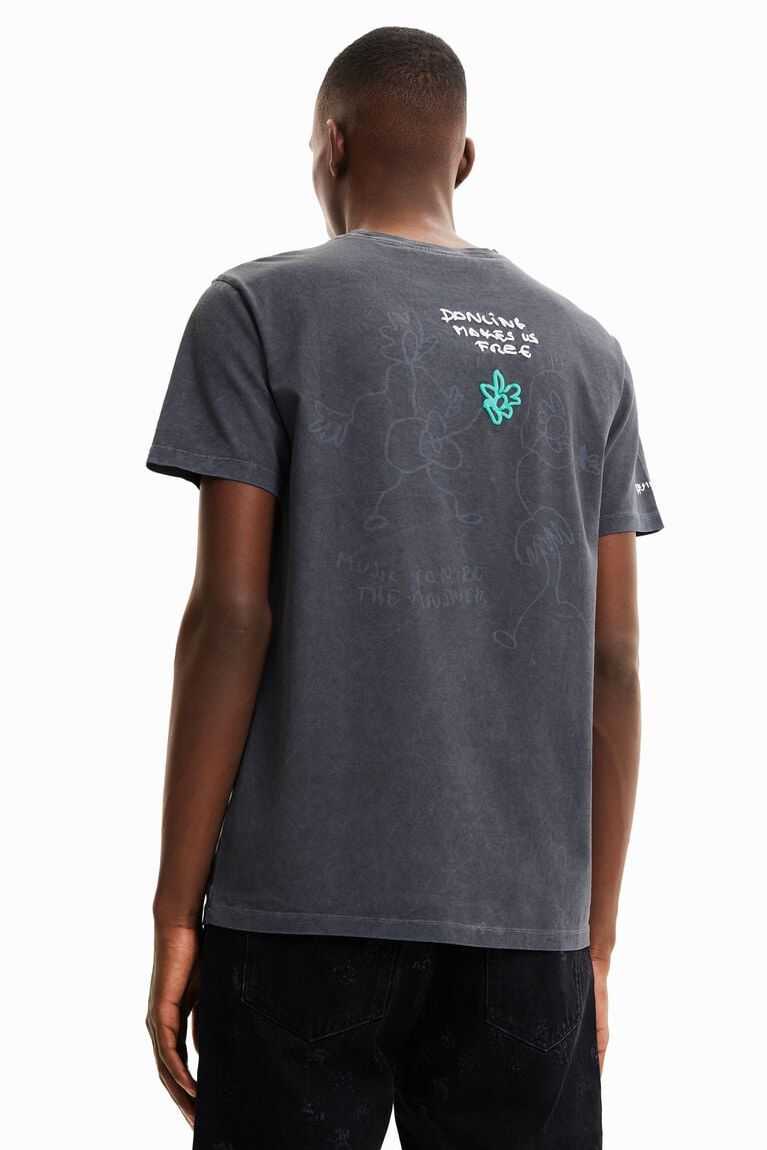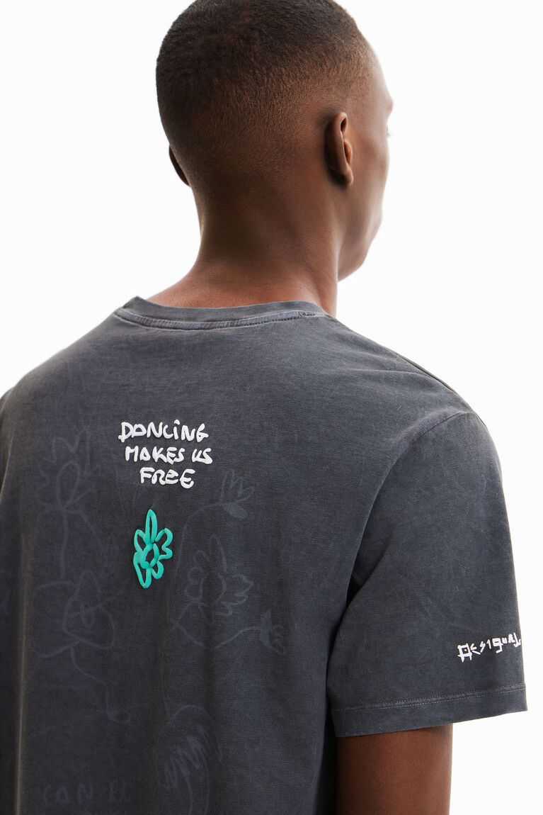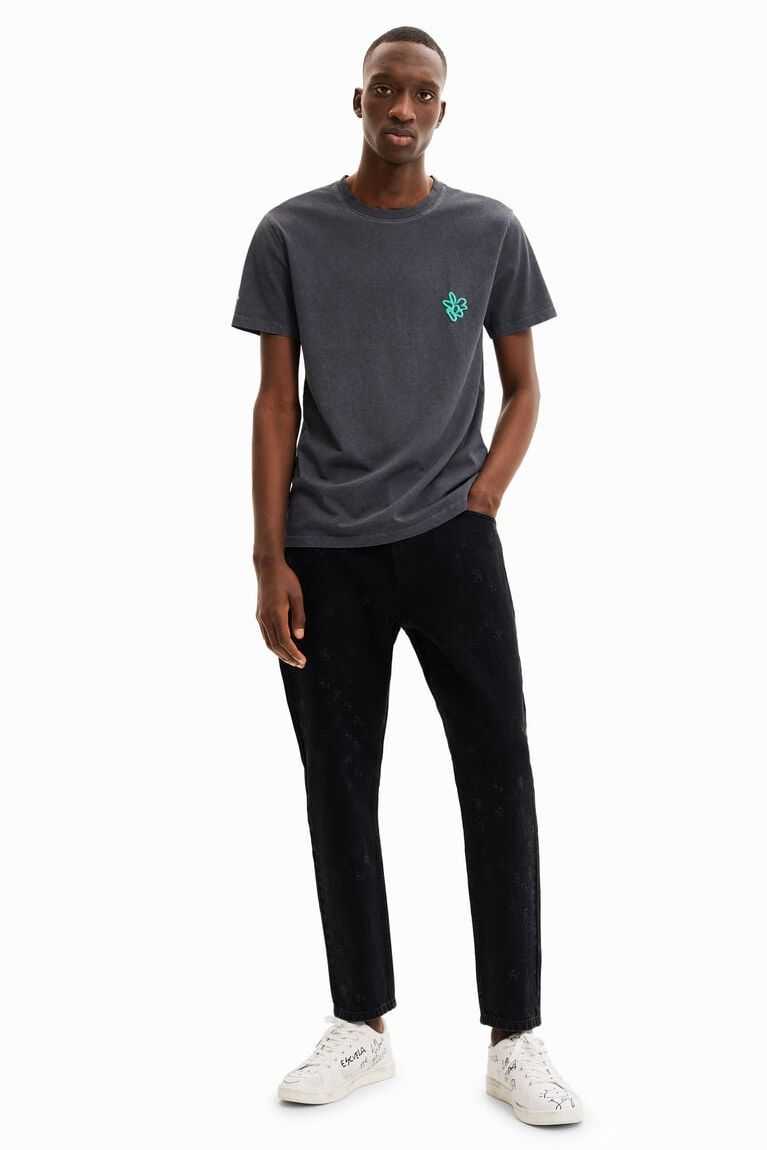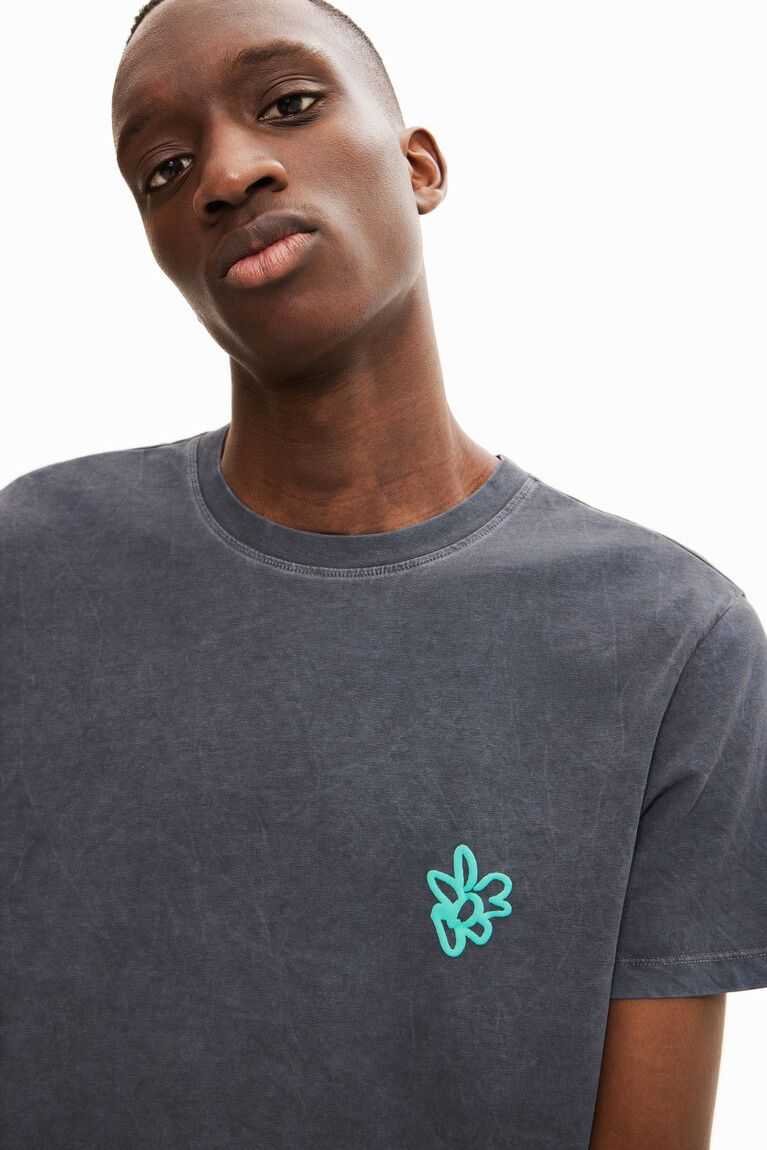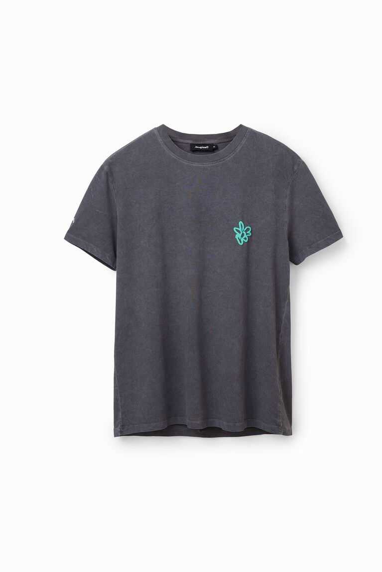 A short-sleeve, regular-fit T-shirt made from cotton fabric with a washed effect. Featuring a small flower in a high-density print and messages on the back.