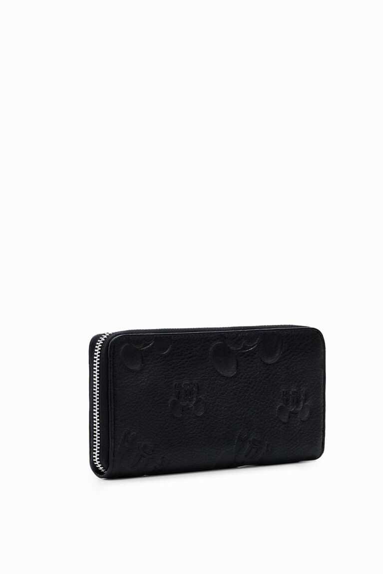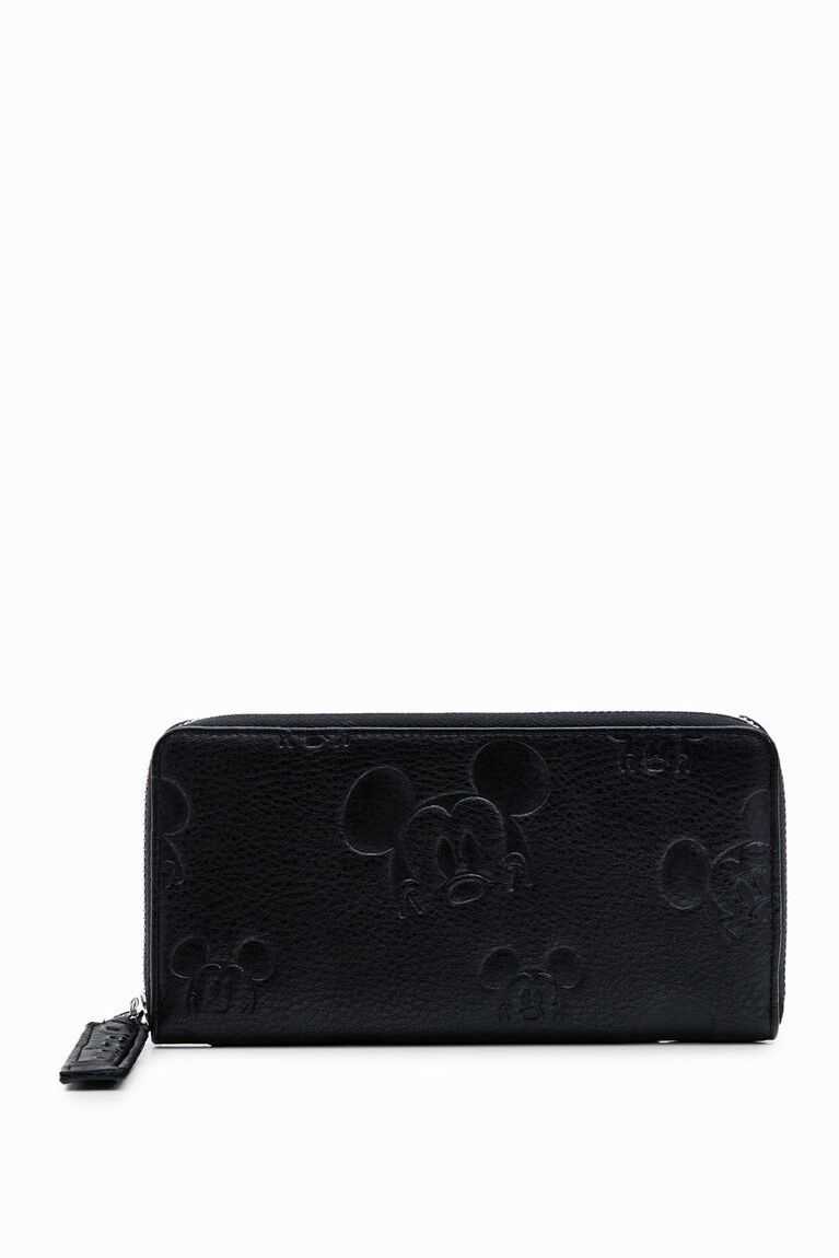 A large rectangular wallet with tone-on-tone embossed silhouettes of Disney's Mickey Mouse.