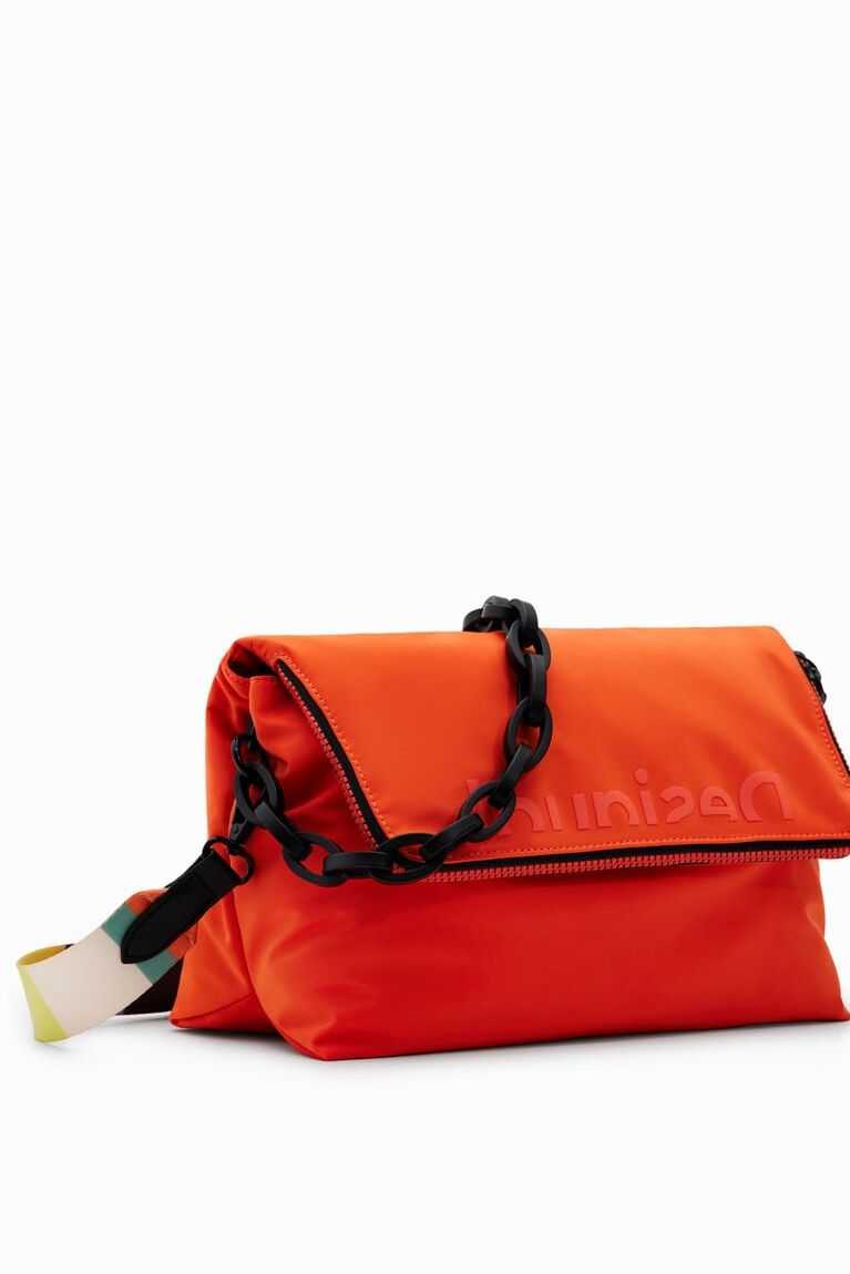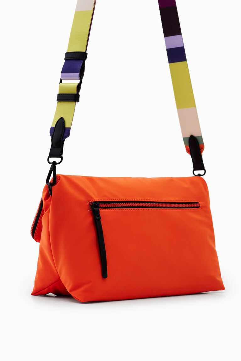 A very light crossbody bag made from recycled fibres with a soft feel. Features a flap and magnet closure. In a plain colour with two detachable straps.
