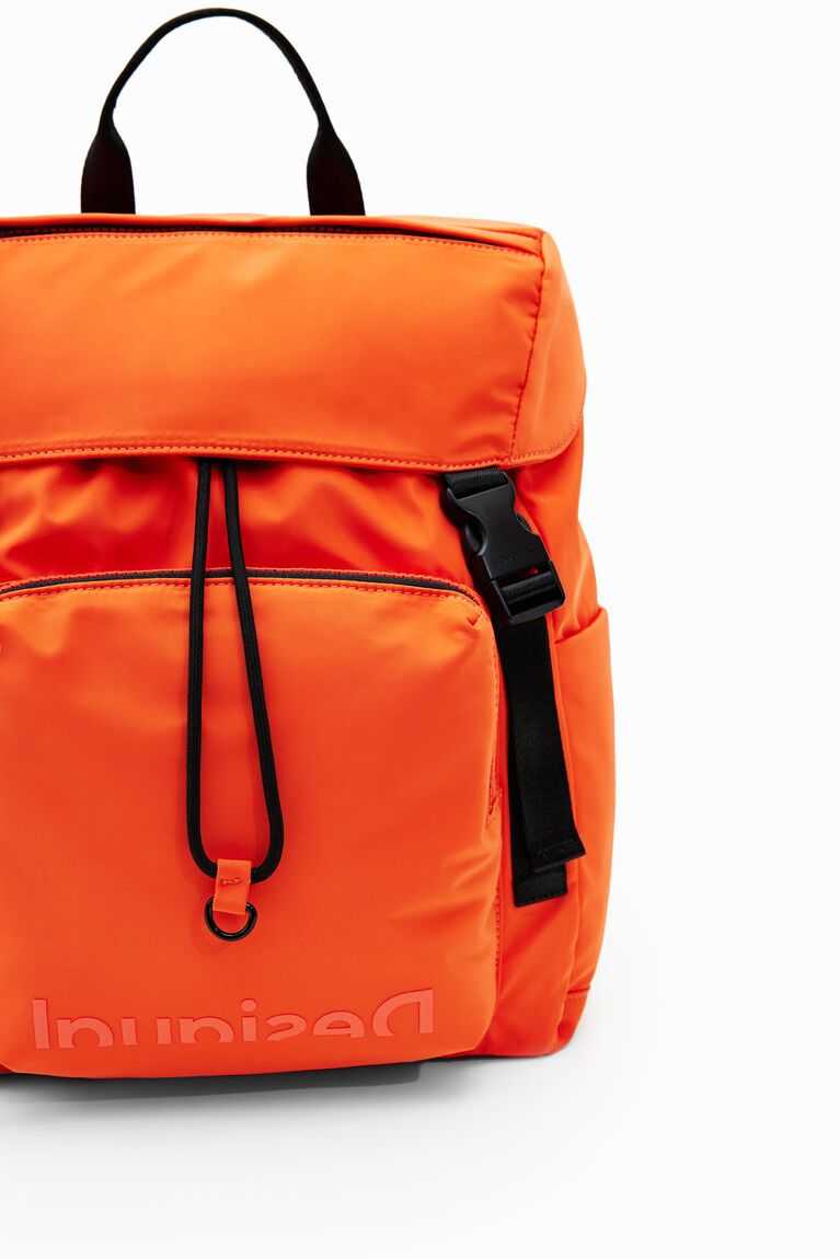 A large backpack made from recycled polyester with a large capacity and incredible lightness. With clips and zip fastening and multiple pockets.