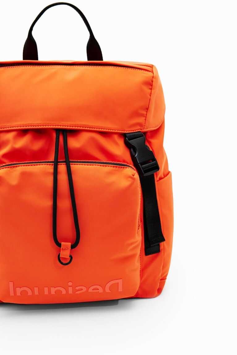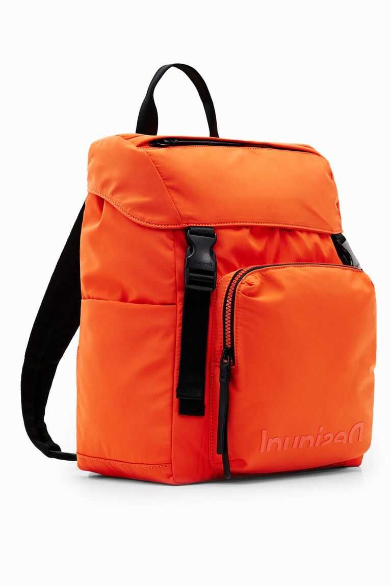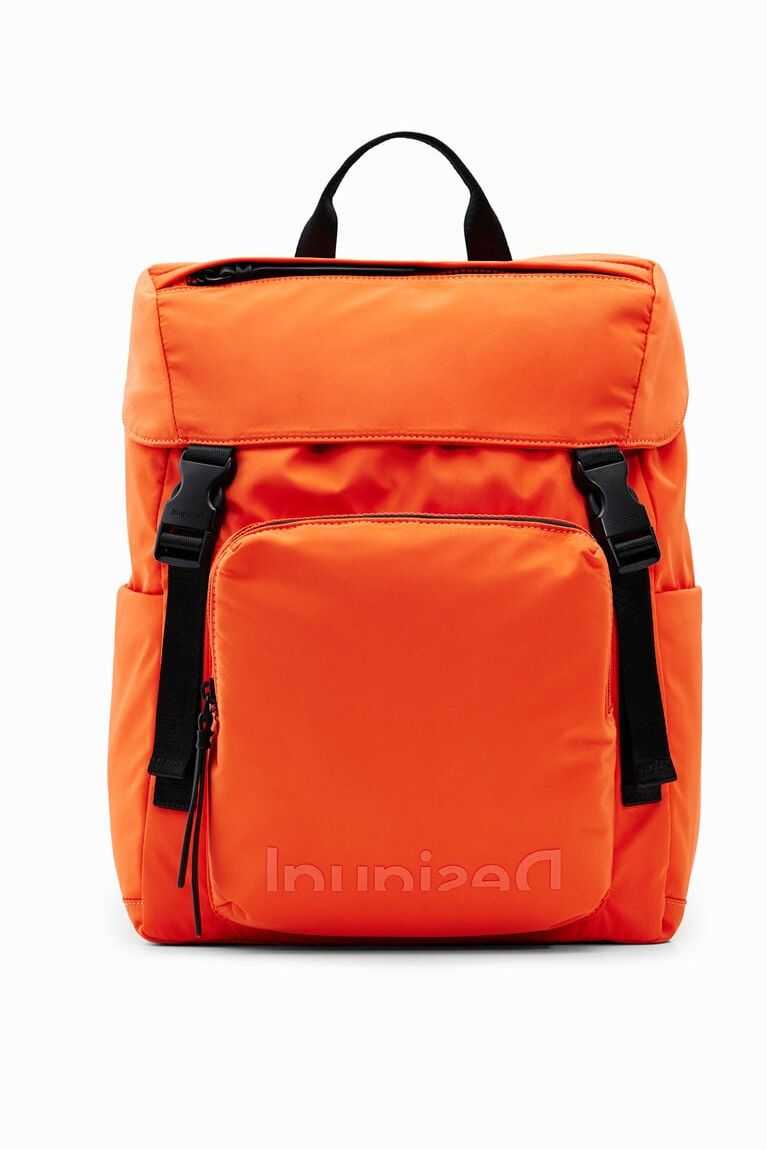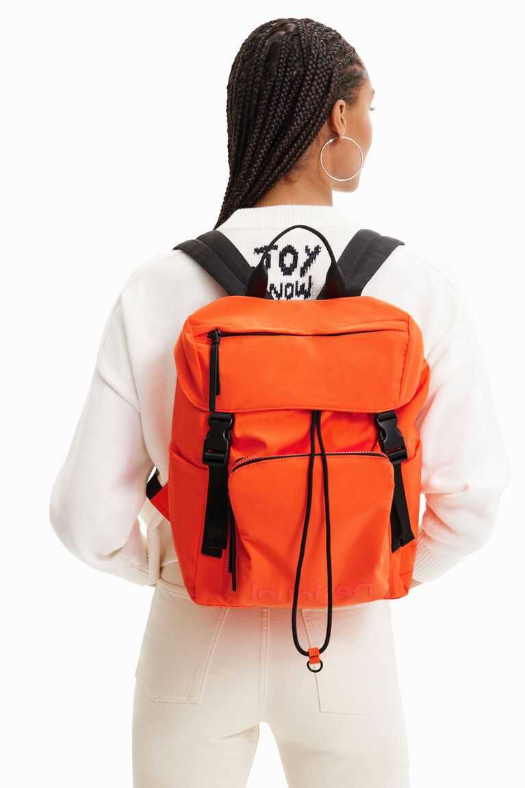 A large backpack made from recycled polyester with a large capacity and incredible lightness. With clips and zip fastening and multiple pockets.