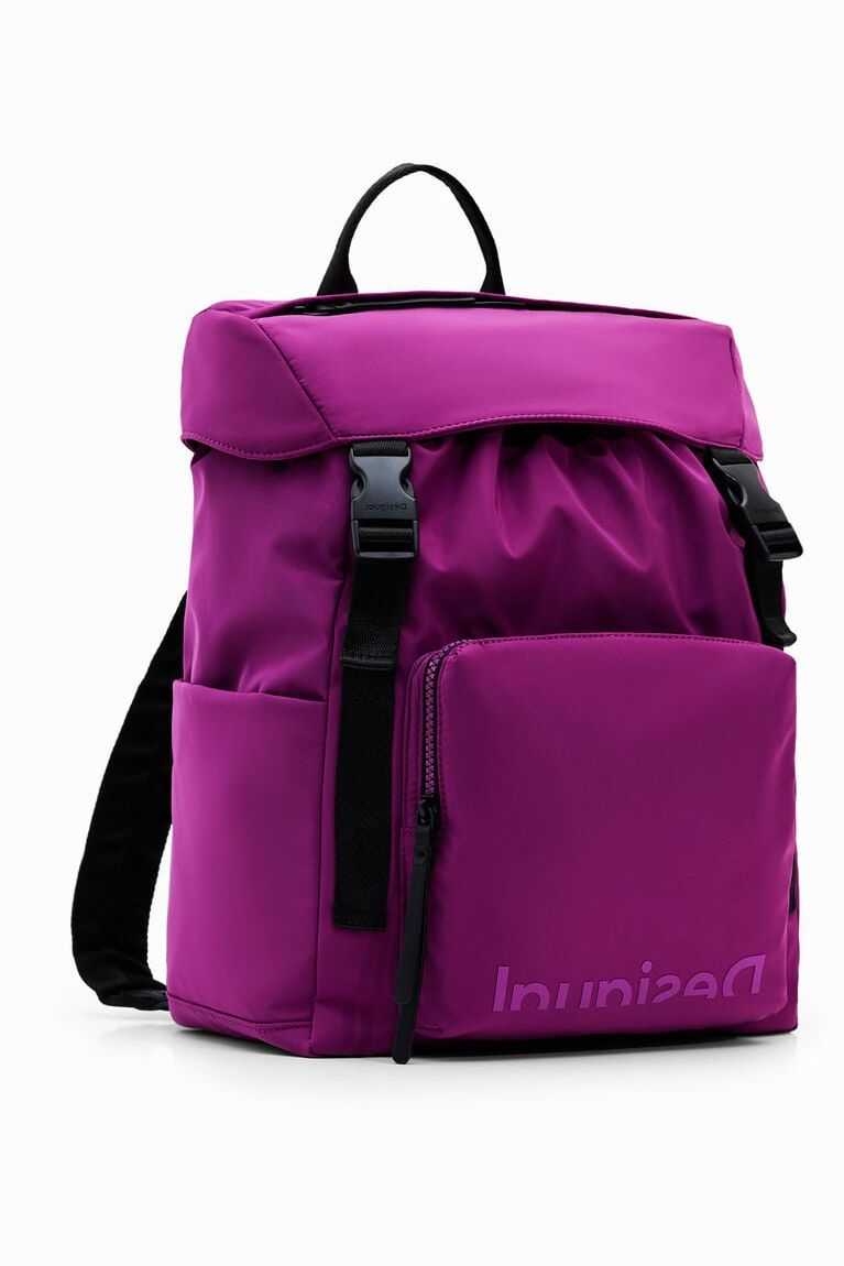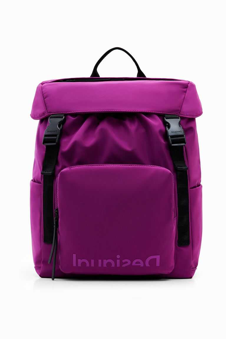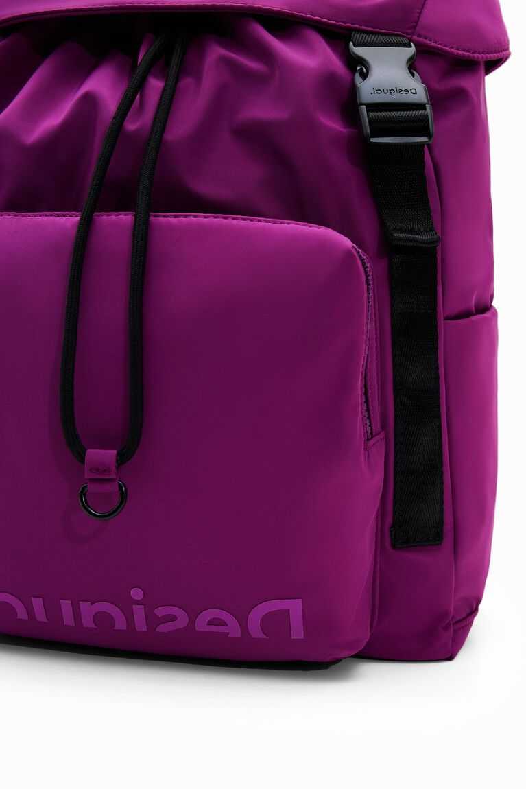 A large backpack made from recycled polyester with a large capacity and incredible lightness. With clips and zip fastening and multiple pockets.