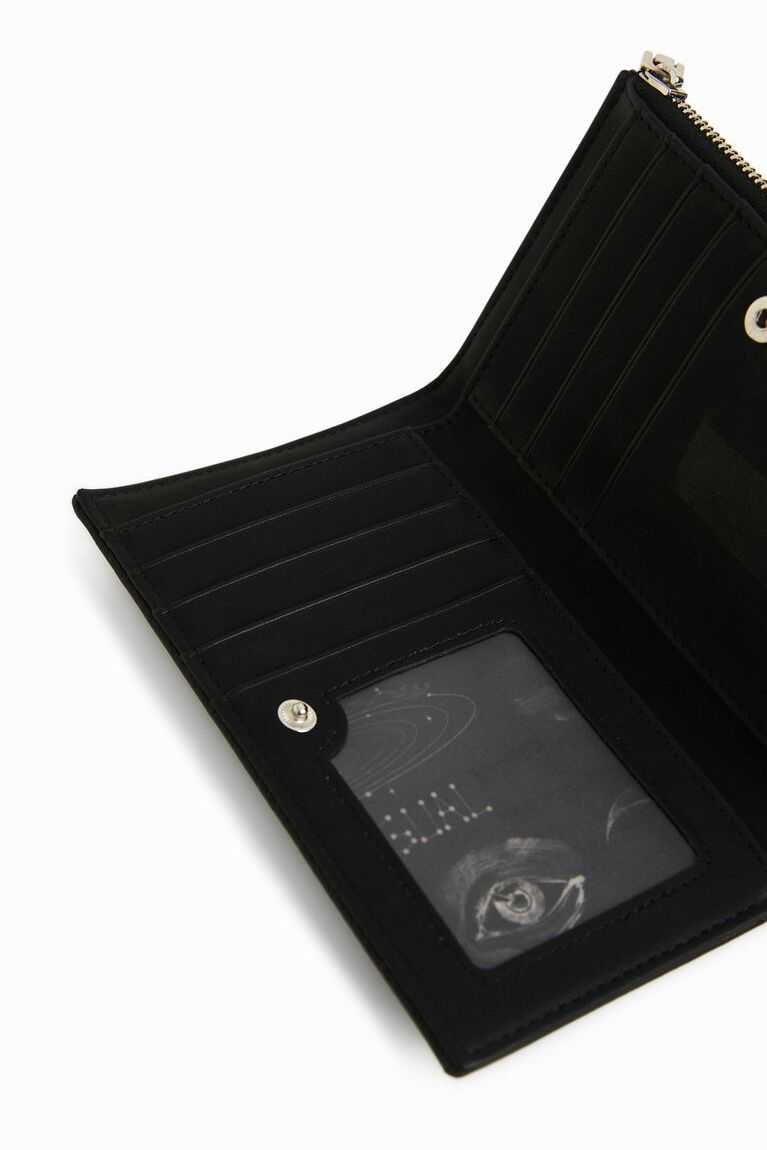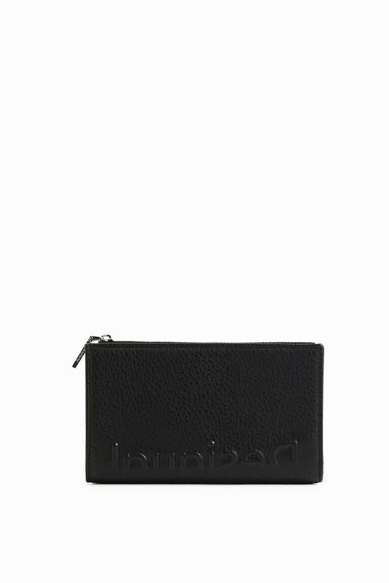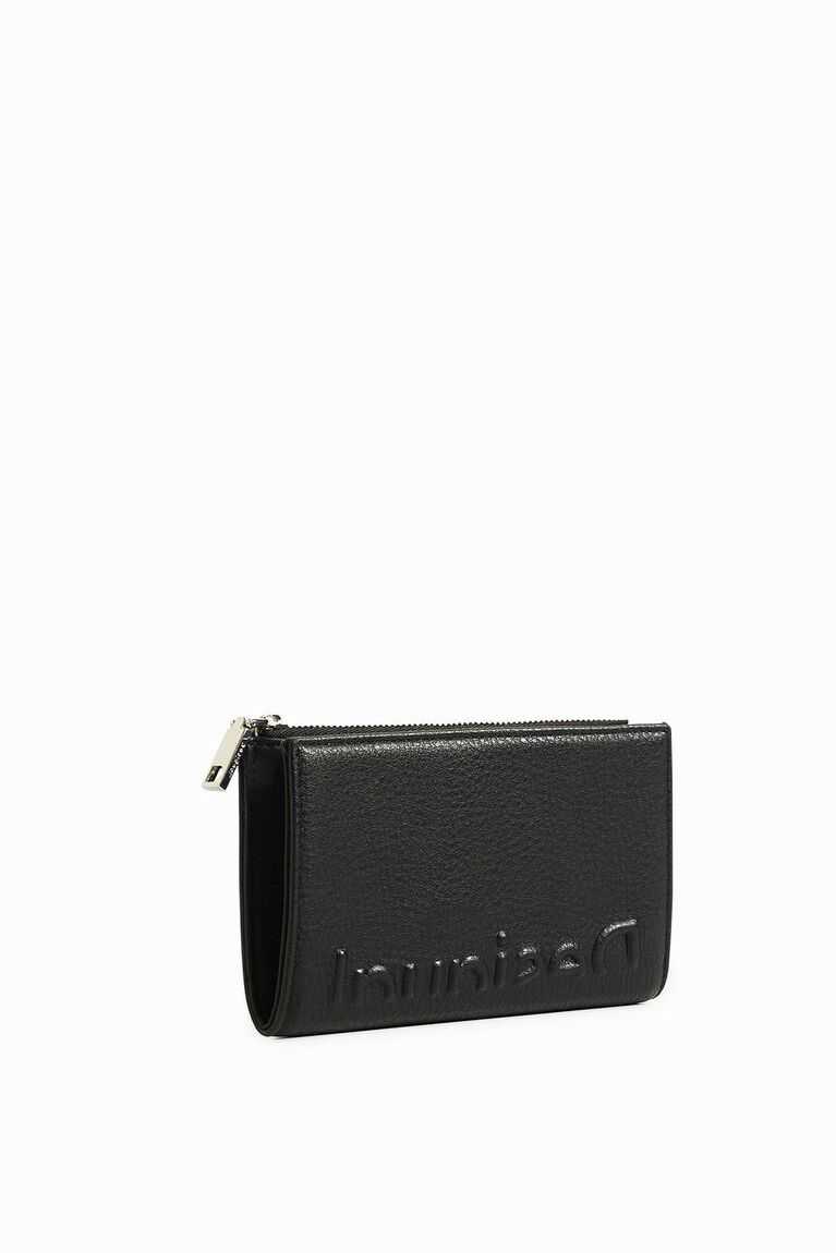 Bet on the minimalism of this long coin purse in leather effect fabric, which on the front shows a Desigual logo in relief. It includes multiple spaces for coins, banknotes and cards.