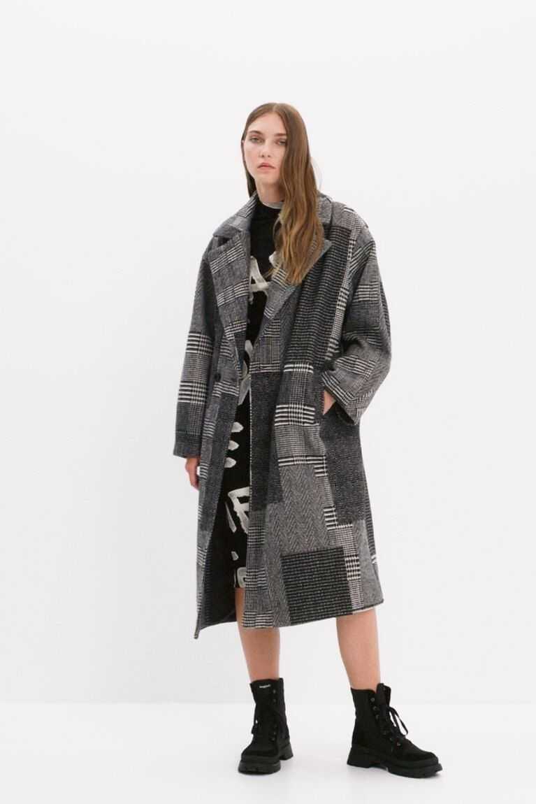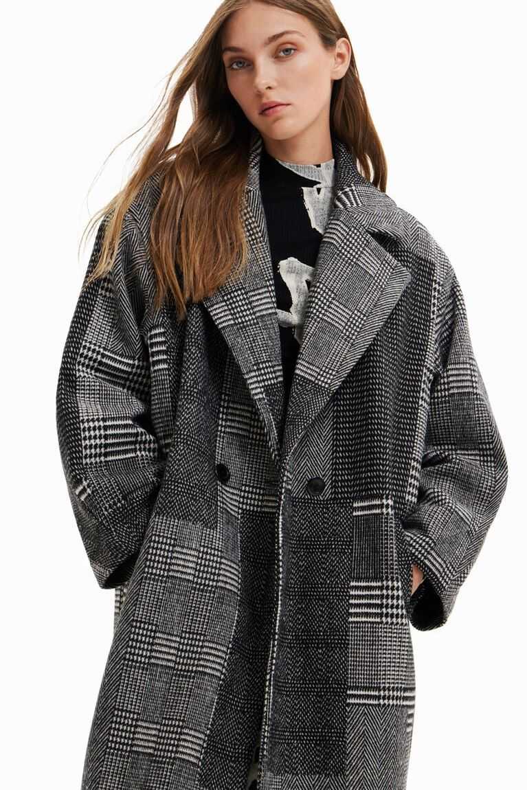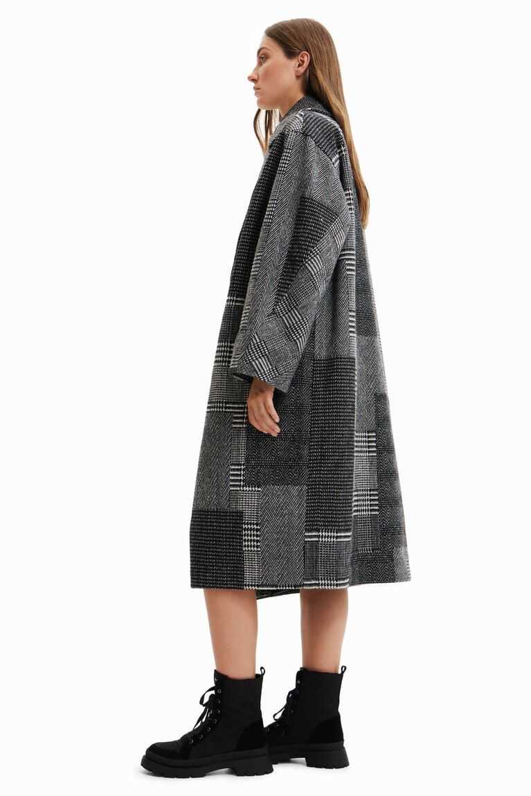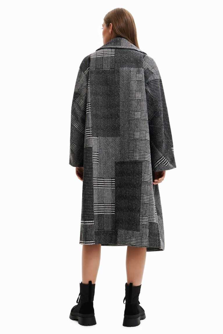 This long wool coat in a patchwork of plaid fabrics is a reinterpreted classic. The oversize, masculine cut with dropped shoulders accentuates its casual style.