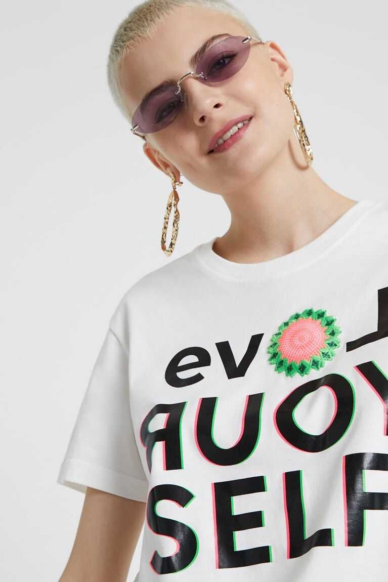 Express yourself! Be true to yourself and to your personality! Love yourself! With this white T-shirt and its frontal print with the message LOVE YOURSELF of the brand, you'll radiate energy with each step you take. A classic T-shirt for everyday life.