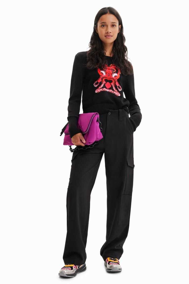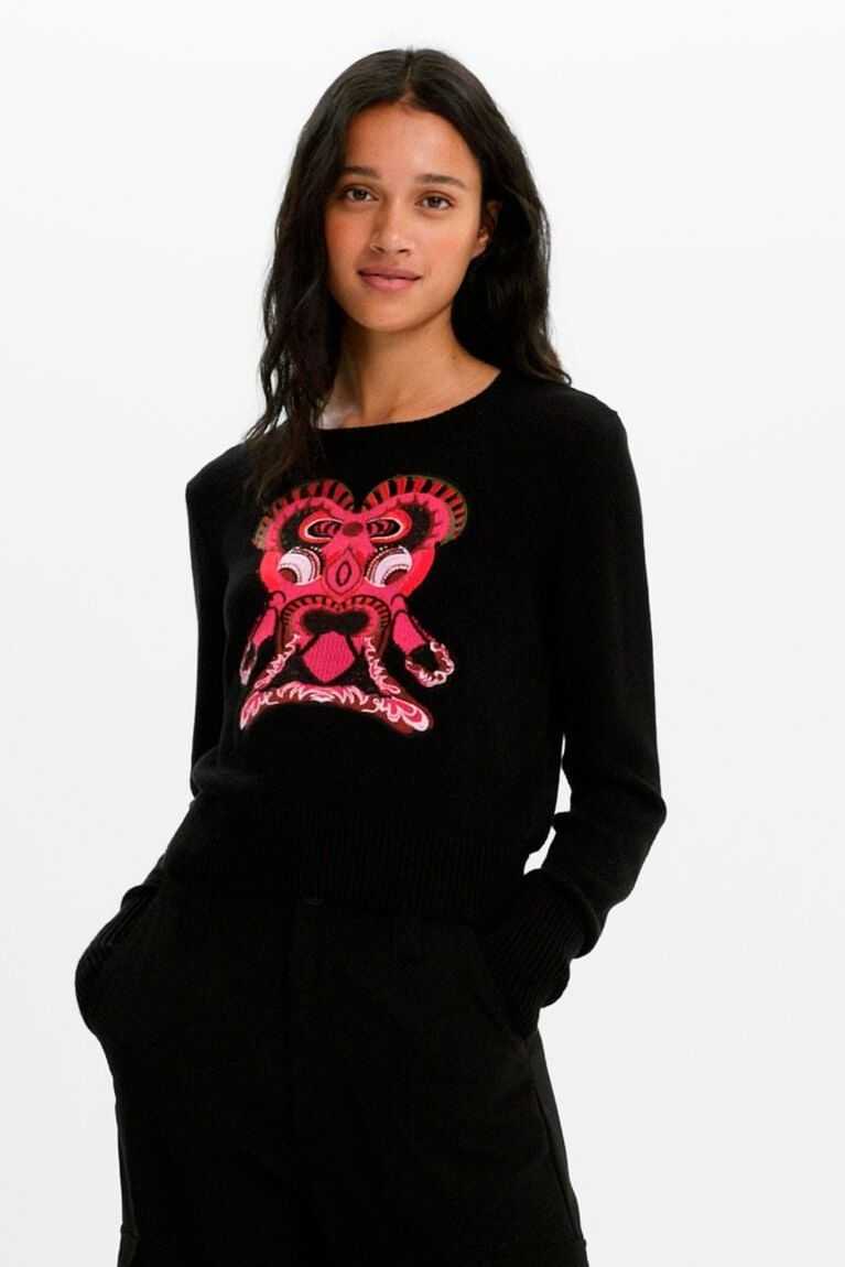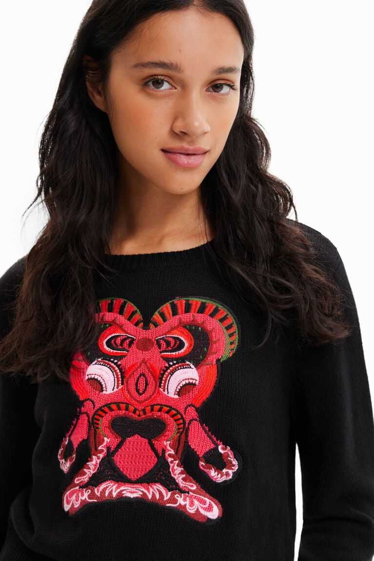 This jumper made in a medium cotton knit features fun embroidery on the front of a Lacronianx monster designed by M. Christian Lacroix.