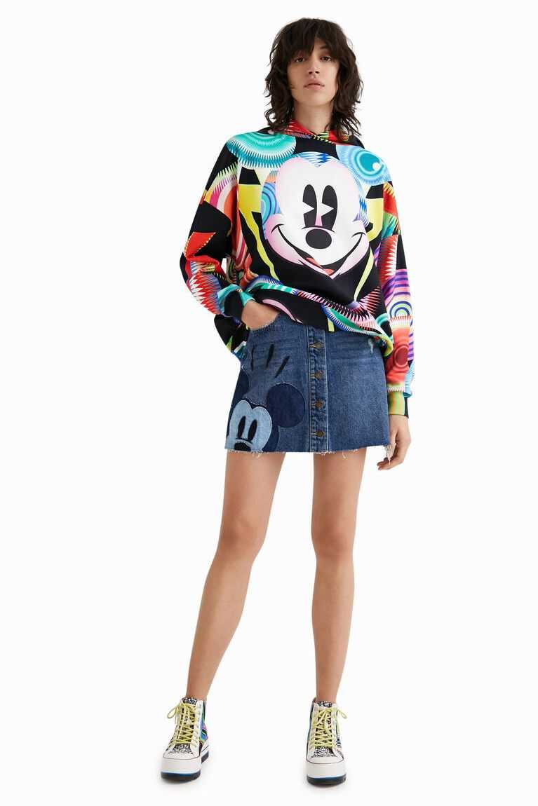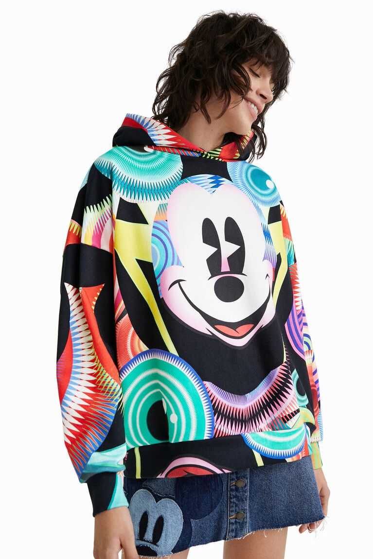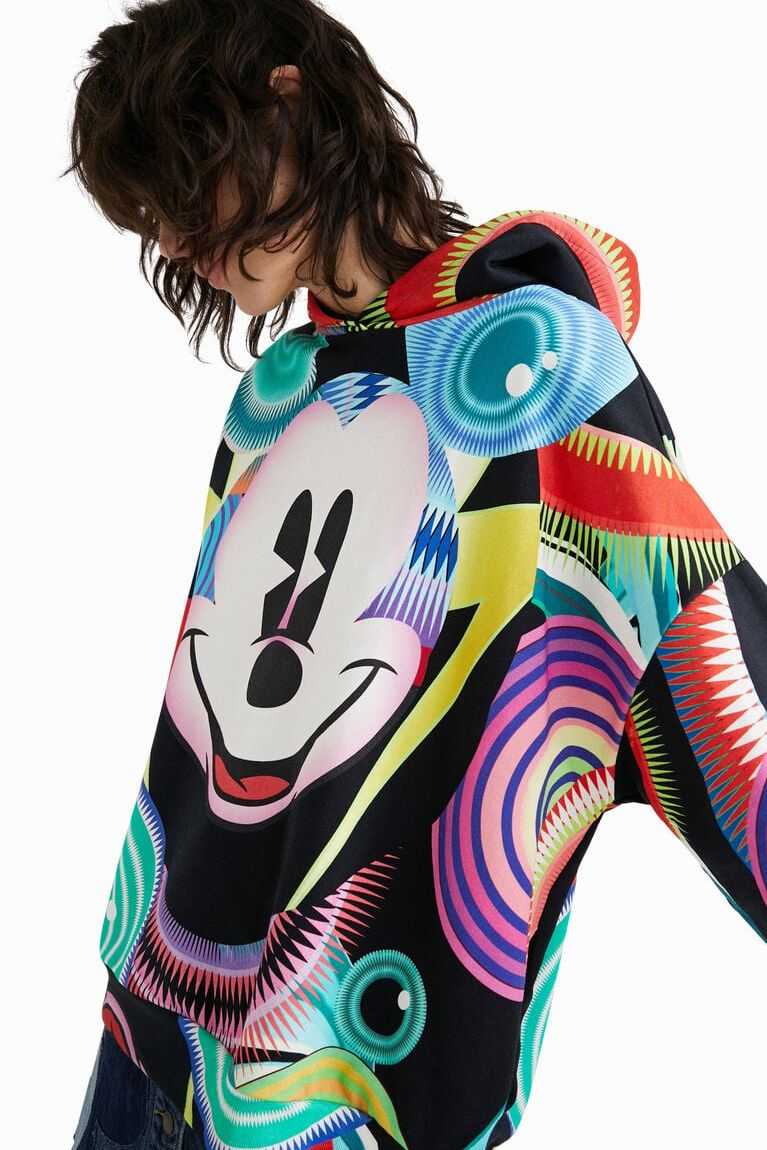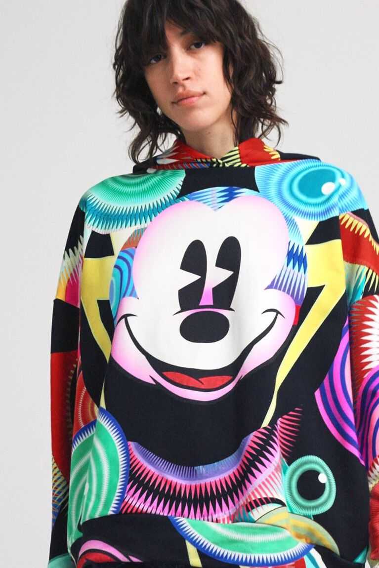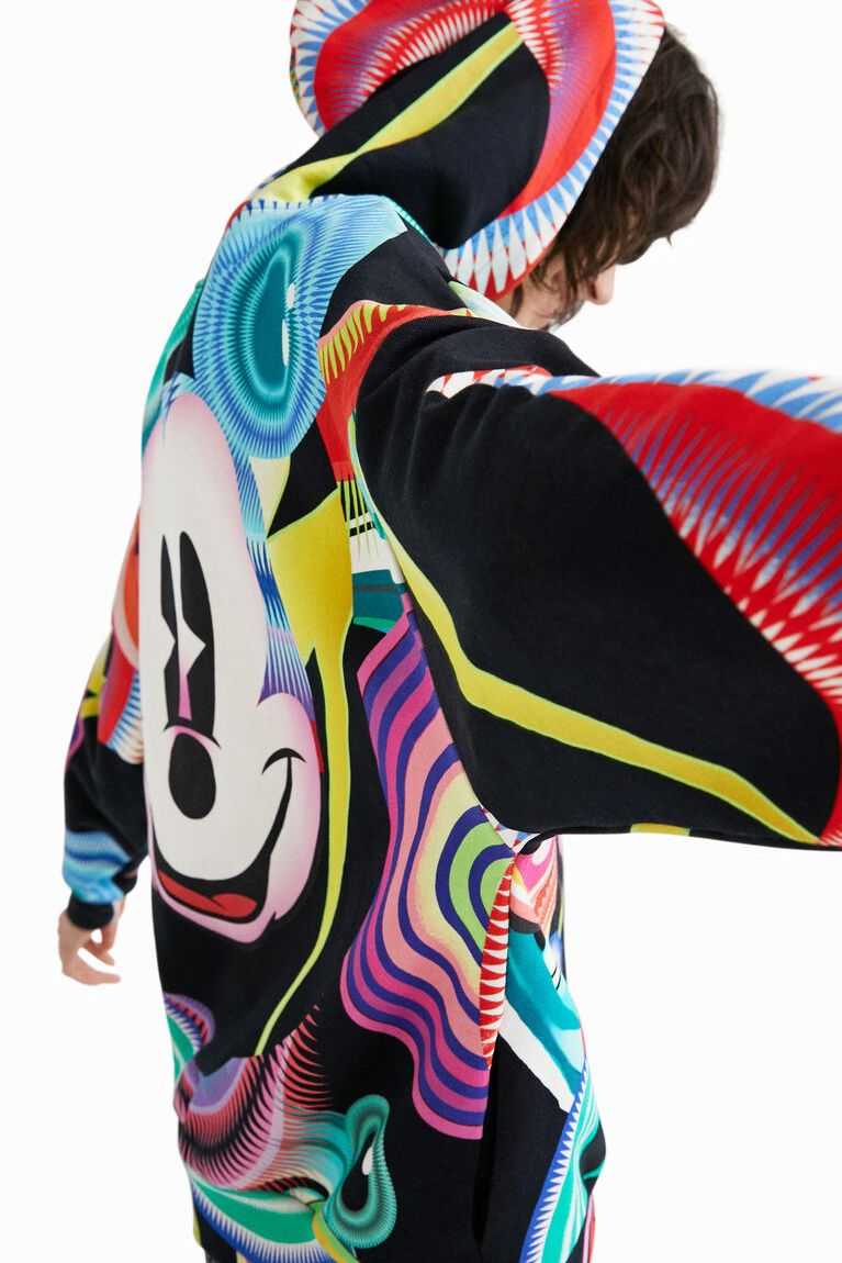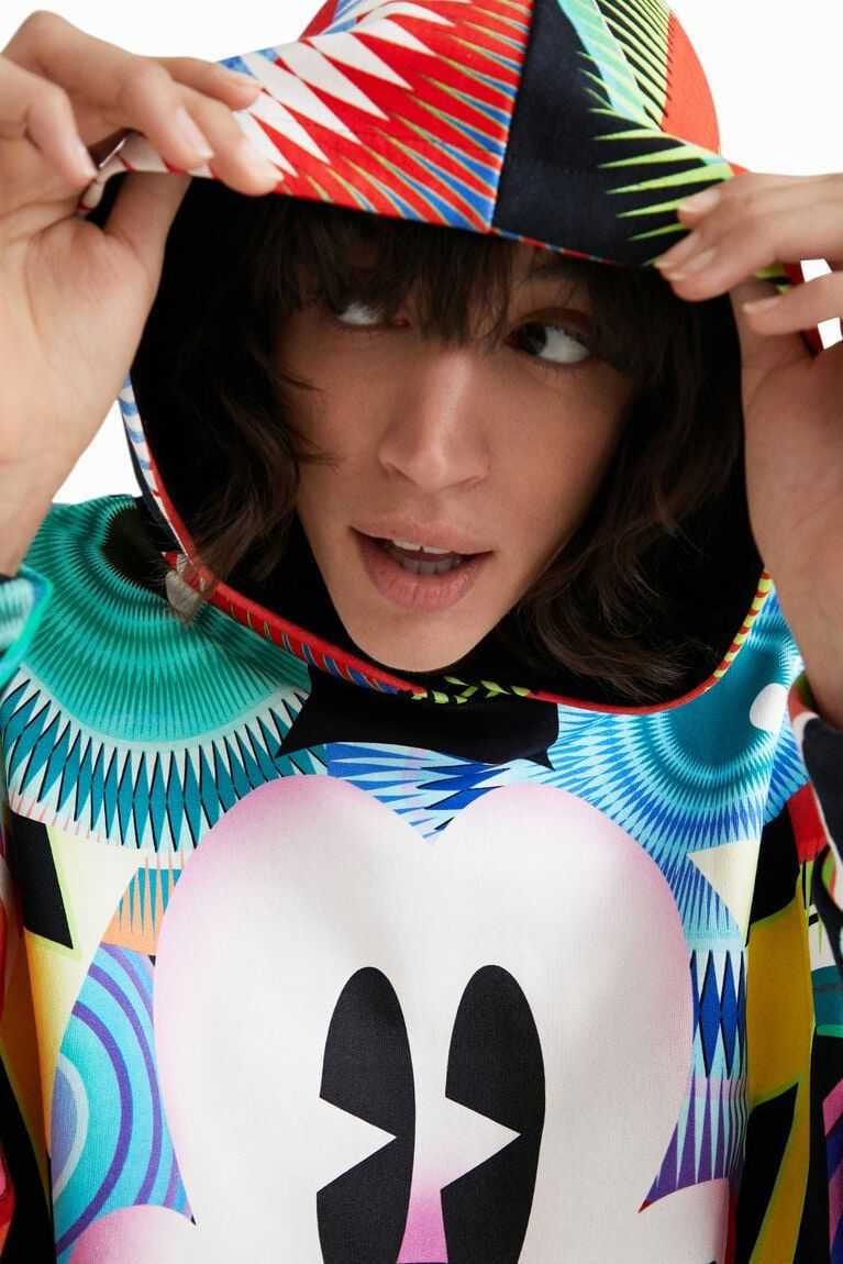 Disney's Mickey Mouse is the inspiration for this print, designed for Desigual by Monsieur Christian Lacroix. This garment has an oversized cut with a hood and is made from sustainable cotton.