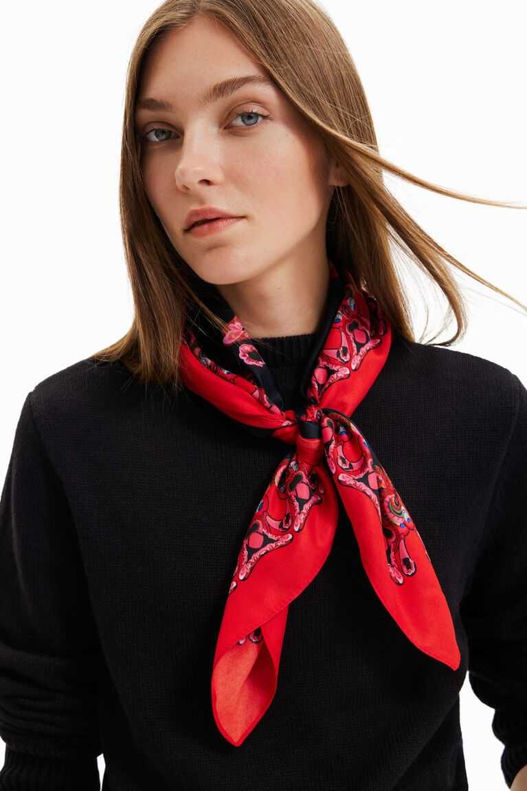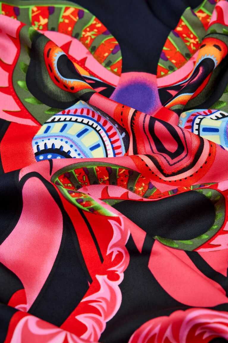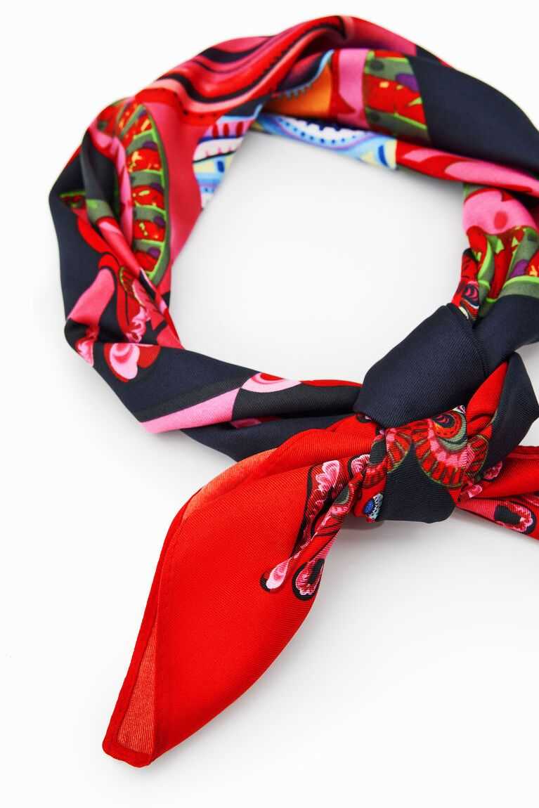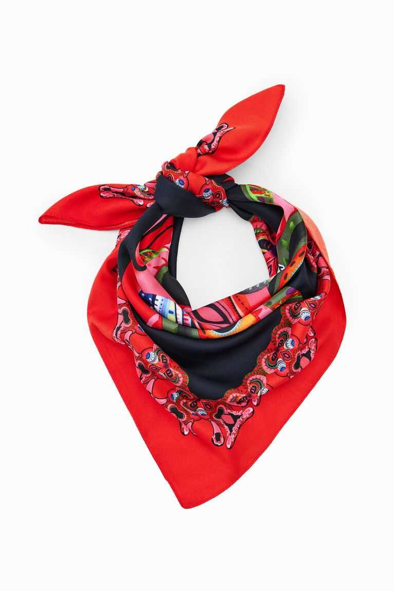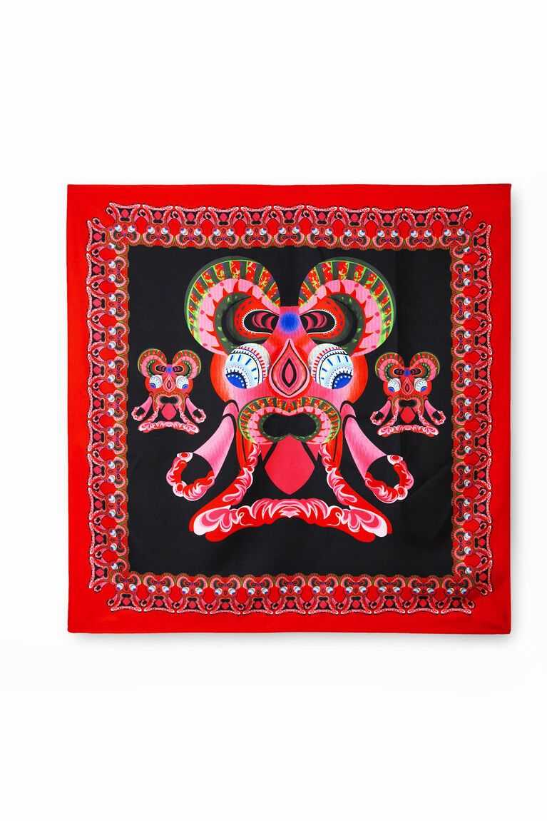 Square foulard with a print and monster design created for Desigual by M. Christian Lacroix. Made from recycled fibres.