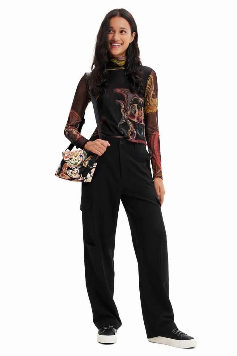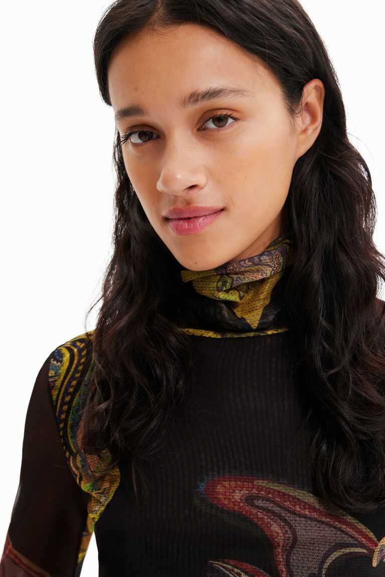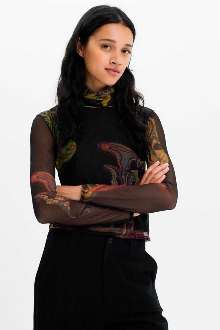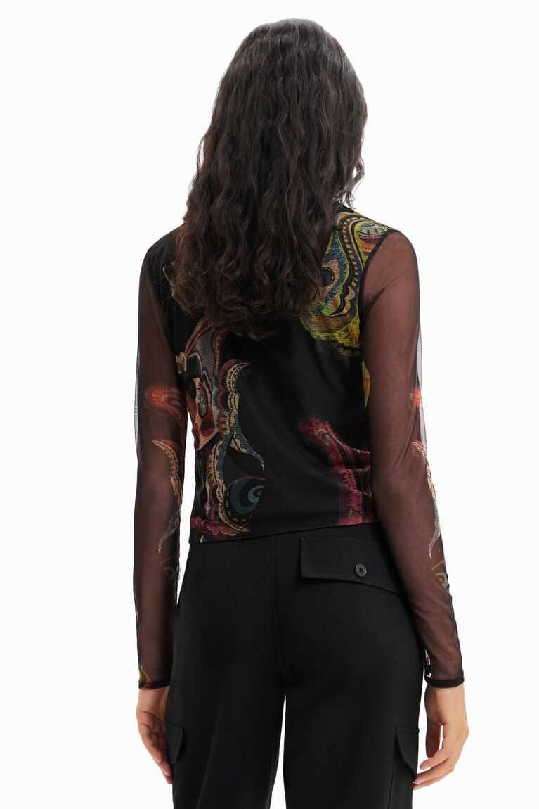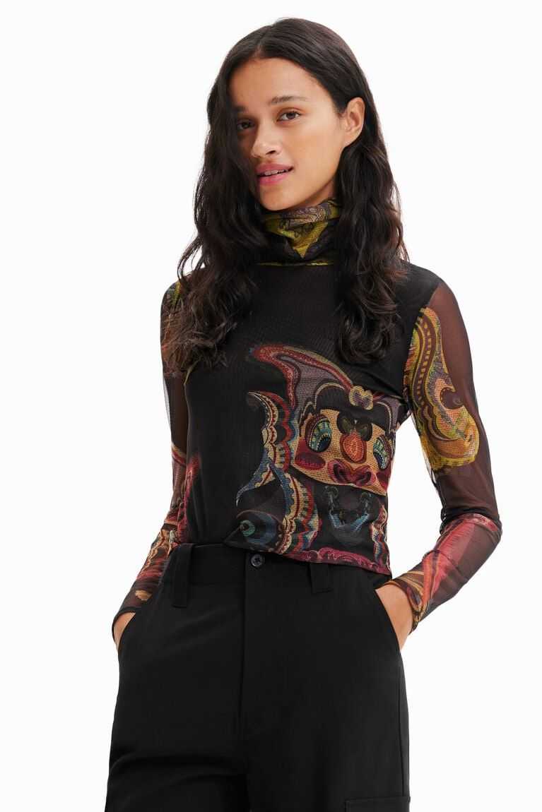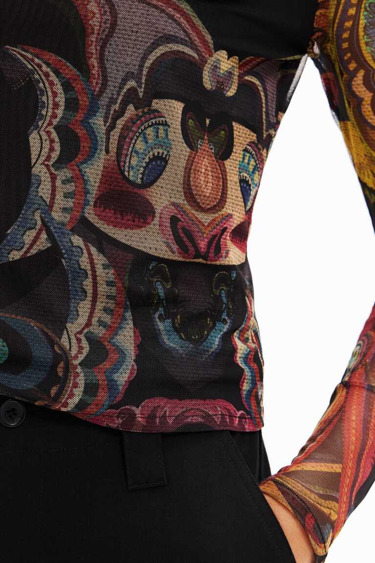 A tapestry-inspired all-over print with a Lacronianx Monster design by M. Christian Lacroix adorns this long-sleeve top in sheer tulle. Made with recycled fibres.