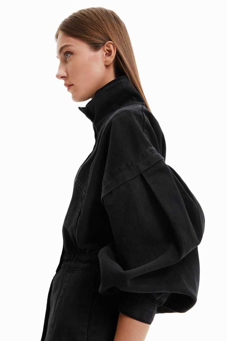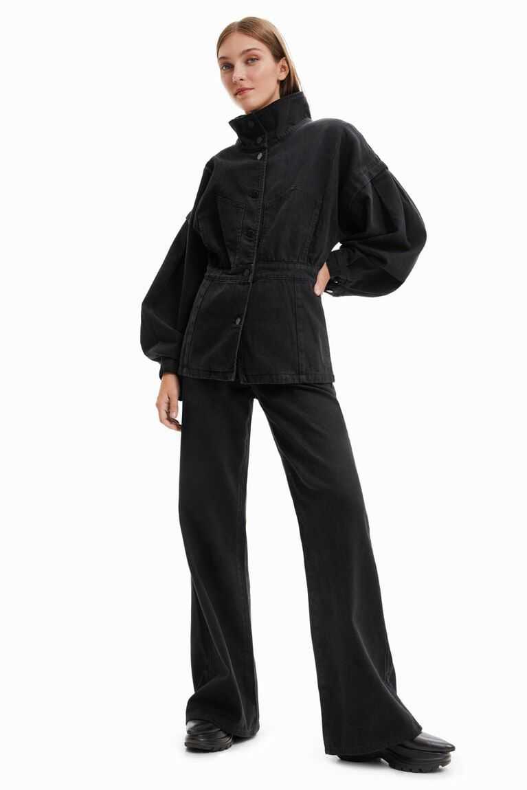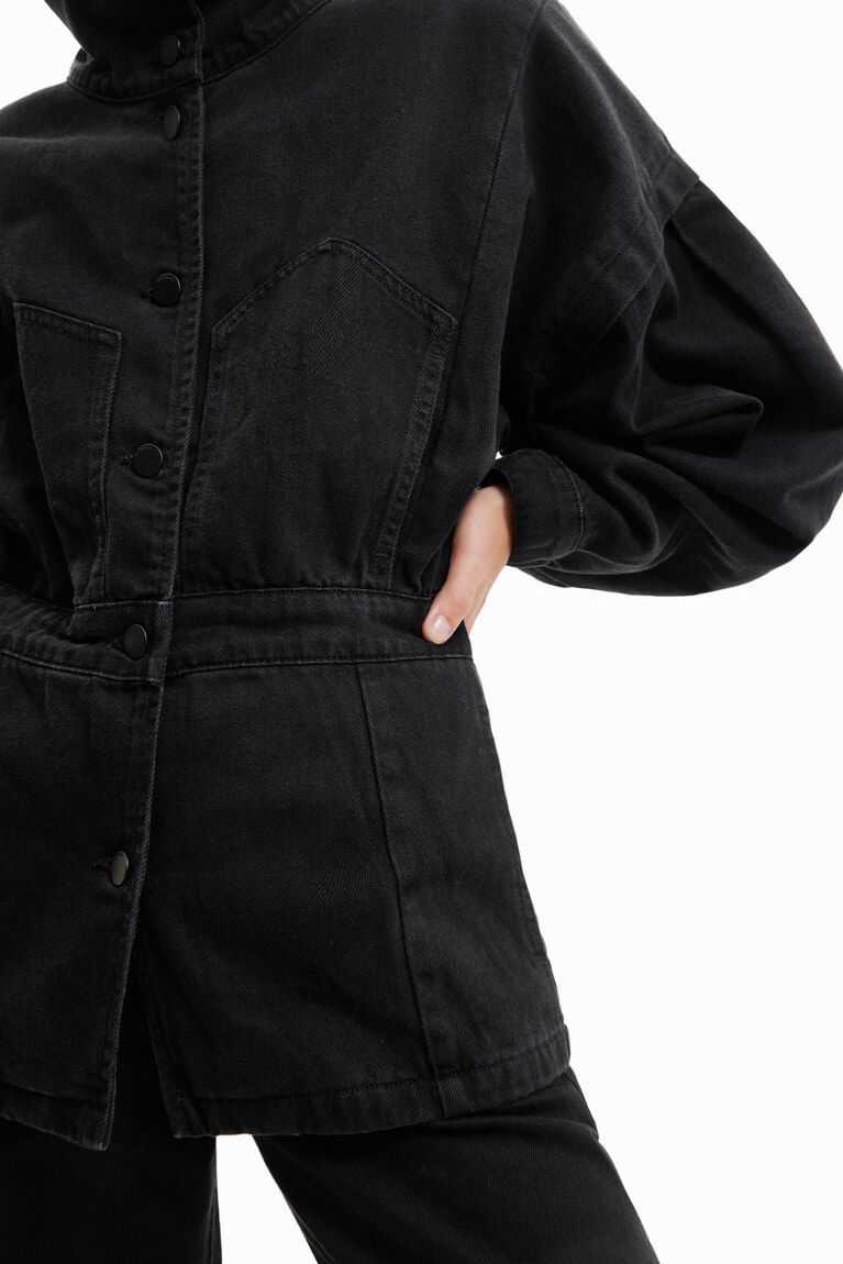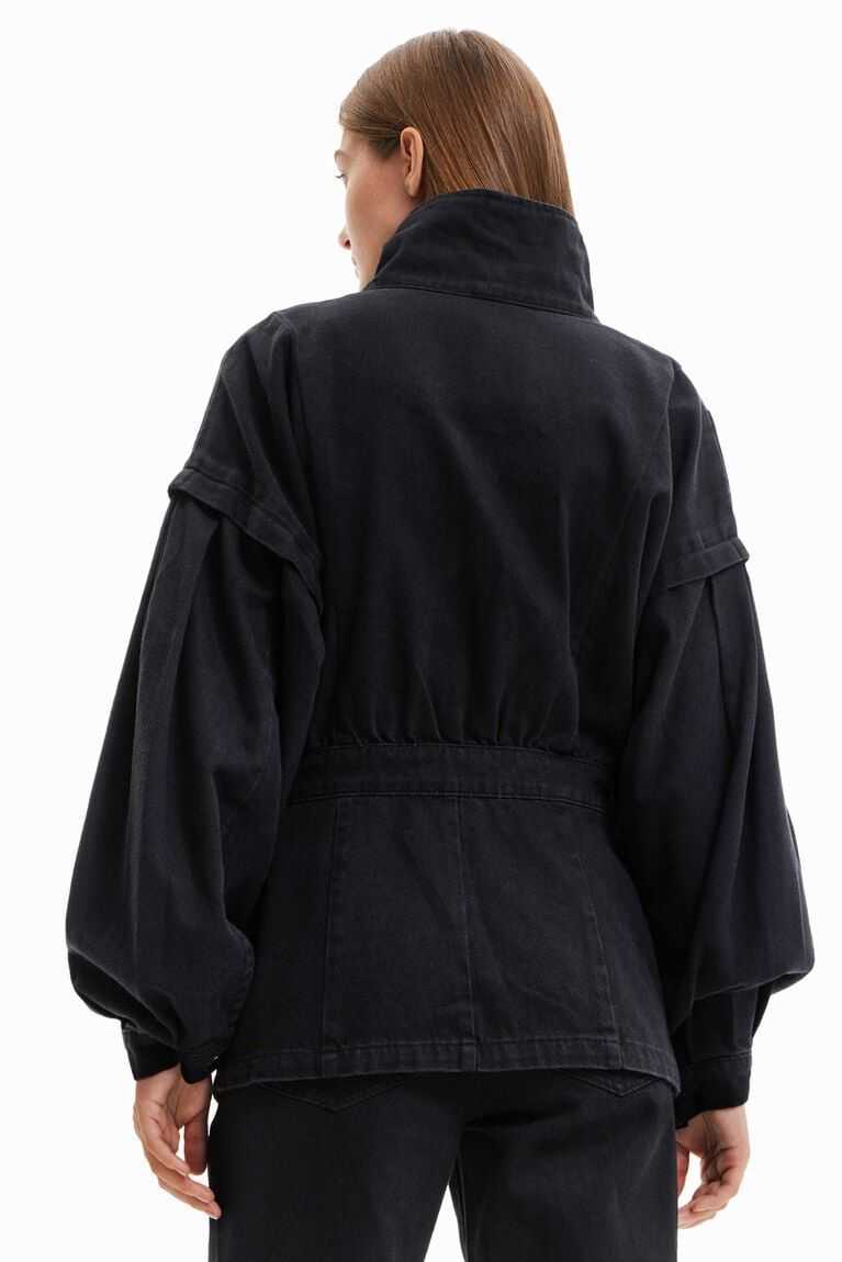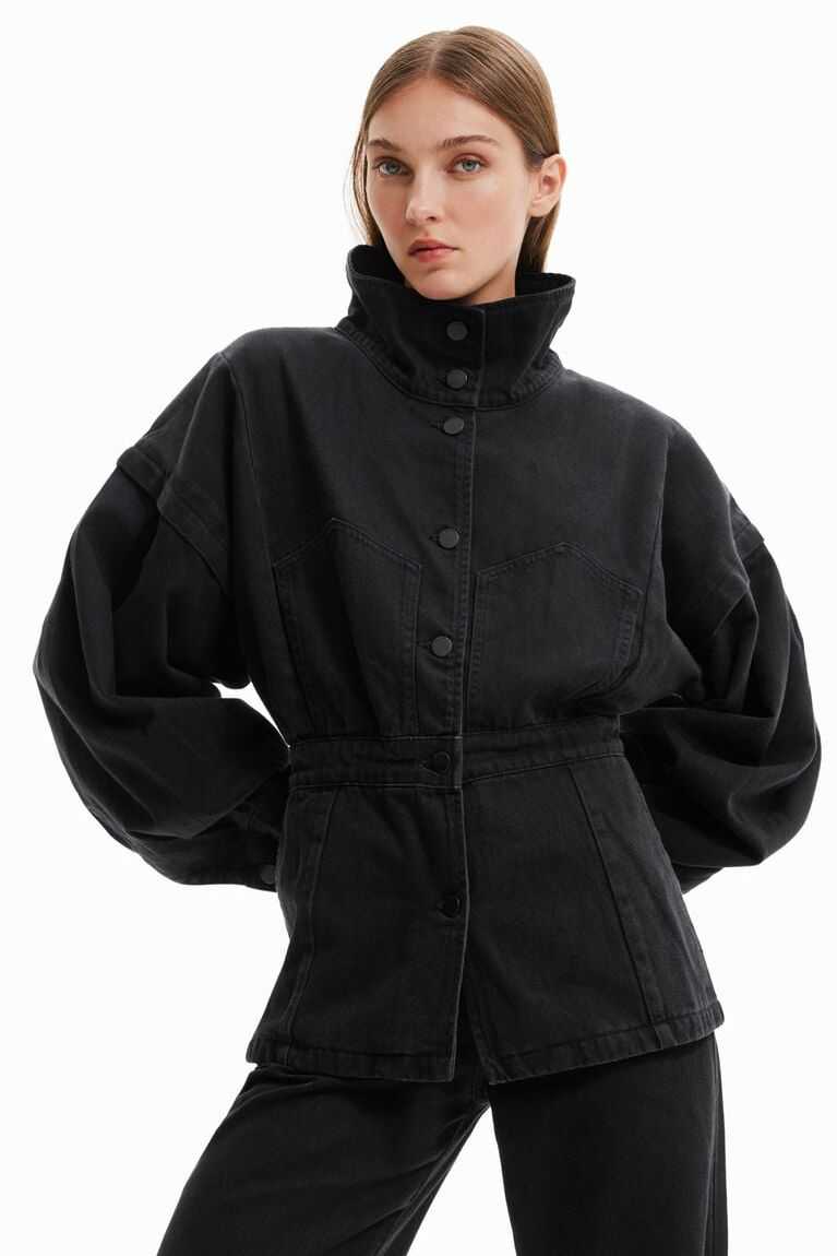 A denim jacket with drop shoulders, wide sleeves and a fitted waist in acid-washed 100% cotton fabric. Designed by Maitrepierre.