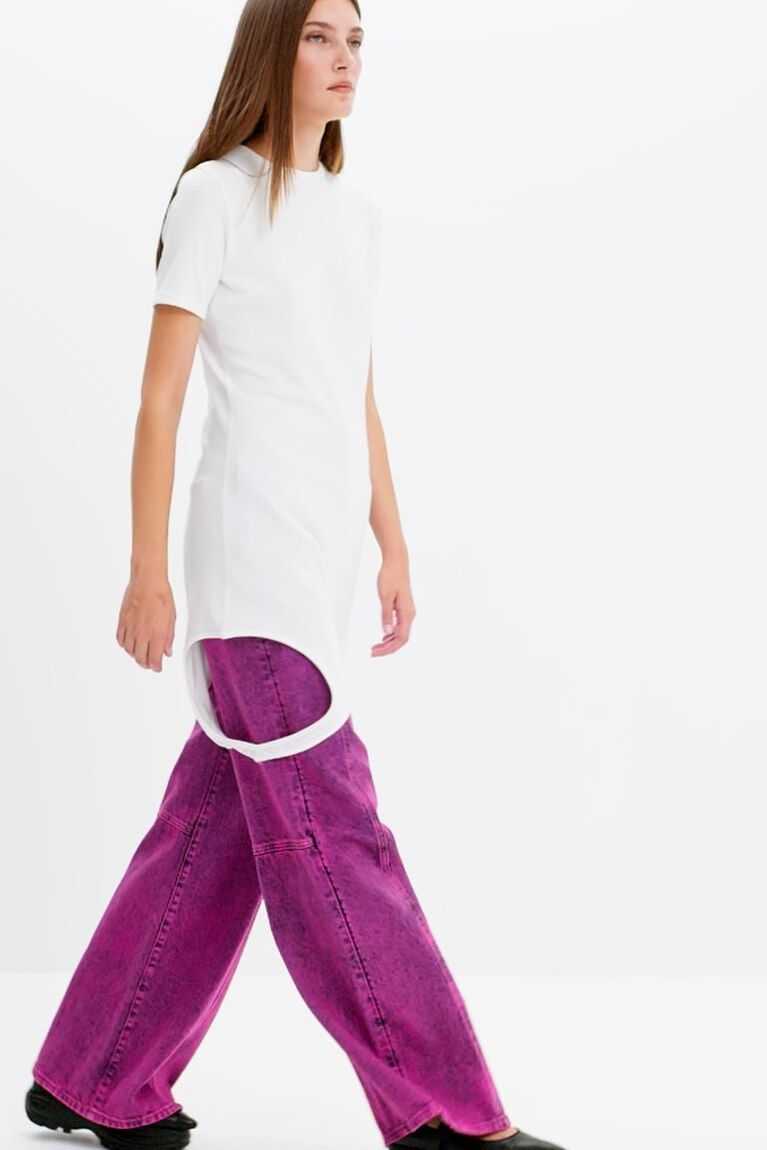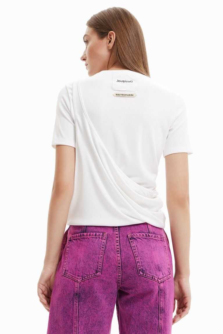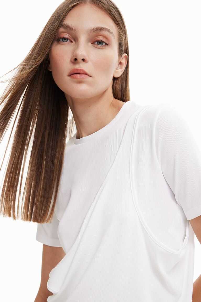 A short-sleeve ribbed T-shirt that can be left long and worn as a dress, or as a second layer when folded upwards. Designed by Maitrepierre.